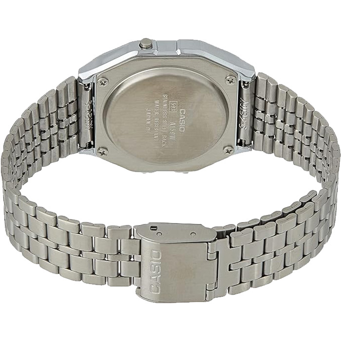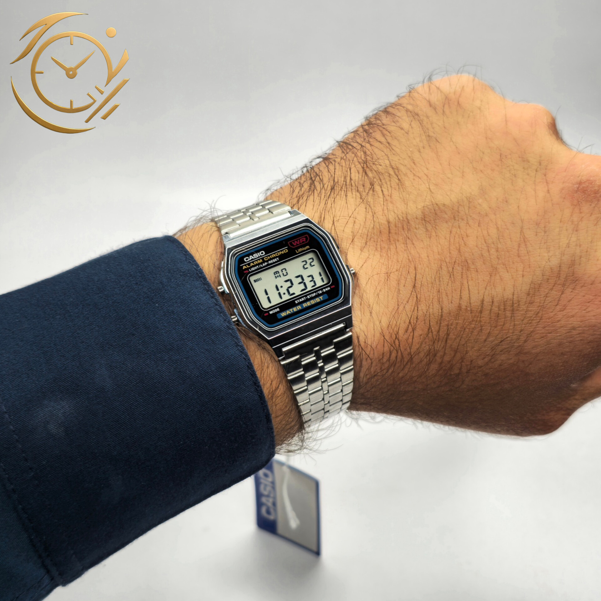 ساعت مچی دیجیتال Casio A159WA-N1DF یکی از مجموعههای معروف کلاسیک کاسیو است که به نماد سبک مینیمال و ساده تبدیل شده. قاب مستطیلی این ساعت با طراحی رترو، حس خاص ساعتهای قدیمی را منتقل میکند و برای کسانی که دنبال یک ساعت سبک و کاربردی هستند، انتخابی ایدهآل است.این مدل با بند استیل نقرهای ضدزنگ ساخته شده که در برابر استفاده روزمره و رطوبت مقاومت خوبی دارد. در کنار آن، وزن بسیار کم ساعت باعث شده هنگام استفاده طولانیمدت هیچ احساس سنگینی روی دست ایجاد نشود.در بخش عملکرد، این ساعت تمام امکانات پایه دیجیتال را در اختیار شما قرار میدهد: از آلارم روزانه گرفته تا کرونومتر دقیق و نمایش تاریخ و روز. نور پسزمینه نیز دید ساعت را در محیطهای تاریک تضمین میکند.اگر ساعتهایی با استایل کلاسیک و قدیمی را دوست دارید یا به دنبال یک مدل خوشقیمت، بادوام و سبک برای استفاده روزانه هستید، A159WA-N1DF کاملاً مناسب سلیقه شماست. این مدل از آن ساعتهایی است که هیچوقت از مد نمیافتد و همیشه جذاب باقی میماند.
