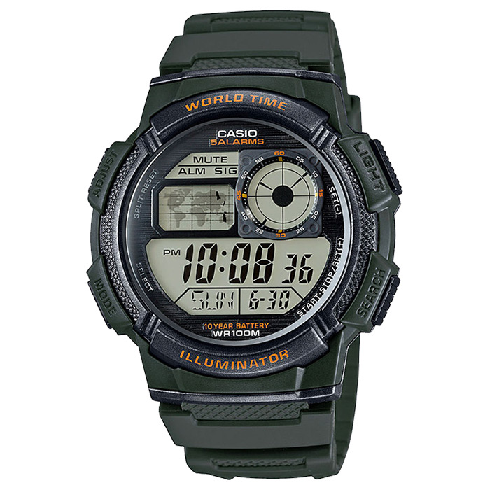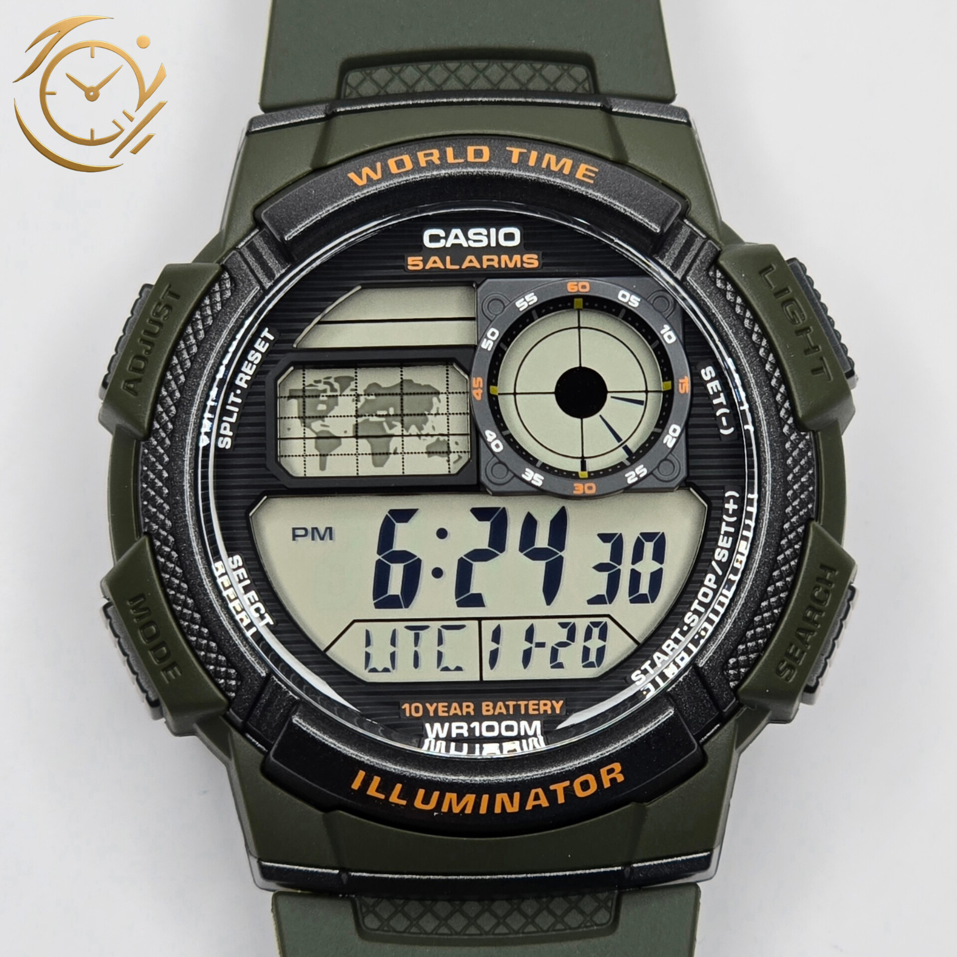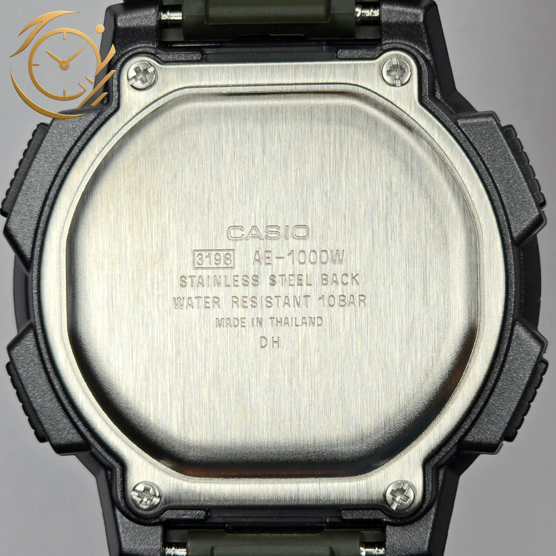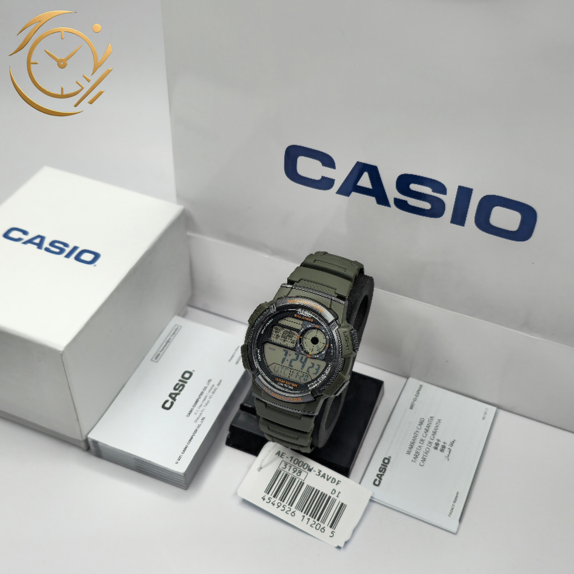 ساعت مردانه Casio AE-1000W-3A با بند رزینی سبز و صفحه دیجیتال واضح، ترکیبی از استحکام و کارایی است. این مدل برای ورزشکاران و افراد فعال که به دنبال ساعتی مقاوم و سبک هستند، بسیار مناسب است.قابلیتهایی مانند چند زمانه (Dual Time)، کرنومتر، تایمر، آلارم و نور پسزمینه، استفادهی روزمره و ورزشی را ساده و کاربردی میکند. بدنه مقاوم و ضدآب بودن ساعت خیال شما را در شرایط مختلف راحت نگه میدارد.اگر به دنبال یک ساعت دیجیتال مردانه اسپرت، مقاوم و با رنگی متفاوت هستید، AE-1000W-3A انتخابی مطمئن و جذاب است.