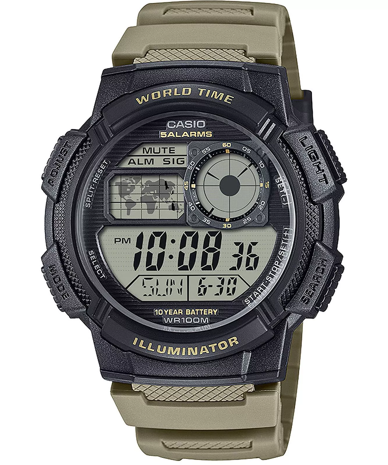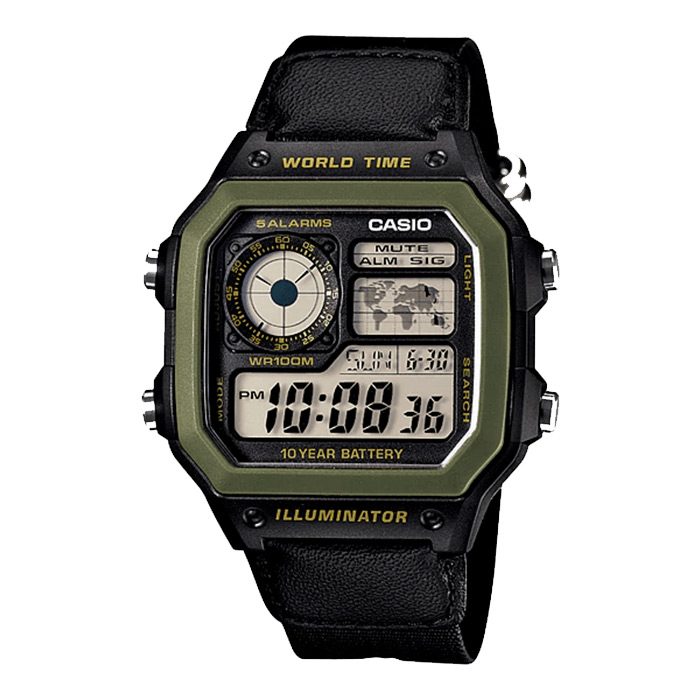 ساعت مردانه کاسیو AE-1200WHB-1B یک مدل دیجیتال مقاوم و چندکاره است که با بند برزنت مشکی و طراحی اسپرت، مناسب استفاده روزمره و فعالیتهای ورزشی و بیرون از منزل است. صفحه دیجیتال بزرگ و خوانا کار با ساعت را ساده و سریع میکند.این مدل دارای ویژگیهای کاربردی مانند چند زمانه (Dual Time)، کرنومتر و تایمر، آلارم و تقویم اتوماتیک و نور پسزمینه است. مقاومت بالای ساعت در برابر ضربه و ضدآب بودن آن، استفادهای بدون نگرانی در شرایط مختلف را فراهم میکند.اگر به دنبال یک ساعت دیجیتال مردانه با دوام، سبک اسپرت و امکانات کامل هستی، AE-1200WHB-1B انتخابی مطمئن و محبوب است.