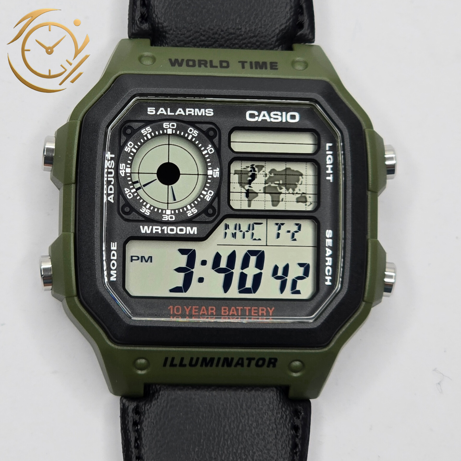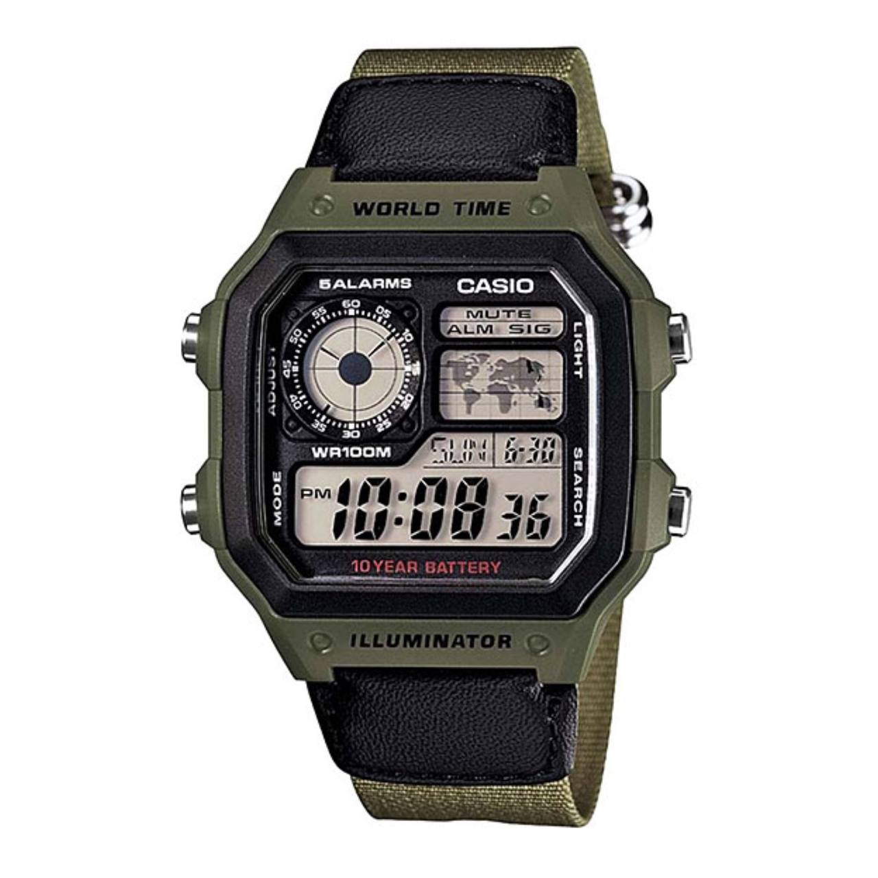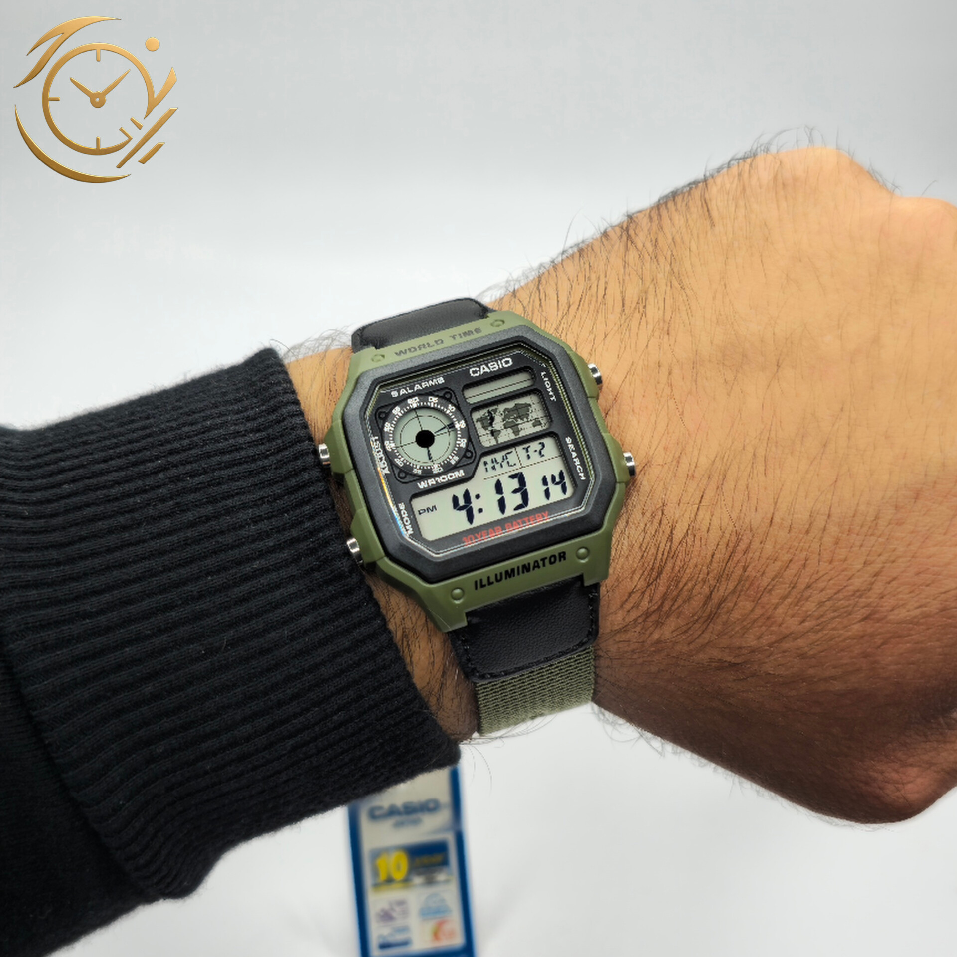 ساعت مردانه Casio AE-1200WHB-3B ترکیبی از دوام و کارایی است. با بند برزنت سبز و صفحه دیجیتال واضح، این مدل برای کسانی که سبک زندگی فعال و پرتحرک دارند ایدهآل است.از ویژگیهای این ساعت میتوان به چند زمانه (Dual Time)، آلارم، کرنومتر و تایمر و نور پسزمینه اشاره کرد که آن را به گزینهای کاربردی برای سفر و فعالیتهای روزمره تبدیل میکند. بدنه مقاوم و ضدآب بودن ساعت، خیالتان را در استفادههای روزمره راحت میکند.این مدل مناسب افرادی است که به دنبال یک ساعت دیجیتال کارآمد، اسپرت و جذاب با دوام بالا هستند.