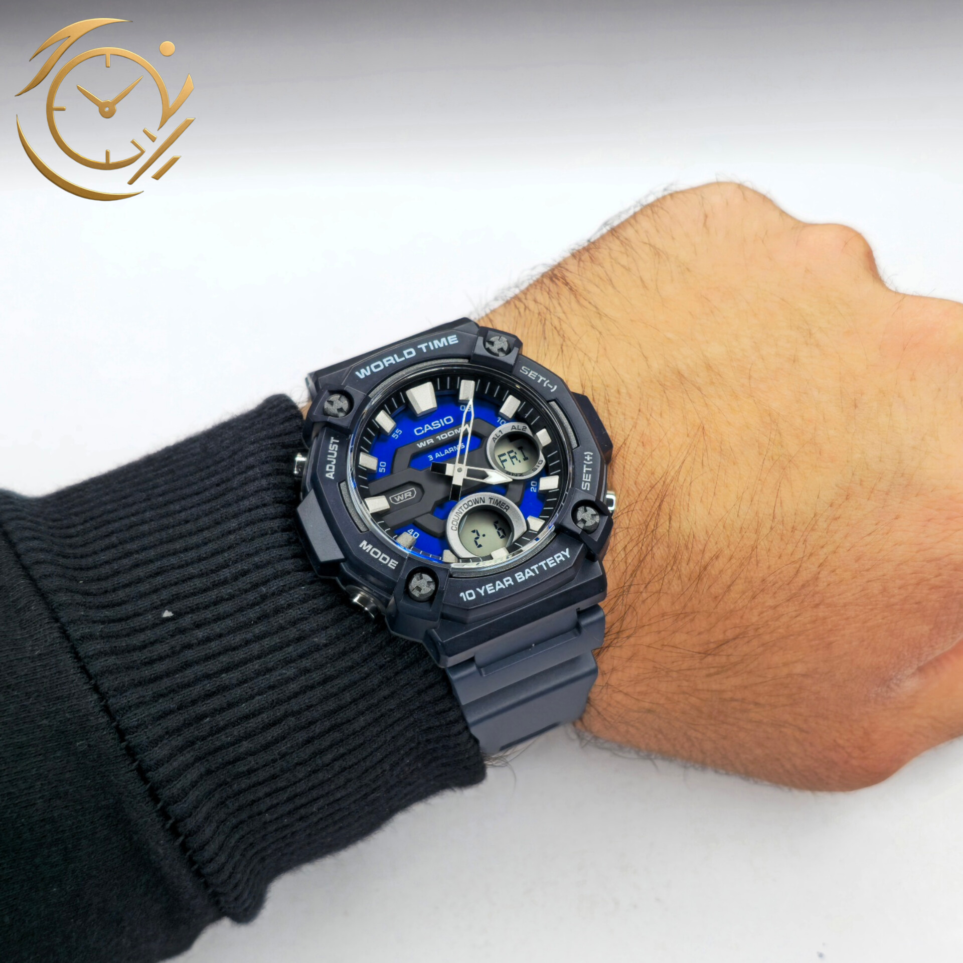 اگر به دنبال یک ساعت مردانه کاربردی، مقاوم و اسپرت هستید، Casio AEQ-120W-2AVDF انتخابی ایدهآل است. ترکیب صفحه سرمهای با بند رزینی مشکی ظاهر اسپرت و جذابی ایجاد کرده که برای استفاده روزمره، ورزش یا فعالیتهای خارج از منزل بسیار مناسب است.این مدل با نمایش آنالوگ و دیجیتال همزمان، علاوه بر نشان دادن ساعت اصلی، اطلاعات دیگری مثل تاریخ و تایمر را هم در اختیار شما قرار میدهد و عملکردی چندمنظوره ارائه میکند. طراحی مقاوم و بدنه سبک آن باعث میشود در استفاده طولانیمدت راحت و مطمئن باشد.AEQ-120W-2AVDF کاملاً اورجینال Casio است و با جعبه اصلی برند عرضه میشود. کیفیت بالای متریال، مقاومت بند و دقت موتور تضمین میکند که ساعتی اصل، بادوام و ماندگار دریافت خواهید کرد.اگر دنبال ساعتی اسپرت، مقاوم و شیک هستید که هم برای استفاده روزمره باشد و هم در فعالیتهای بیرونی و ورزش همراه شما باشد، این مدل انتخابی مطمئن و کاربردی است.