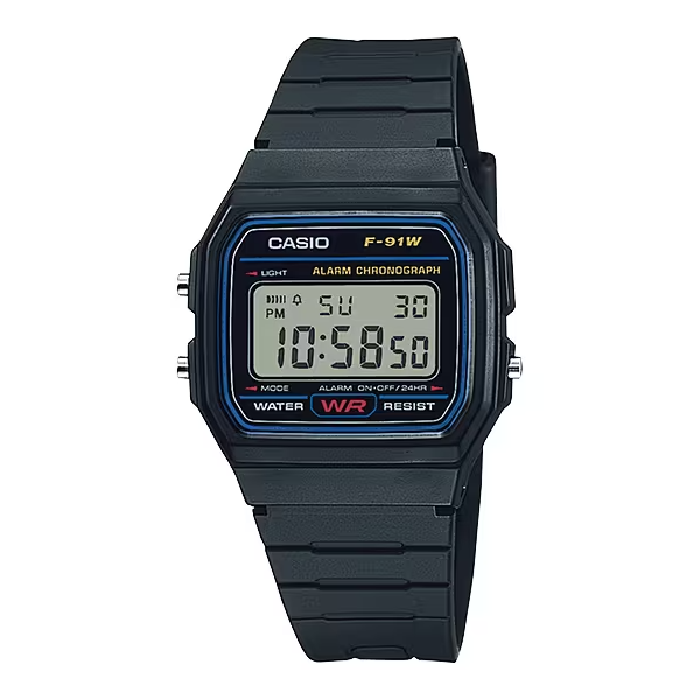 ساعت مچی مردانه Casio مدل F-91W-1D یکی از نمادینترین ساعتهای دیجیتال جهان است؛ مدلی که با طراحی ساده، عملکرد دقیق و دوام بالا، سالهاست جایگاه خود را در میان ساعتهای روزمره حفظ کرده است. این ساعت با بند رزینی مشکی و قاب مستطیلی کلاسیک، ظاهری مینیمال و آشنا دارد که با هر استایلی، از اسپرت گرفته تا کژوال، بهخوبی هماهنگ میشود.وزن فوقالعاده سبک و طراحی ارگونومیک باعث میشود هنگام استفاده طولانیمدت حتی متوجه حضور آن روی مچ خود نشوید. صفحه دیجیتال خوانا با نور پسزمینه، زمان را بهوضوح نمایش میدهد و دکمههای کاربردی کناری دسترسی آسان به امکانات ساعت را فراهم میکنند.Casio F-91W-1D ترکیبی از سادگی، اصالت و عملکرد است؛ ساعتی که دهههاست بدون تغییر اساسی در طراحی، همچنان یکی از محبوبترین مدلهای کاسیو محسوب میشود. دوام بالا، مصرف باتری بسیار کم و ظاهر همیشه شیک، این مدل را به انتخابی عالی برای استفاده روزمره تبدیل کرده است.اگر به دنبال ساعتی سبک، مقاوم و کلاسیک هستید که هیچگاه از مد نمیافتد، F-91W-1D دقیقاً همان چیزی است که نیاز دارید.