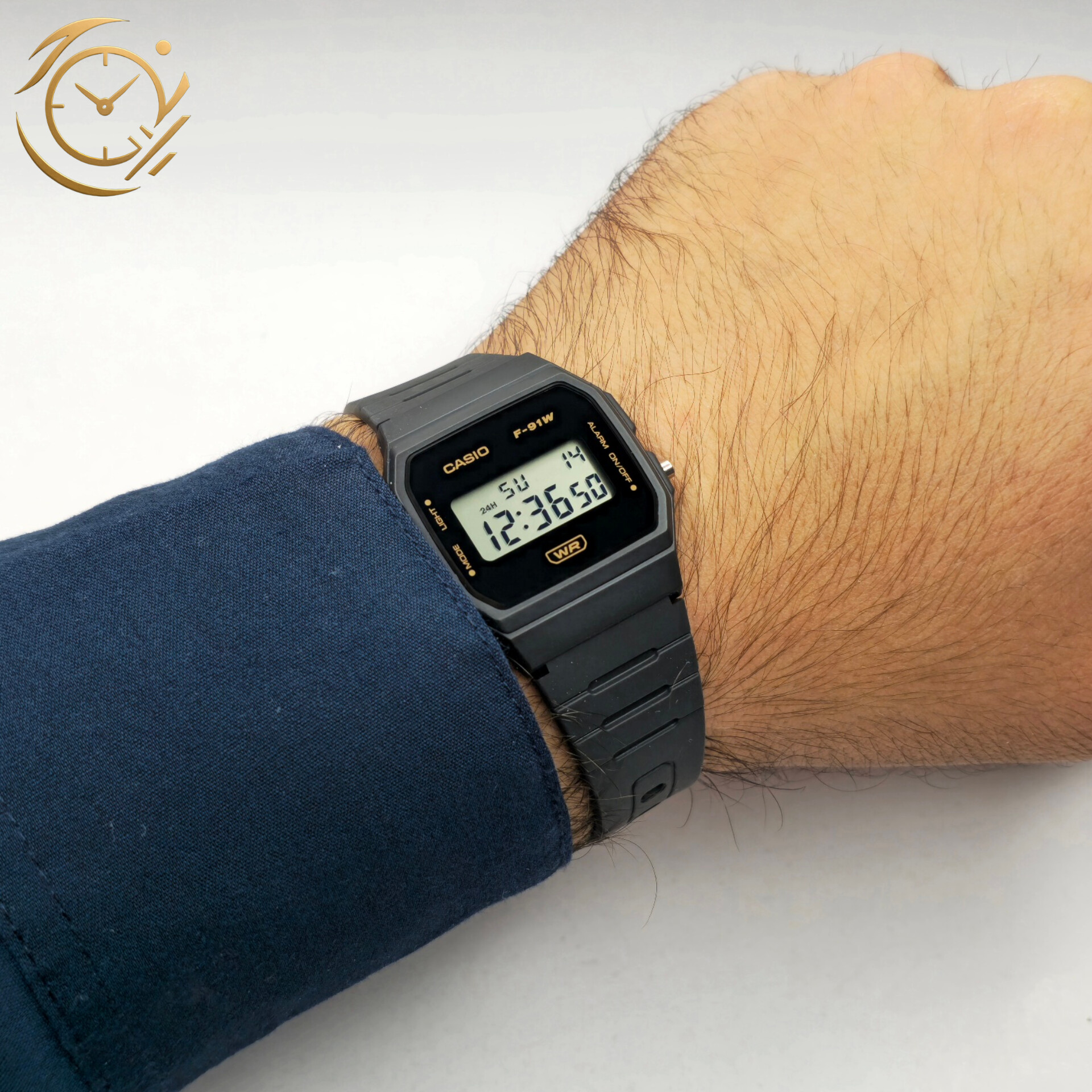 ساعت مچی Casio F‑91WB‑8ADF تجسمی از سادگی کارآمد، مقاومت بالا و طراحی اسپرت است. بند رزینی مشکی همراه با صفحه دیجیتال مشکی ظاهر یکدست، حرفهای و جوانپسندی ایجاد کرده که بهراحتی با استایلهای روزمره، ورزشی و کژوال ست میشود. این مدل کلاسیک دیجیتال با وزن سبک و طراحی مقاوم، گزینهای مطمئن برای استفادهی روزمره، باشگاه، پیادهروی و فعالیتهای بیرونی است. نمایشگر دیجیتال واضح، زمان، تاریخ، کرنومتر و زنگ هشدار را با عملکردی ساده و قابلاعتماد در اختیار شما قرار میدهد. Casio F‑91WB‑8ADF ساعتی کاربردی و خوشاستایل است که با طراحی مینیمال و کارایی عملی خود، انتخابی هوشمندانه برای افراد فعال و پویا محسوب میشود.