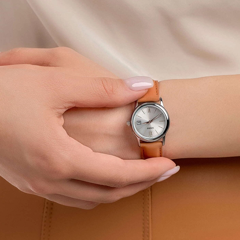 اگر به دنبال یک ساعت زنانه با ظرافت کلاسیک و حس طبیعی هستید، Casio LTP-V002L-7B3UDF انتخابی ایدهآل است. بند چرم قهوهای در کنار صفحه سفید کلاسیک ترکیبی گرم و باوقار ایجاد میکند که به راحتی با استایل روزمره و رسمی شما هماهنگ میشود.طراحی مینیمال و خوانای این ساعت باعث میشود همواره حس سادگی شیک و ظرافت بیزمان را تجربه کنید و هیچوقت از مد نیفتد.این مدل کاملاً اورجینال Casio است و با جعبه اصلی عرضه میشود؛ بنابراین با خیال راحت یک ساعت زنانه اصل، با دوام و ماندگار خواهید داشت.اگر دنبال یک ساعت کلاسیک زنانه هستید که هم کاربردی باشد و هم جلوهای خاص به استایل شما بدهد، این مدل گزینهای مطمئن و جذاب است.