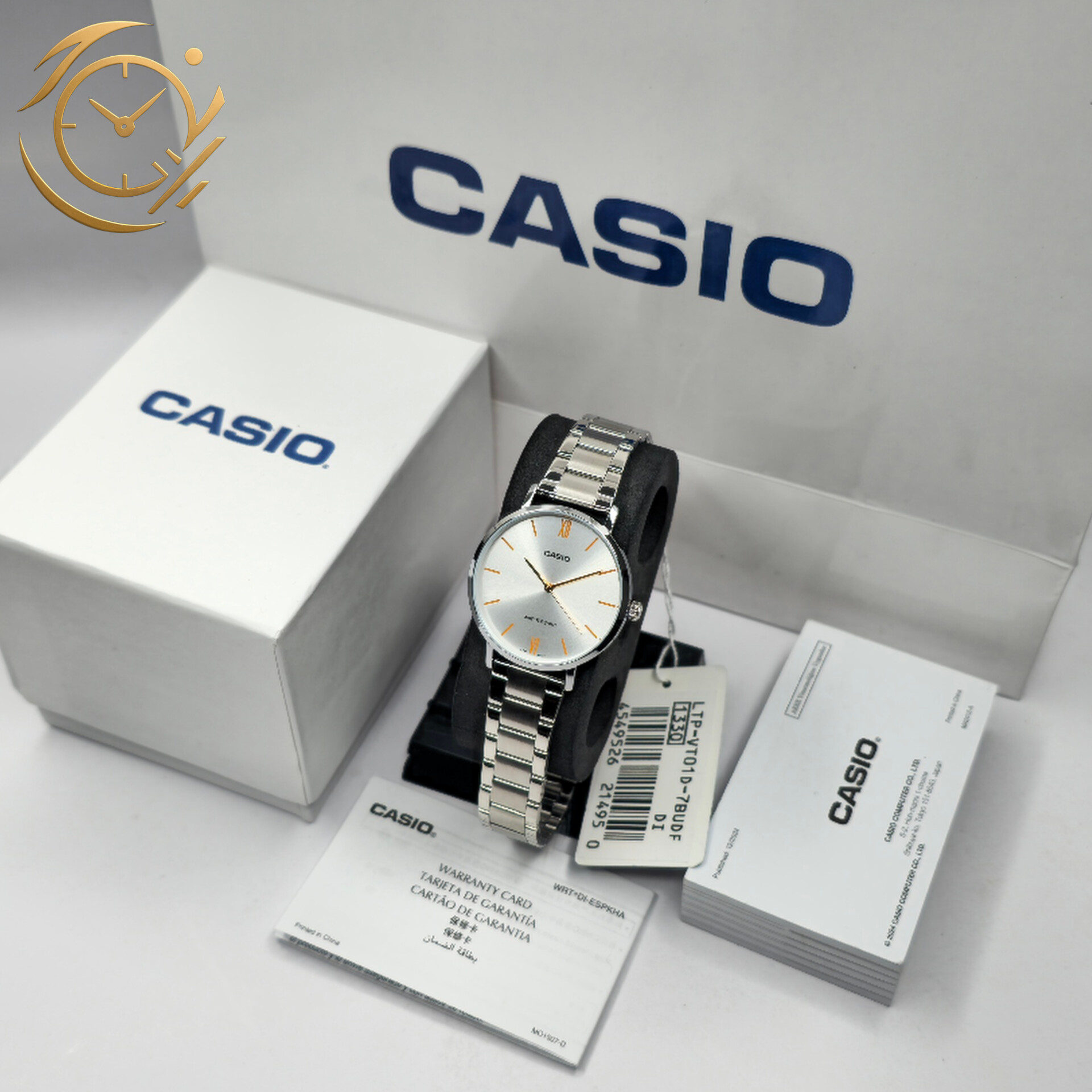 ساعت مچی زنانه Casio LTP-VT01D-7B با صفحه سفید کلاسیک و بند استیل نقرهای، ترکیبی از طراحی شیک، ظرافت و کیفیت بالای ساخت را ارائه میدهد. طراحی مینیمال و تمیز صفحه با شاخصهای واضح، خوانایی بالا و مشاهده آسان زمان را تضمین کرده و این مدل را برای استفاده روزمره، محیط کار و استایلهای رسمی و نیمهرسمی ایدهآل میکند.این ساعت مجهز به موتور کوارتز دقیق و کممصرف است که عملکرد پایدار و زمانسنجی قابل اعتماد را فراهم میکند. شیشه معدنی مقاوم، صفحه را در برابر خطوخشهای معمول محافظت میکند و قاب و بند استیل باکیفیت، دوام و استحکام طولانیمدت را برای استفاده روزانه تضمین میکند. مقاومت در برابر پاشش آب، امکان استفاده راحت و بدون نگرانی در فعالیتهای روزمره را نیز فراهم میسازد.اگر به دنبال یک ساعت زنانه خوشساخت، کلاسیک، شیک و با قیمت مناسب هستید، LTP-VT01D-7B یکی از بهترین انتخابهای کاسیو برای استایل روزمره، نیمهرسمی و رسمی محسوب میشود.