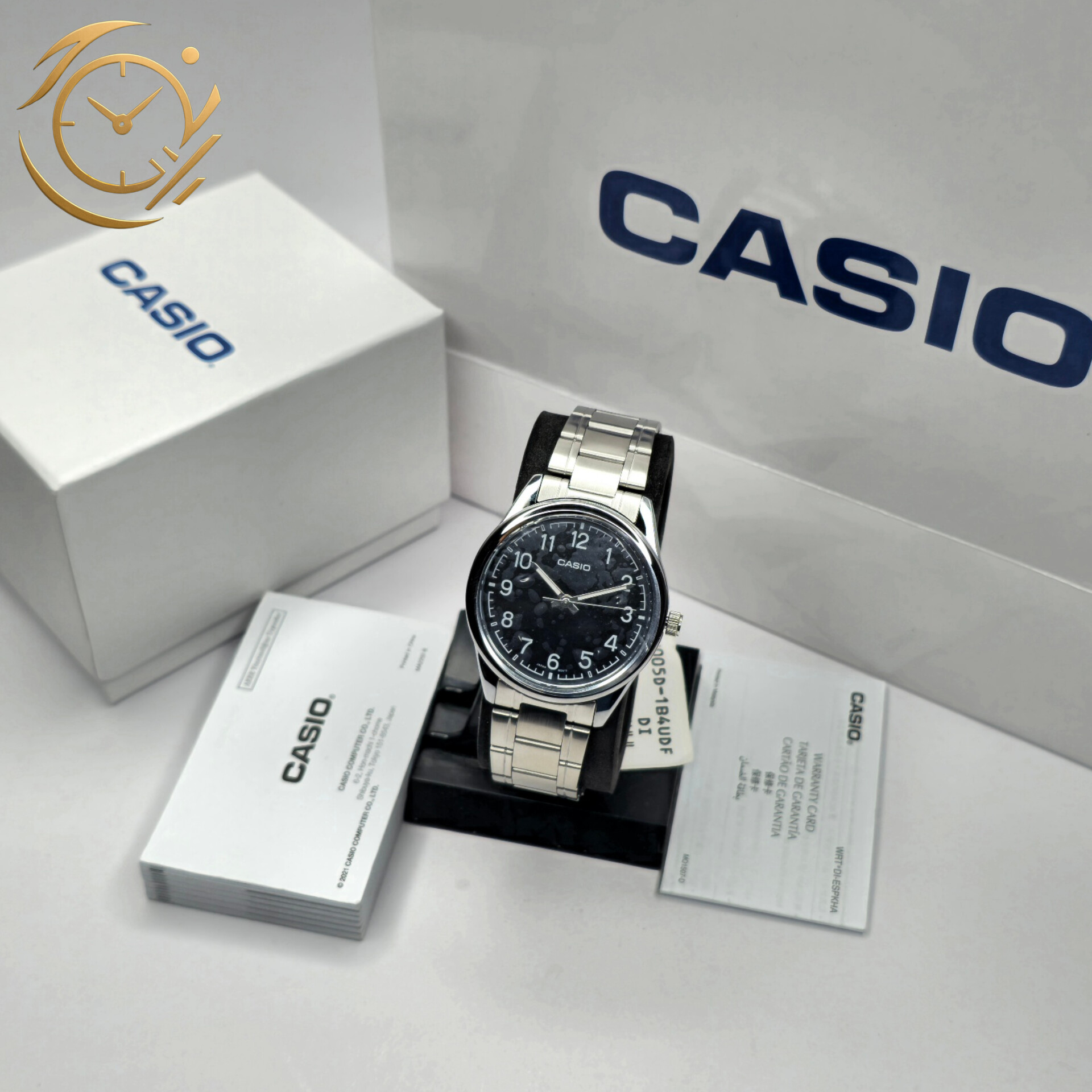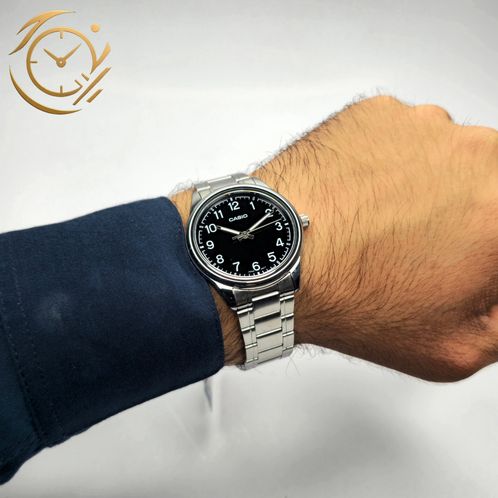 **ترکیب ماندگار استیل و صفحه مشکی برای استایل روزمره و کلاسیک**ساعت مچی مردانه **کاسیو MTP-V005D-1B4UDF** یکی از مدلهای محبوب و اقتصادی برند کاسیو است که با طراحی ساده، خوانا و بادوام، به یک انتخاب مطمئن برای استفادهی روزمره تبدیل شده. ترکیب **بند استیل نقرهای** با **صفحه مشکی مینیمال** ظاهر ساعت را کاملاً شیک، مردانه و همهپسند کرده است.## ⭐ **طراحی کلاسیک و شیک*** صفحهی مشکی ساده و کاملاً خوانا* قاب استیل مقاوم و باریک* بند استیل نقرهای با کیفیت ساخت عالی* طراحی کلاسیک مناسب همهی سنین و استایلها## ⭐ **کیفیت و امکانات*** **موتور کوارتز دقیق و کممصرف*** شیشهی معدنی برای مقاومت بیشتر در برابر خطوخشهای سطحی* بند استیل مستحکم و ضد زنگزدگی* **مقاومت در برابر آب** برای پاششها و شستوشوی دست* وزن مناسب برای استفاده طولانی مدت بدون خستگی.## ⭐ **مناسب چه کسانی است؟**این ساعت برای آقایانی عالی است که به دنبال یک مدل:* رسمی و شیک برای محل کار* قابل اعتماد برای استفاده روزمره* ساده، مینیمال و بدون شلوغی* اقتصادی اما باکیفیت