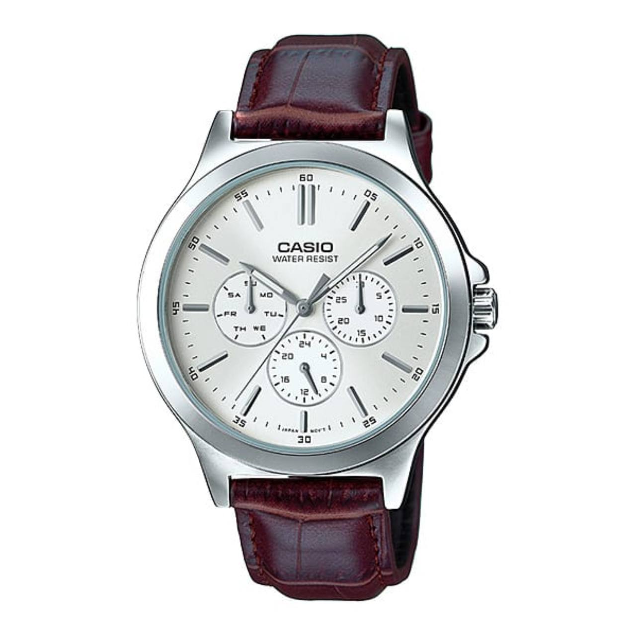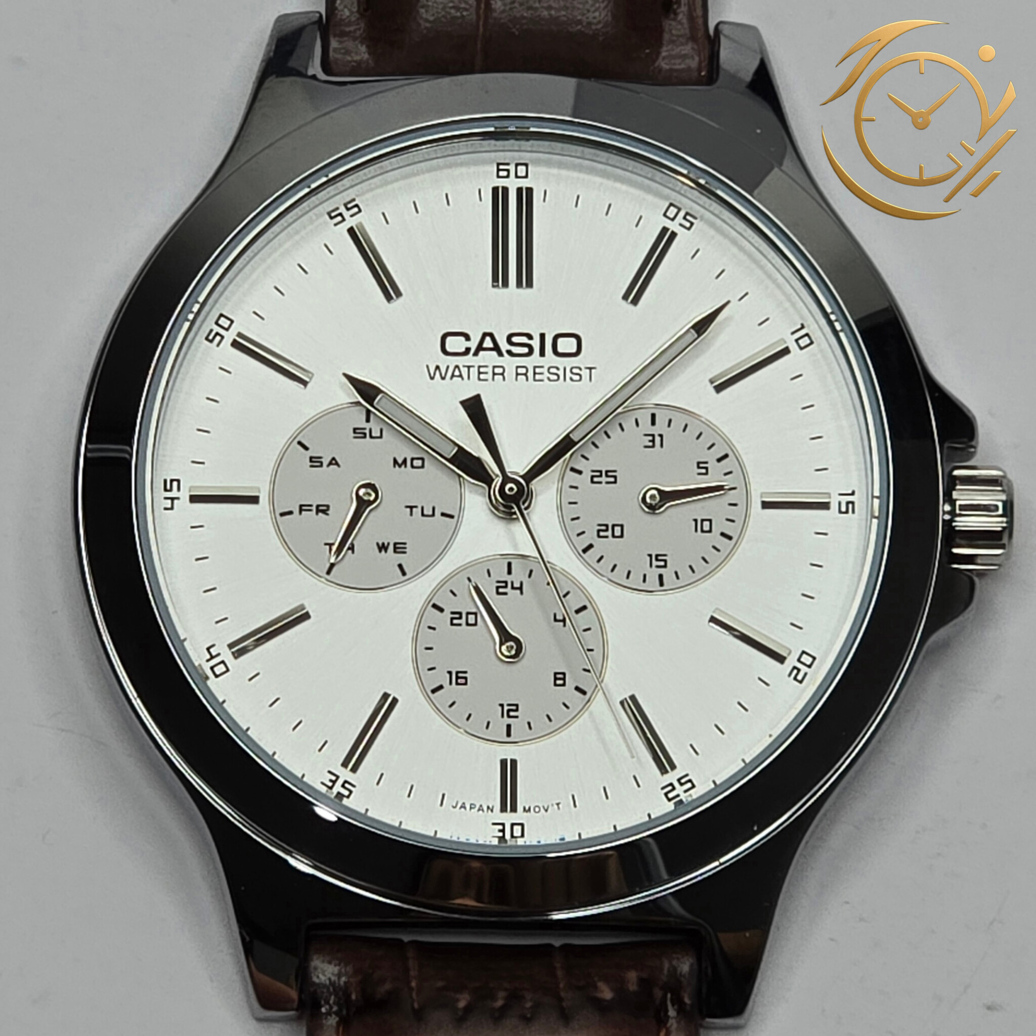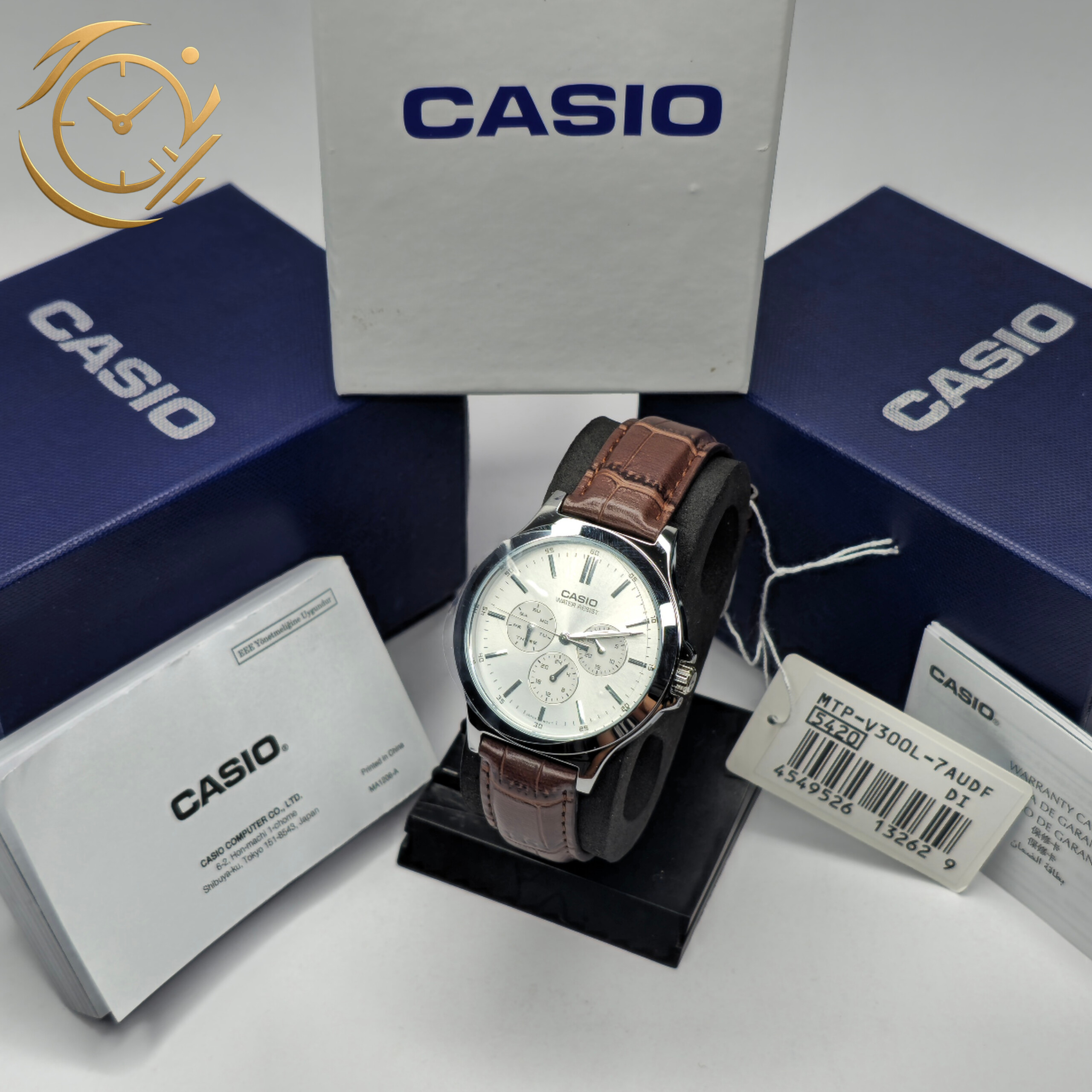 ساعت مچی مردانه کاسیو Casio MTP-V004L-7A | بند چرمی قهوهای، صفحه سفید کلاسیک و رسمی