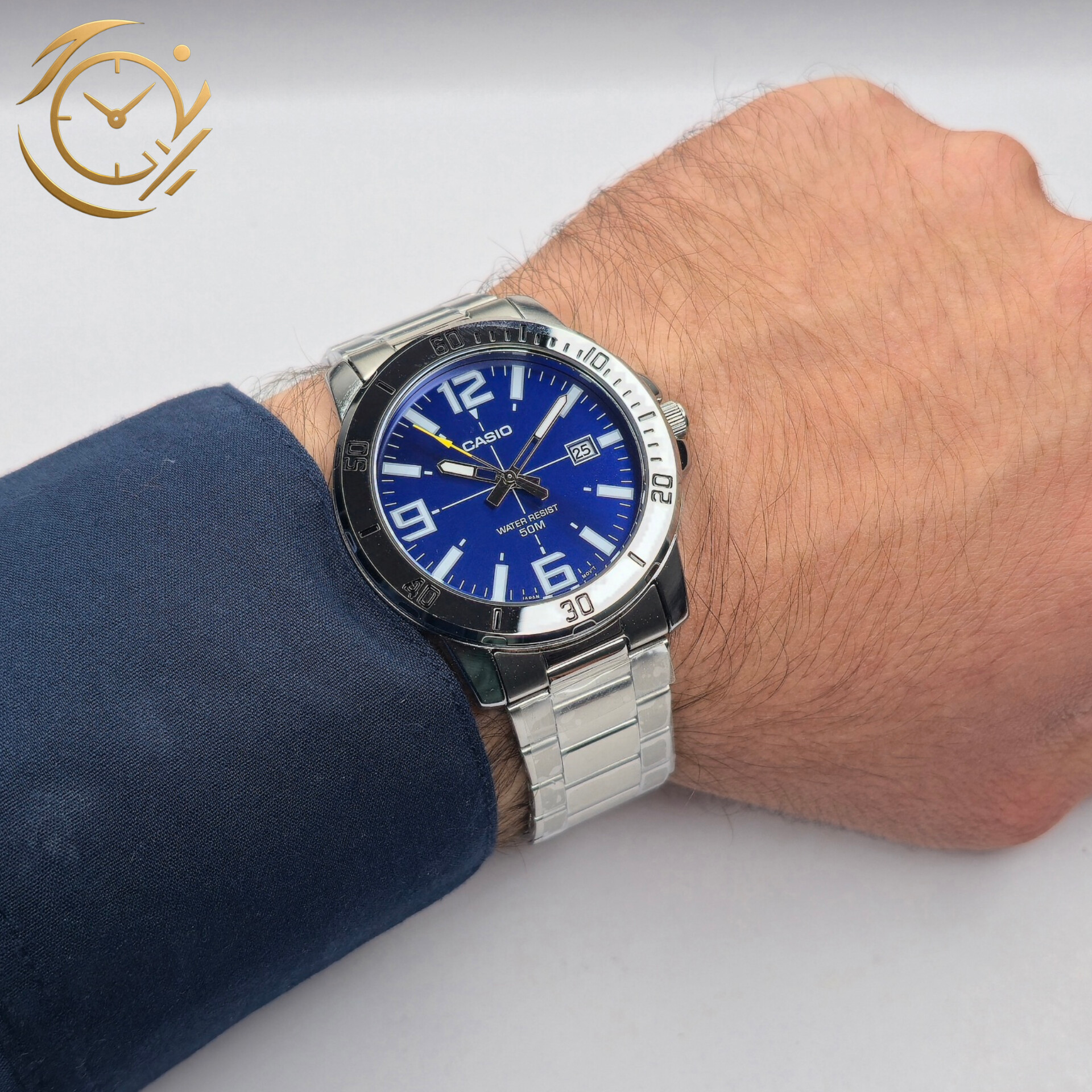 ساعت مچی مردانه Casio MTP-VD01D-2B یک انتخاب شیک و کاربردی برای آقایانی است که به استایل کلاسیک و ظاهر منظم اهمیت میدهند. این مدل با صفحه آبی جذاب در کنار بند استیل نقرهای، ترکیبی چشمنواز و حرفهای ایجاد کرده که بهراحتی با پوشش رسمی، اداری و روزمره هماهنگ میشود. طراحی ساده و خوانای صفحه، در کنار نمایش تاریخ، کارایی ساعت را در استفاده روزانه کاملتر میکند. بدنه استیل مقاوم، شیشه مینرال و موتور کوارتز دقیق، کیفیت ساخت قابلاعتماد کاسیو را نشان میدهد. اگر به دنبال خرید ساعت کاسیو مردانه کلاسیک، بند استیل و صفحه آبی هستید، MTP-VD01D-2B گزینهای خوشاستایل، بادوام و پرفروش محسوب میشود.