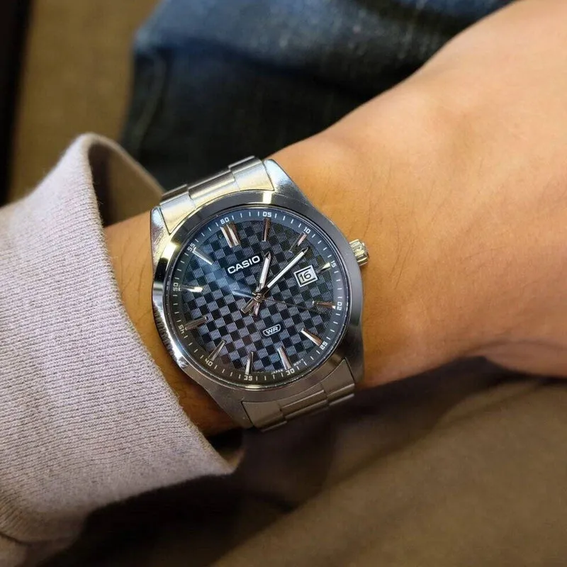ساعت مچی مردانه Casio MTP-VD03D-2A2 با صفحه آبی چشمنواز و بند استیل نقرهای مقاوم، یکی از جذابترین مدلهای سری VD03 کاسیو است که ظاهر شیک، کاربردی و کاملاً روزمره را در کنار هم ارائه میدهد. ترکیب صفحه آبی براق با طراحی تمیز و ساده، این مدل را به گزینهای ایدهآل برای استایلهای رسمی، نیمهرسمی و حتی استفاده روزانه تبدیل کرده است.این ساعت از موتور کوارتز دقیق و کممصرف استفاده میکند که زمانسنجی بسیار پایدار و قابل اعتماد را فراهم میسازد. شیشه معدنی باکیفیت، صفحه را در برابر خطوخشهای معمول محافظت میکند و کیفیت ساخت بالای بند و قاب استیل، دوام و مقاومت طولانیمدت برای کاربر به همراه دارد. همچنین مقاومت در برابر پاشش آب، خیال شما را در استفاده روزمره راحت میکند.اگر به دنبال یک ساعت زیبا، خوشساخت، با صفحه آبی خاص و قیمت مناسب هستید، MTP-VD03D-2A2 یکی از بهترین انتخابهای کاسیو در این سبک محسوب میشود.