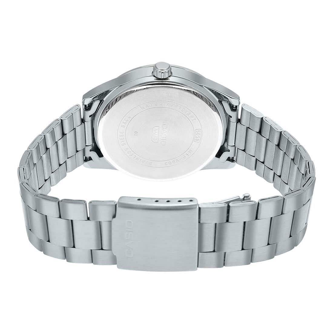 ساعت مچی مردانه Casio MTP-VD03D-7AUDF یکی از مدلهای شیک، ساده و فوقالعاده جذاب کاسیو است که با صفحه سفید کلاسیک و بند استیل نقرهای مقاوم، ظاهر کاملاً رسمی و روزمره را در کنار هم ارائه میدهد. طراحی تمیز و مینیمال صفحه، خوانایی بسیار بالایی ایجاد کرده و عقربهها و نشانگرهای شفاف باعث میشود زمان را در هر شرایطی سریع و راحت ببینید.این مدل از موتور کوارتز دقیق بهره میبرد که زمانسنجی پایدار، کممصرف و قابل اعتماد را تضمین میکند. همچنین شیشه معدنی مقاوم، از صفحه در برابر خطوخشهای معمول محافظت کرده و کیفیت ساخت عالی بدنه، دوام طولانیمدت آن را تضمین میکند. مقاومت در برابر پاشش آب نیز امکان استفاده راحت در فعالیتهای روزمره را فراهم میسازد.اگر به دنبال یک ساعت با ظاهر کلاسیک، قیمت مناسب، کیفیت بالا و ماندگاری طولانی هستید، MTP-VD03D-7AUDF یکی از بهترین انتخابهای کاسیو برای استایل رسمی، نیمهرسمی و استفاده روزمره محسوب میشود.
