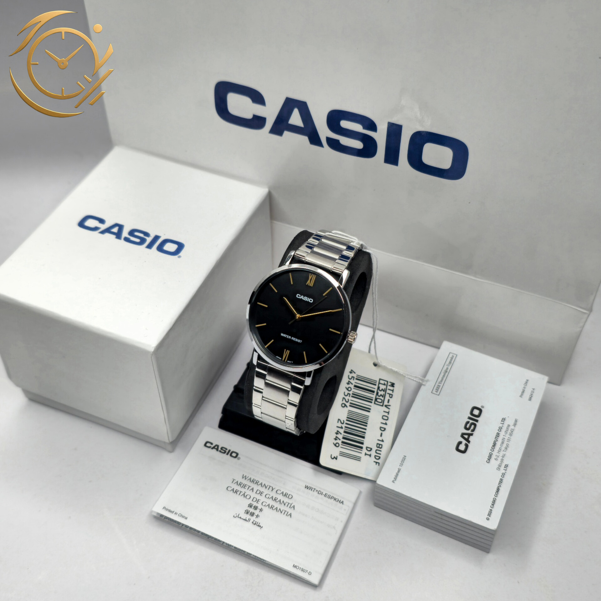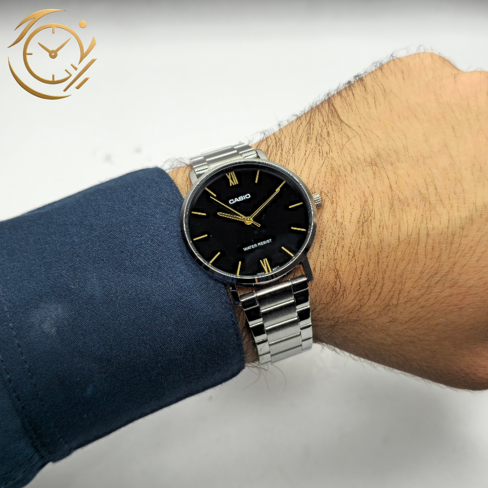ساعت مچی مردانه Casio MTP-VT01D-1B با صفحه مشکی کلاسیک و بند استیل، ترکیبی از طراحی شیک، کیفیت بالا و دوام طولانی ارائه میدهد. طراحی مینیمال و ساده صفحه با شاخصهای واضح، خوانایی عالی زمان را فراهم کرده و آن را به انتخابی مناسب برای استفاده روزمره، محیط کار و استایلهای رسمی و نیمهرسمی تبدیل میکند.این مدل از موتور کوارتز دقیق و کممصرف بهره میبرد که عملکرد پایدار و زمانسنجی مطمئن را تضمین میکند. شیشه معدنی مقاوم، صفحه را در برابر خطوخشهای سطحی محافظت میکند و قاب و بند استیل با کیفیت، دوام و استحکام طولانیمدت را برای استفاده روزانه فراهم میآورد. مقاومت در برابر پاشش آب، امکان استفاده راحت و بدون نگرانی در فعالیتهای روزمره را ایجاد میکند.اگر به دنبال یک ساعت خوشساخت، شیک، با طراحی کلاسیک و قیمت مناسب هستید، MTP-VT01D-1B یکی از بهترین انتخابهای کاسیو برای استایل رسمی، نیمهرسمی و روزمره محسوب میشود.