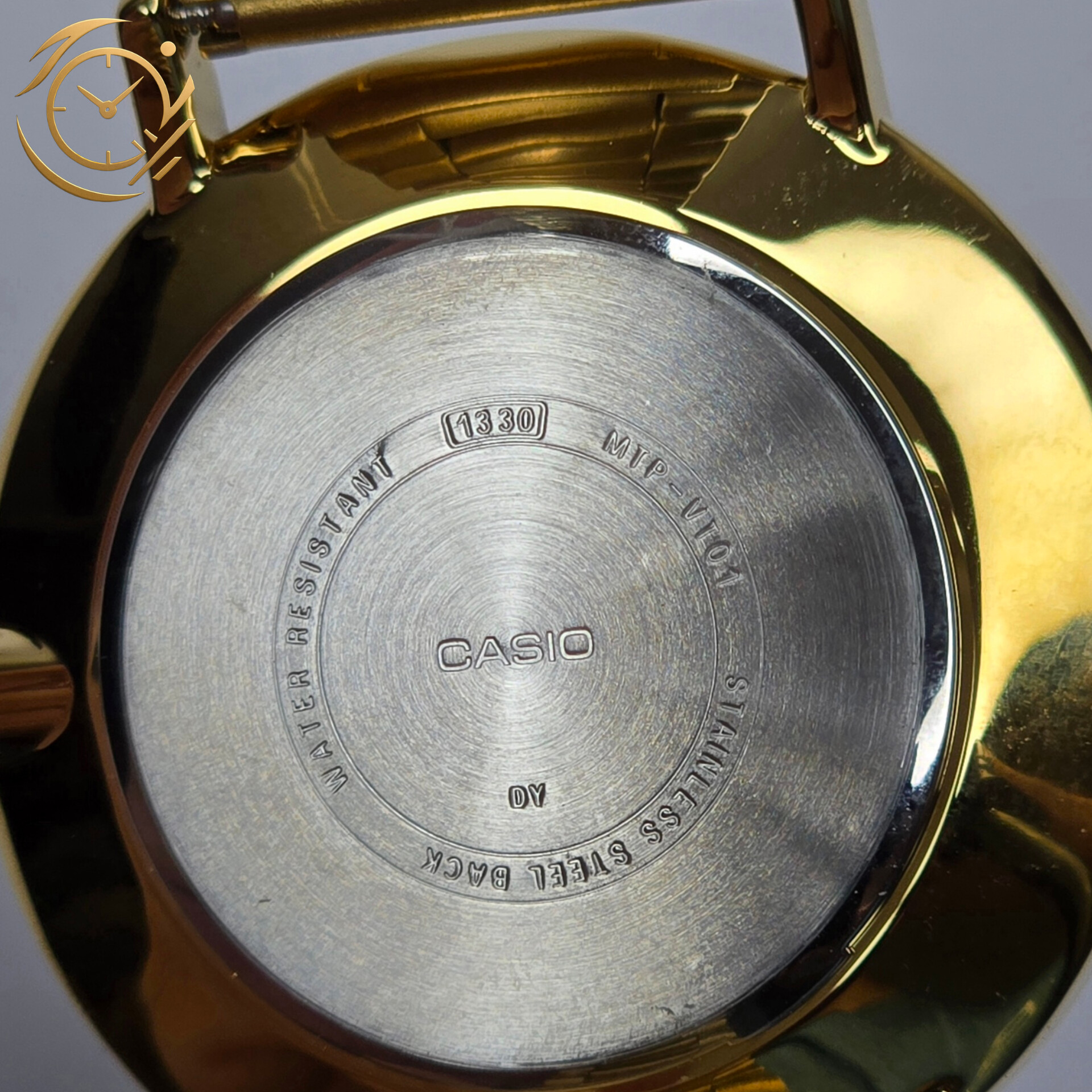 ساعت مچی مردانه کاسیو Casio MTP-VT01G-1BUDF یک گزینه بینظیر برای آقایانی است که به دنبال استایل کلاسیک، مینیمال و لوکس هستند. این مدل با بند استیل طلایی براق و صفحه مشکی ساده و شیک، ترکیبی چشمگیر و باوقار ارائه میدهد که برای محیطهای رسمی، مهمانیها و استفاده روزمره عالی است.بدنه و بند از استیل ضدزنگ با کیفیت بالا ساخته شده و مقاومت خوبی در برابر خط و خش دارد. طراحی مینیمال صفحه با عقربهها و نشانگرهای طلایی باریک، ظاهر ساعت را کاملاً شیک و هماهنگ با استایل رسمی یا روزمره میکند. موتور دقیق کاسیو و کیفیت ساخت بالا، تضمینی برای دوام و کارایی طولانیمدت این ساعت است.اگر به دنبال ساعتی هستید که ظاهر لوکس و مینیمال داشته باشد و همزمان با دوام و دقیق باشد، مدل MTP-VT01G-1BUDF یکی از بهترین انتخابها در سری کلاسیک کاسیو است.