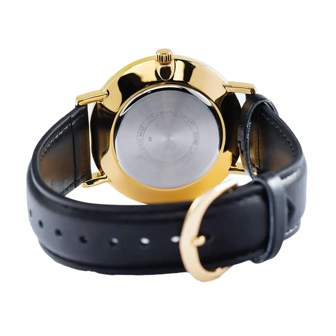 ساعت مچی مردانه Casio MTP-VT01GL-1B2 نمادی از وقار، سادگی هدفمند و زیبایی کلاسیک است. ترکیب صفحه مشکی عمیق با قاب طلایی در کنار بند چرمی مشکی، هارمونی چشمگیری ایجاد کرده که جلوهای رسمی، شیک و کاملاً مردانه به استایل شما میبخشد. طراحی مینیمال صفحه بدون شلوغی، باعث شده نگاه اول مستقیماً به ظرافت و تناسب اجزای ساعت جلب شود و حس یک اکسسوری اصیل و سطحبالا را منتقل کند. این مدل انتخابی ایدهآل برای جلسات کاری، مراسم رسمی و استایلهای کتوشلواری است؛ ساعتی خوشفرم و باوقار که بدون اغراق، امضای شخصیت منظم و حرفهای شما خواهد بود.