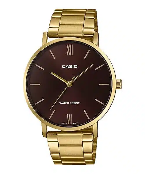 ساعت مچی مردانه کاسیو Casio MTP-VT01G-5B | بند استیل طلایی، صفحه قهوه ای کلاسیک و مینیمال