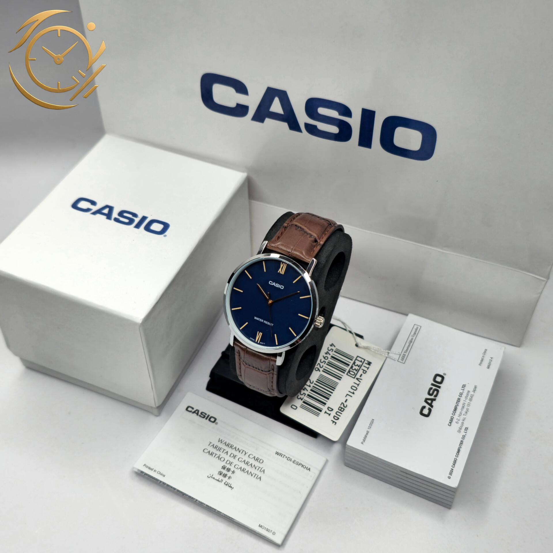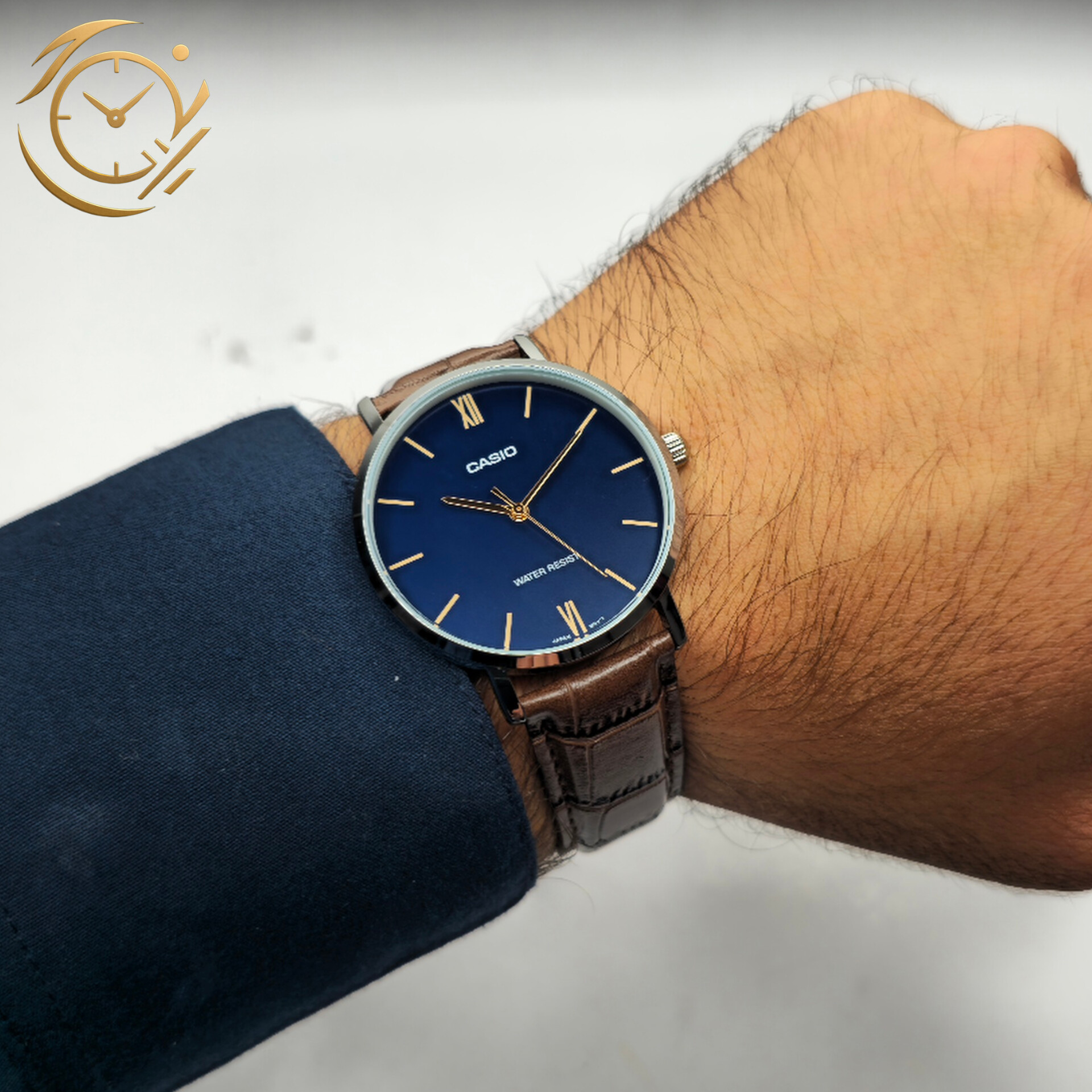 ساعت مچی مردانه Casio MTP-VT01L-2BUDF با صفحه آبی جذاب و بند چرمی قهوه ای، ترکیبی از طراحی اسپرت، ظرافت و کیفیت ساخت بالا را ارائه میدهد. طراحی مینیمال و شکیل صفحه با شاخصهای واضح، خوانایی عالی زمان را تضمین کرده و این مدل را برای استفاده روزمره، محیط کار و استایلهای رسمی و نیمهرسمی مناسب میکند.این ساعت مجهز به موتور کوارتز دقیق و کممصرف است که عملکرد پایدار و زمانسنجی قابل اعتماد را فراهم میکند. شیشه معدنی مقاوم، صفحه را در برابر خطوخشهای معمول محافظت میکند و قاب و بند چرمی باکیفیت، دوام طولانیمدت و راحتی بالایی برای استفاده روزانه ایجاد میکند. مقاومت در برابر پاشش آب، امکان استفاده بدون نگرانی در فعالیتهای روزمره را فراهم میآورد.اگر به دنبال یک ساعت مردانه با طراحی اسپرت، ظاهر جذاب، کیفیت بالا و قیمت مناسب هستید، MTP-VT01L-2BUDF یکی از بهترین انتخابهای کاسیو برای استایل روزمره، اسپرت و نیمهرسمی محسوب میشود.