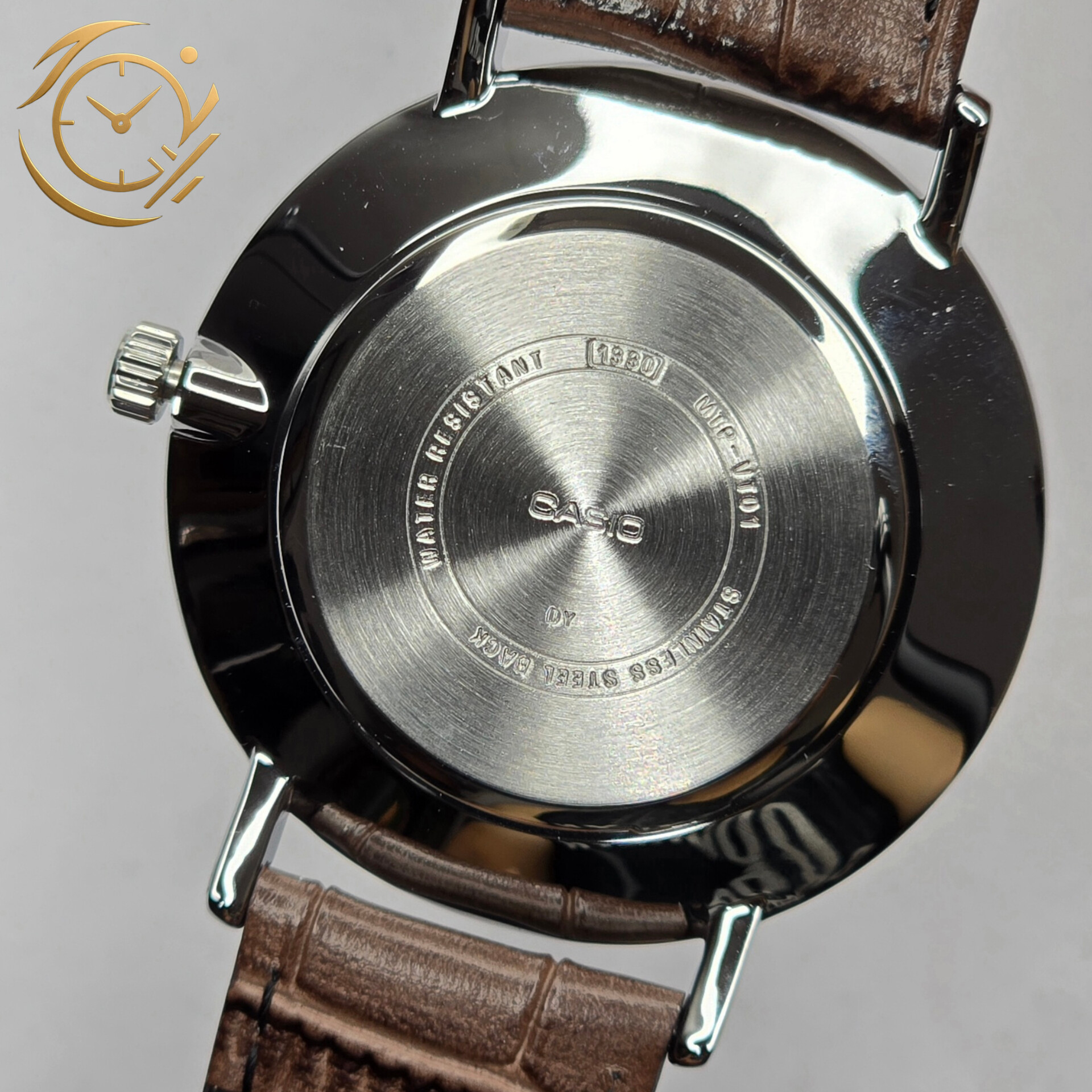 ساعت مچی مردانه کاسیو Casio MTP-VT01LM-7AUDF – بند چرمی مشکی، صفحه سفید مینیمال کلاسیک