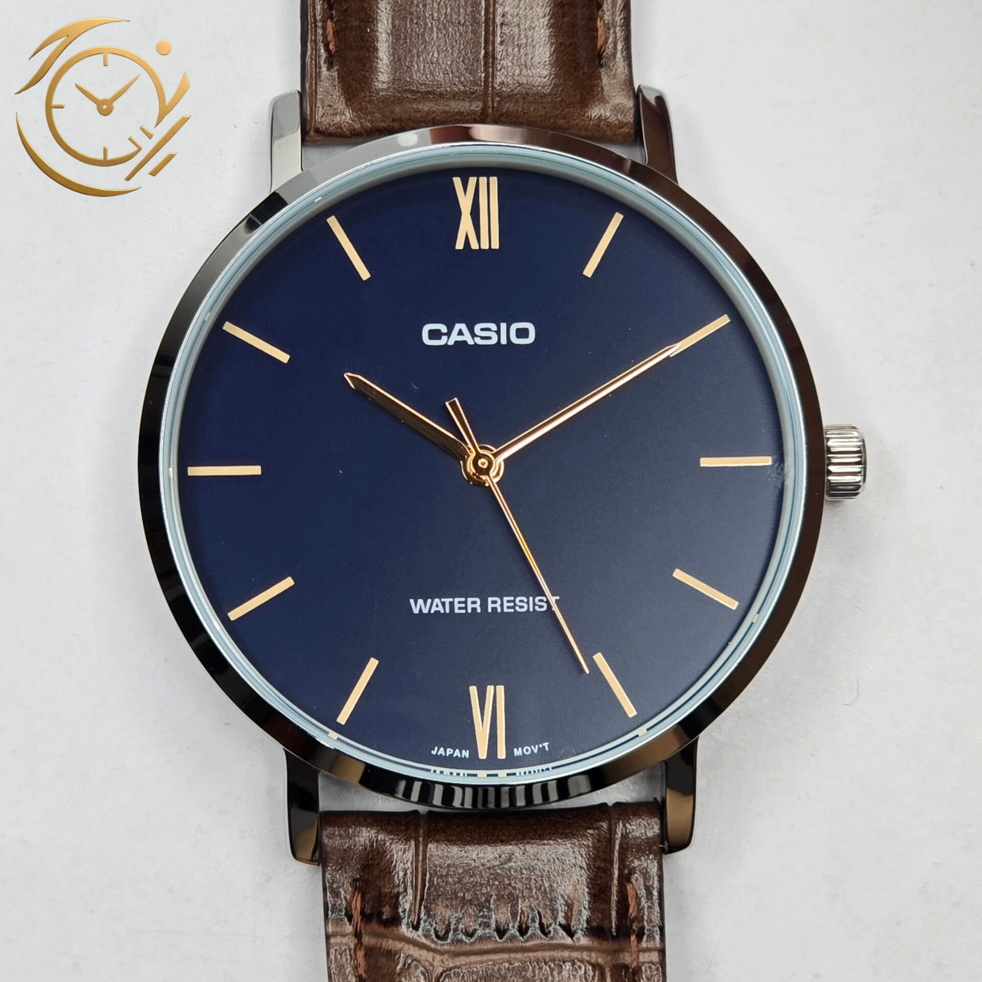 ساعت مچی مردانه کاسیو Casio MTP-VT01LM-1AUDF – بند چرمی مشکی، صفحه مشکی مینیمال کلاسیک