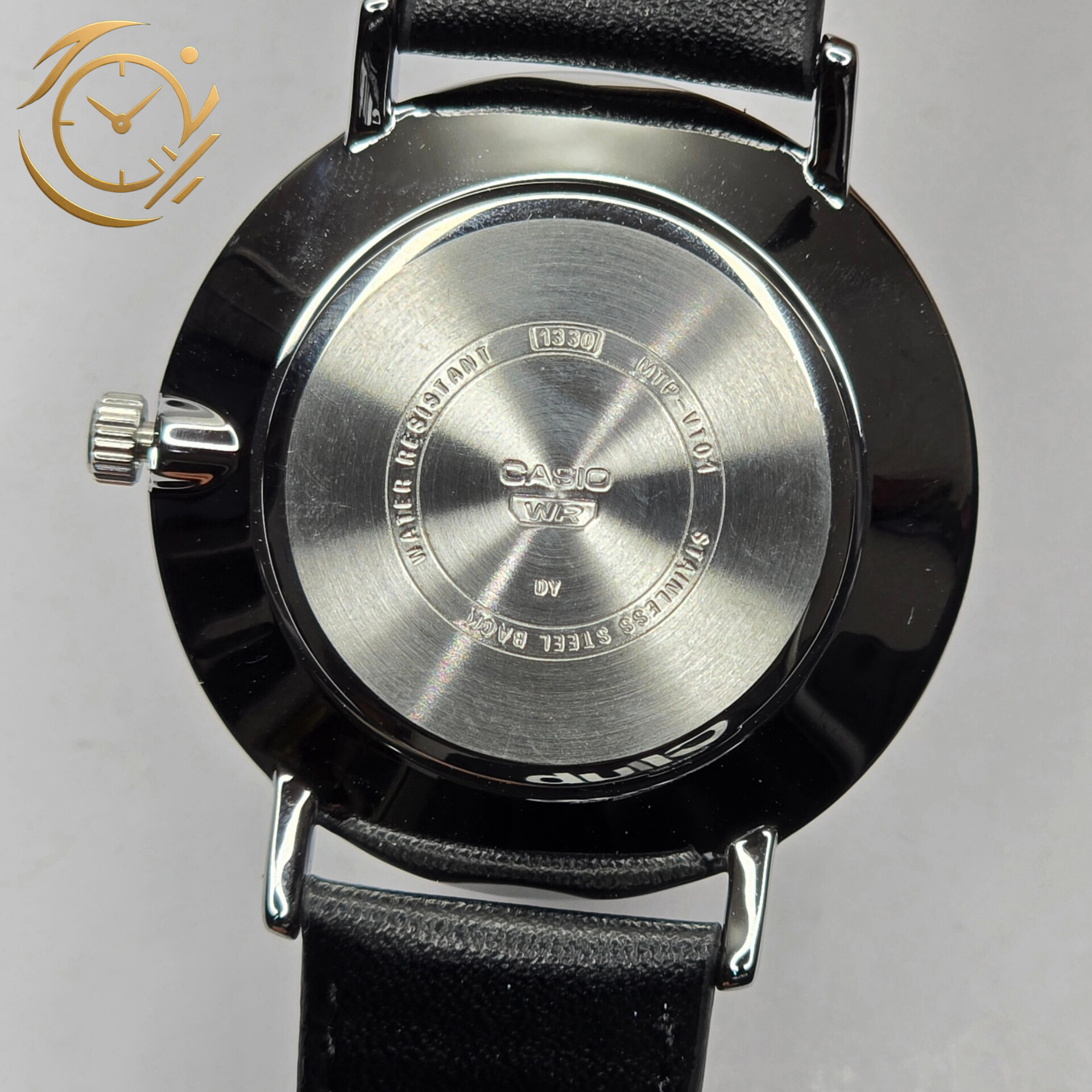 ساعت مچی مردانه کاسیو Casio MTP-VT01LM-7AUDF – بند چرمی مشکی، صفحه سفید مینیمال کلاسیک