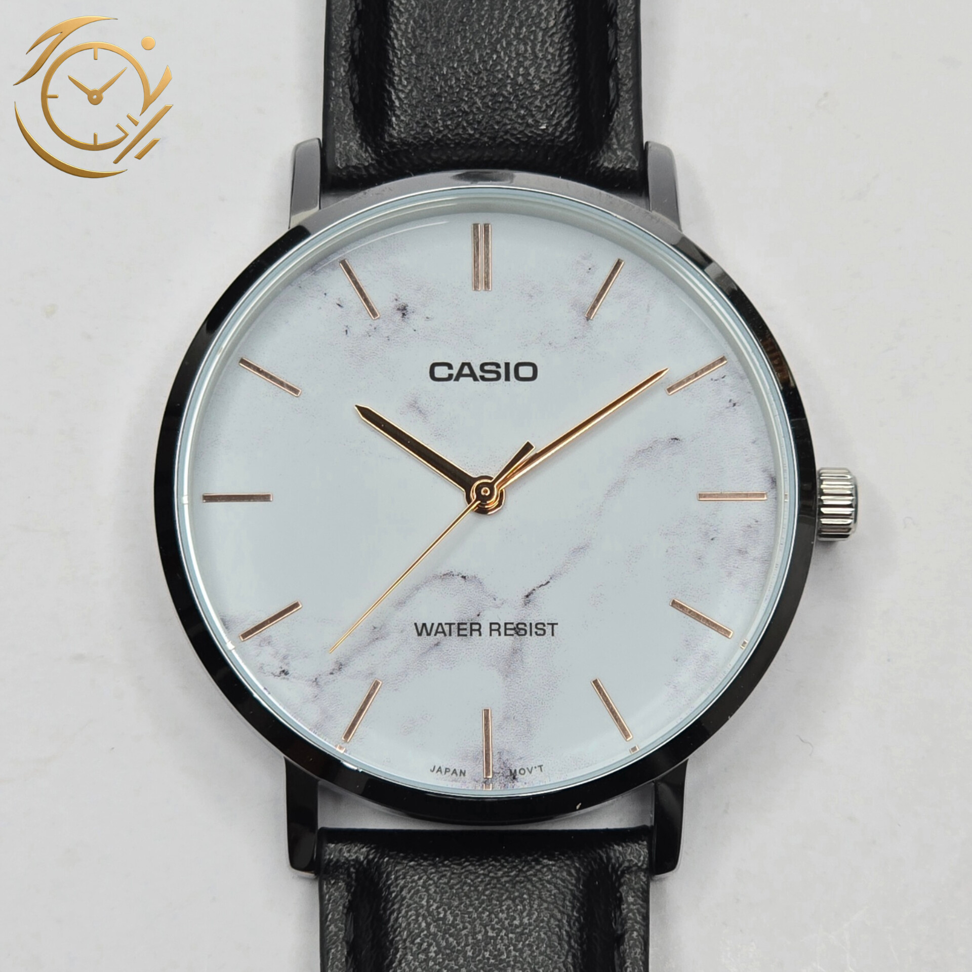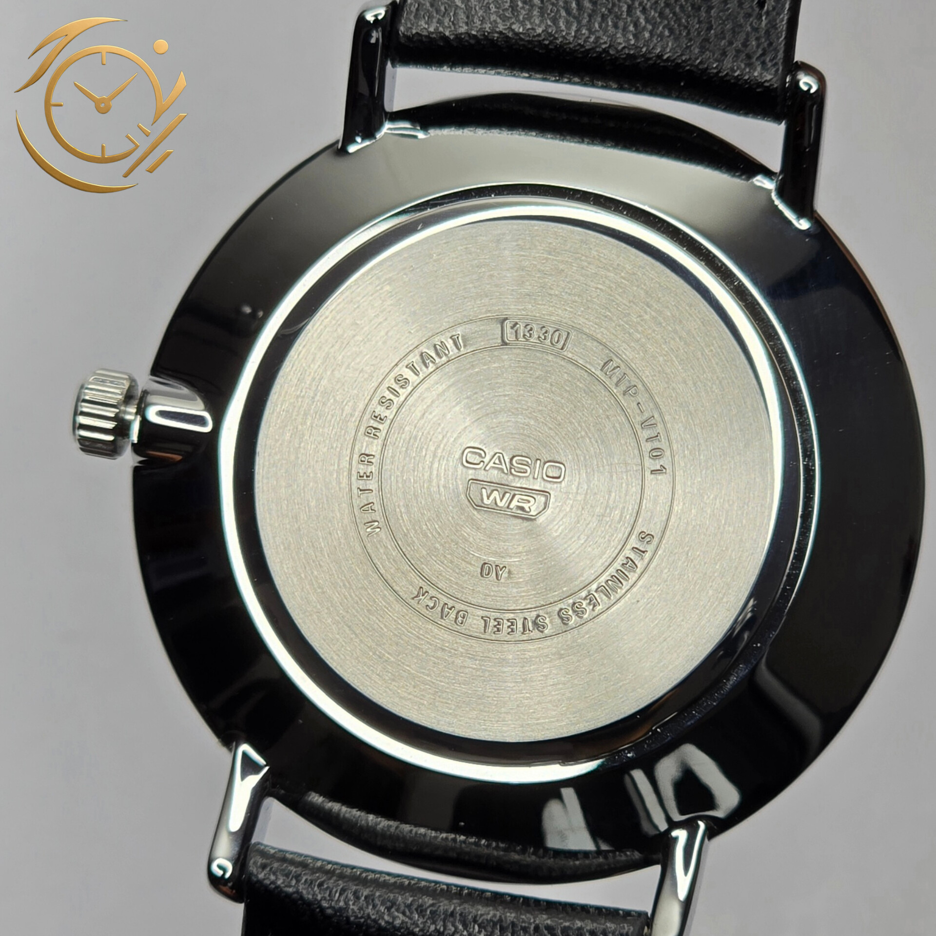 ساعت مچی مردانه کاسیو Casio MTP-VT01LM-1AUDF – بند چرمی مشکی، صفحه مشکی مینیمال کلاسیک