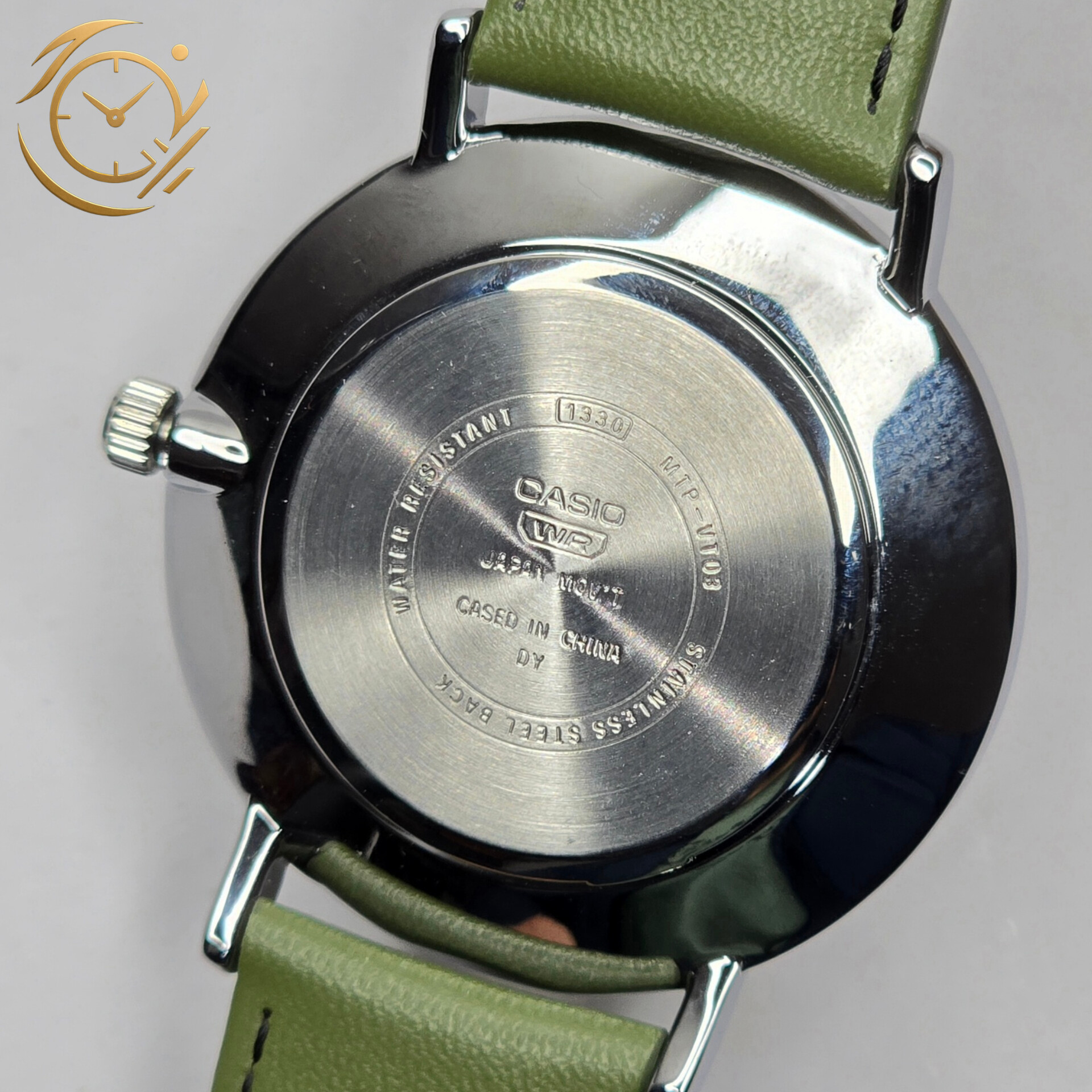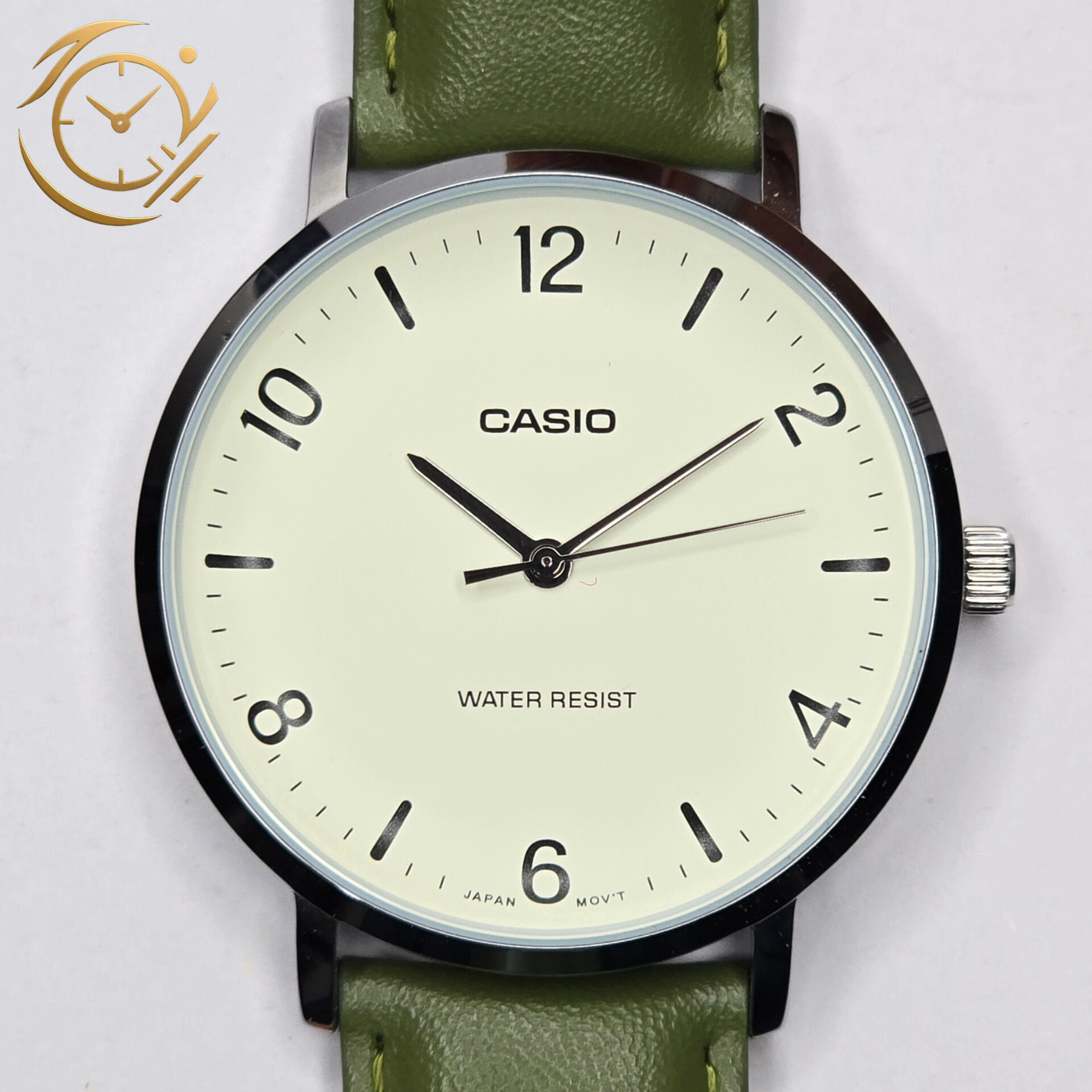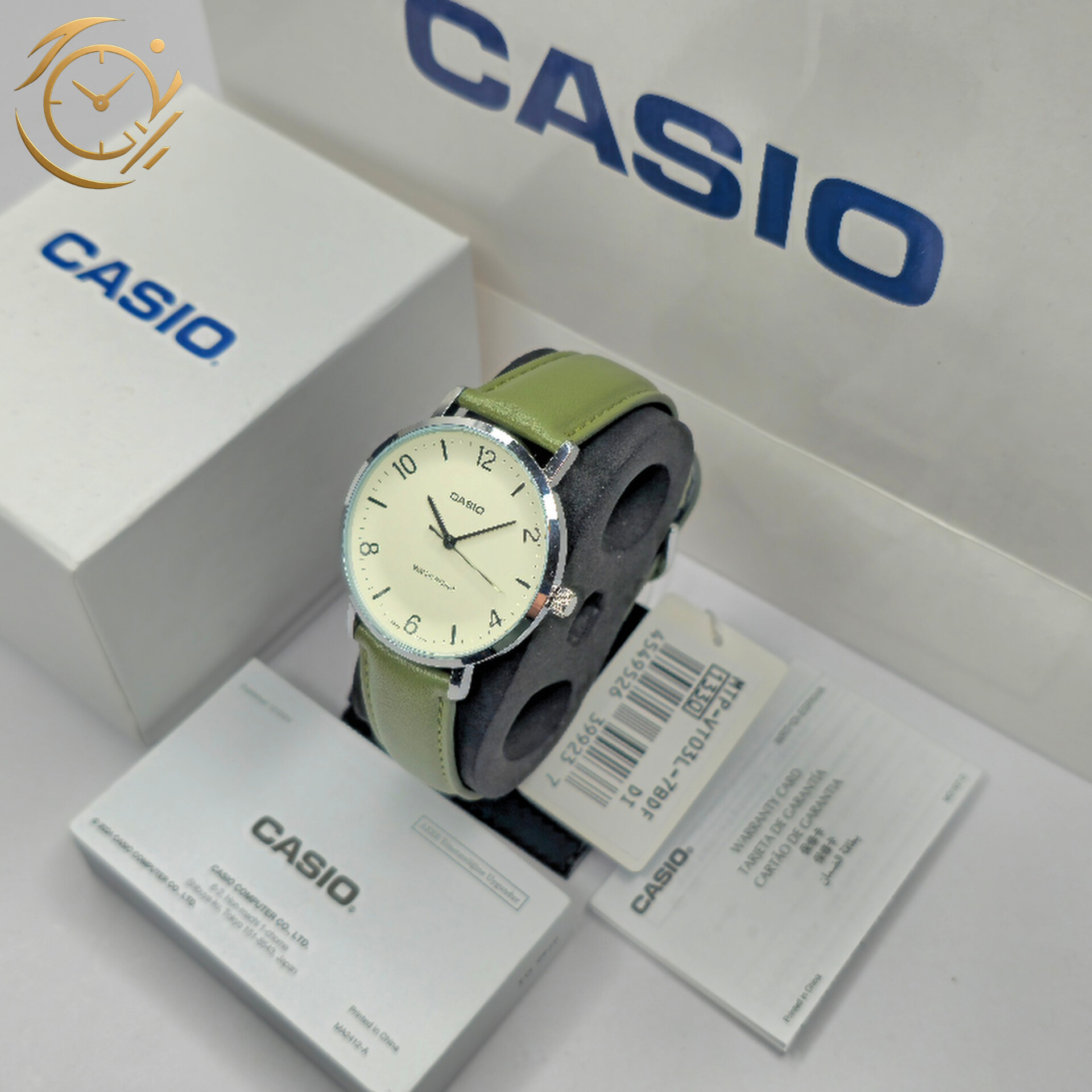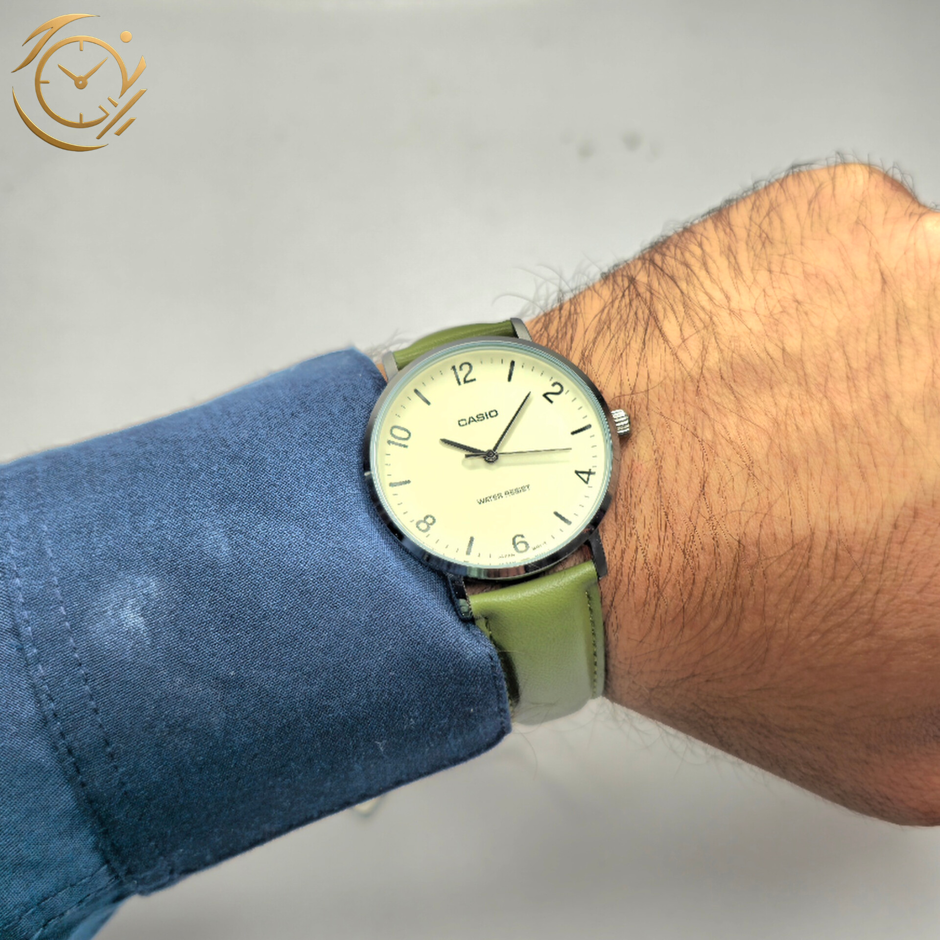 ساعت مچی مردانه Casio مدل MTP-VT03L-7B انتخابی ظریف و خوشاستایل برای آقایانی است که به طراحی مینیمال و کلاسیک علاقه دارند. صفحه سفید ساده در کنار بند چرمی سبز ترکیبی متفاوت و خاص ایجاد کرده که بهراحتی با استایلهای روزمره، نیمهرسمی و حتی رسمی ست میشود.این ساعت به موتور کوارتز دقیق کاسیو مجهز شده و دقت بالا و عملکردی قابل اعتماد را در استفاده روزانه فراهم میکند. بند چرمی نرم و سبک، حس راحتی مناسبی روی مچ ایجاد میکند و برای استفاده طولانیمدت گزینهای ایدهآل است. طراحی خلوت صفحه و خوانایی مناسب عقربهها، زیبایی کلاسیک این مدل را دوچندان کرده است.اگر بهدنبال ساعتی ساده، شیک و اقتصادی با کیفیت ژاپنی هستید که هیچوقت از مد نیفتد، Casio MTP-VT03L-7B میتواند انتخابی هوشمندانه برای استایل روزمره شما باشد.