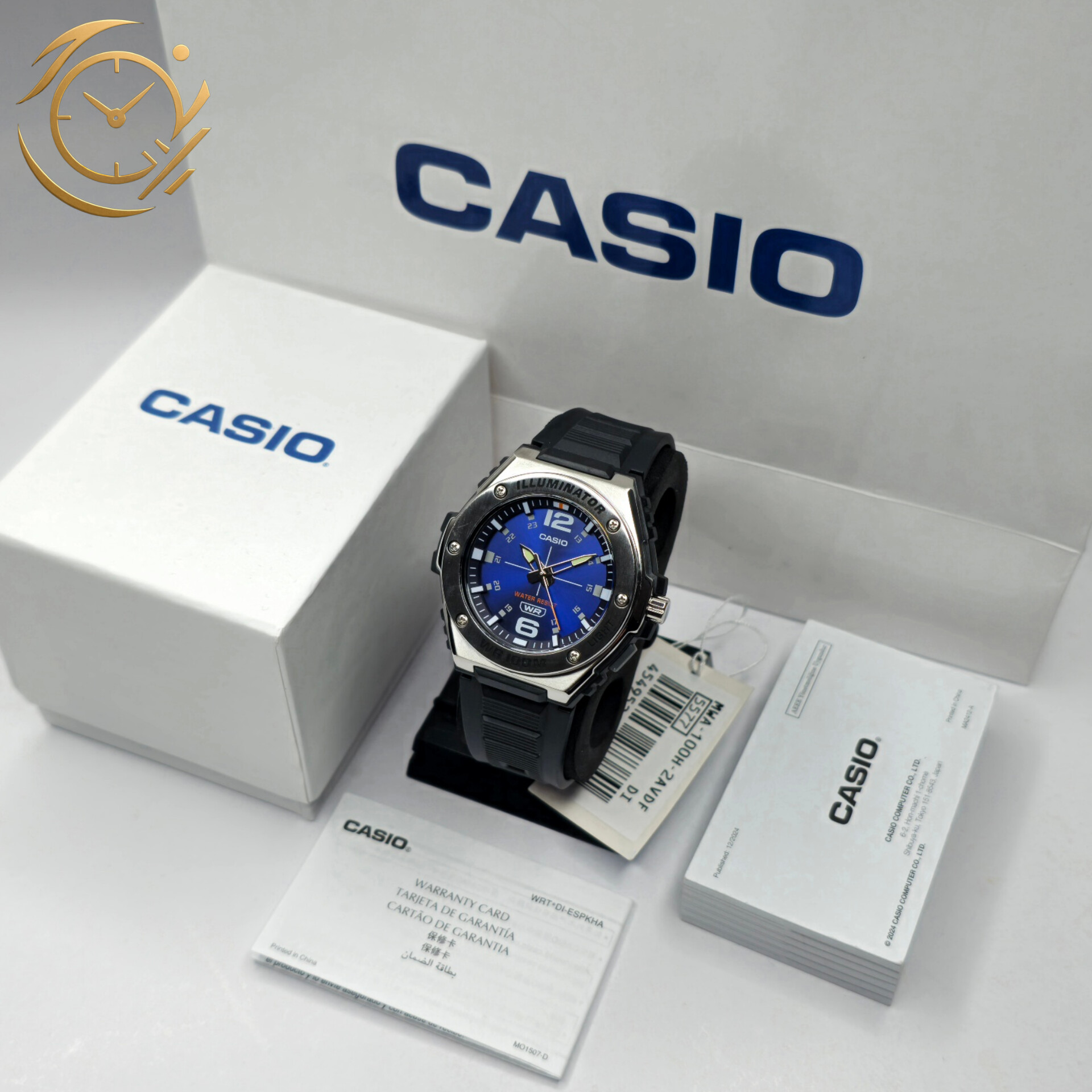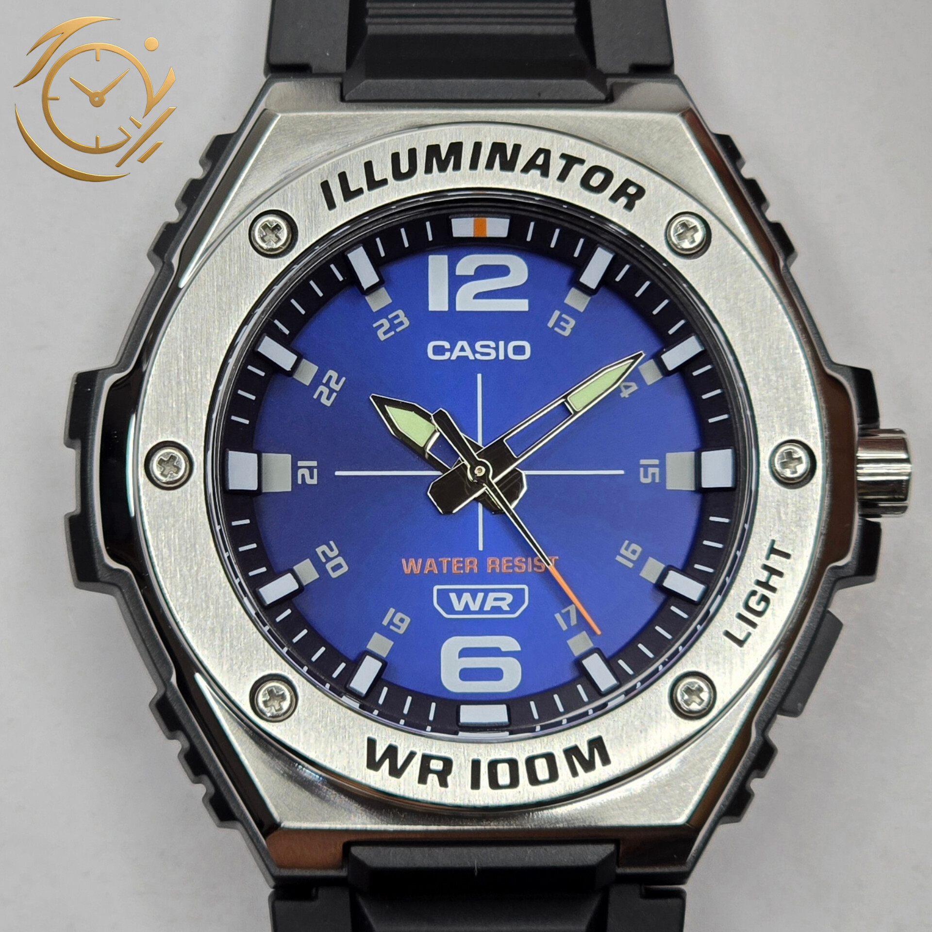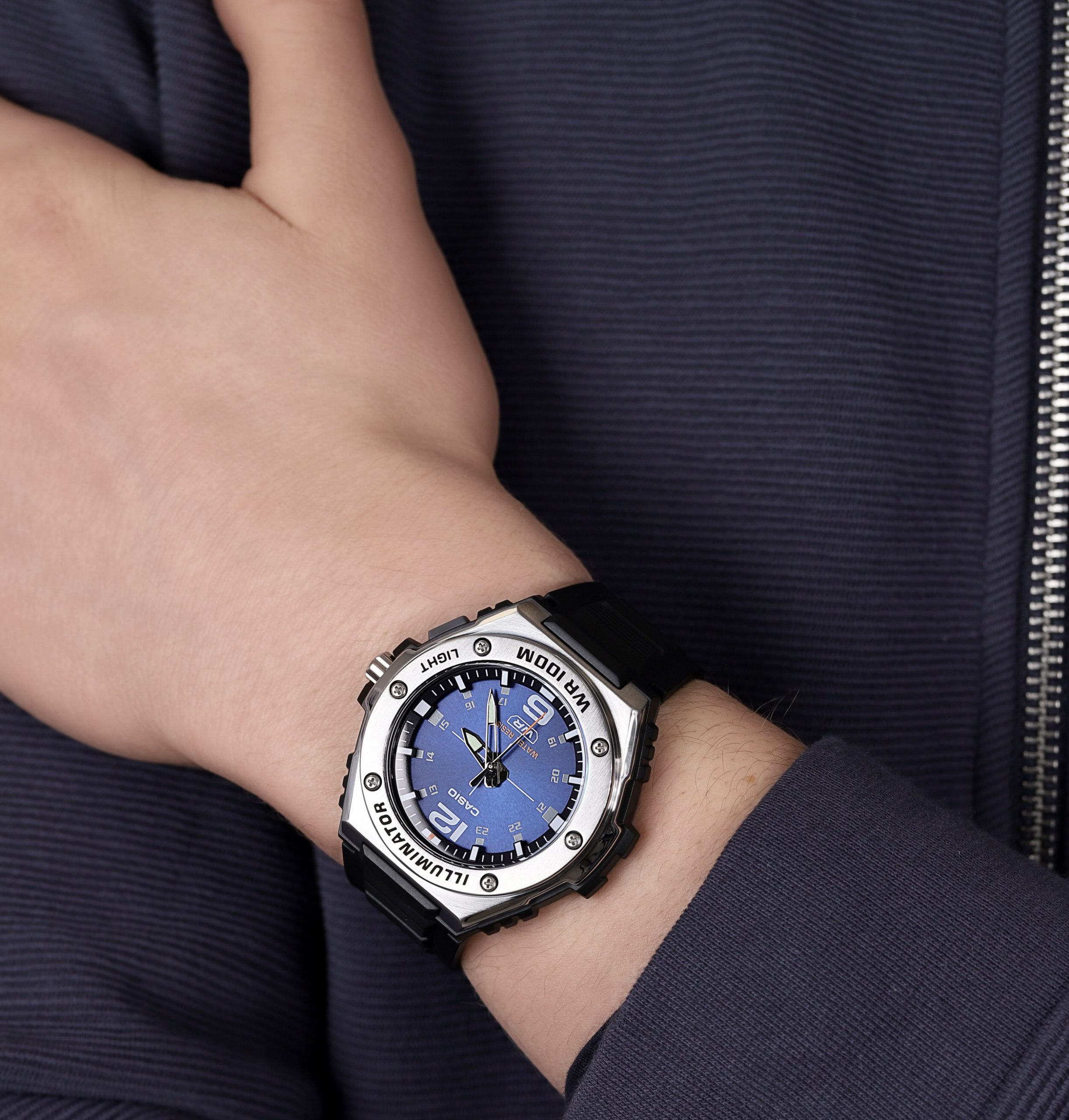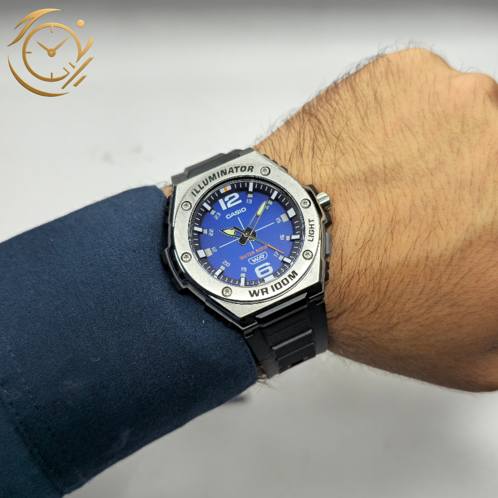 ساعت مچی مردانه Casio MWA-100H-2AVDF با صفحه آبی جذاب و بند رزینی مشکی، ترکیبی از طراحی اسپرت، دوام بالا و عملکرد دقیق را ارائه میدهد. طراحی ساده و مینیمال صفحه با شاخصهای واضح، خوانایی عالی زمان را تضمین کرده و این مدل را به انتخابی ایدهآل برای استفاده روزمره، فعالیتهای ورزشی و استایلهای نیمهرسمی و اسپرت تبدیل میکند.این ساعت مجهز به موتور کوارتز دقیق و کممصرف است که عملکرد پایدار و زمانسنجی قابل اعتماد را فراهم میکند. شیشه معدنی مقاوم، صفحه را در برابر خطوخشهای معمول محافظت کرده و قاب و بند رزینی با کیفیت، دوام طولانی و راحتی بالا برای استفاده روزانه ایجاد میکند. مقاومت در برابر آب، امکان استفاده بدون نگرانی در شرایط مختلف و فعالیتهای روزمره را فراهم میآورد.