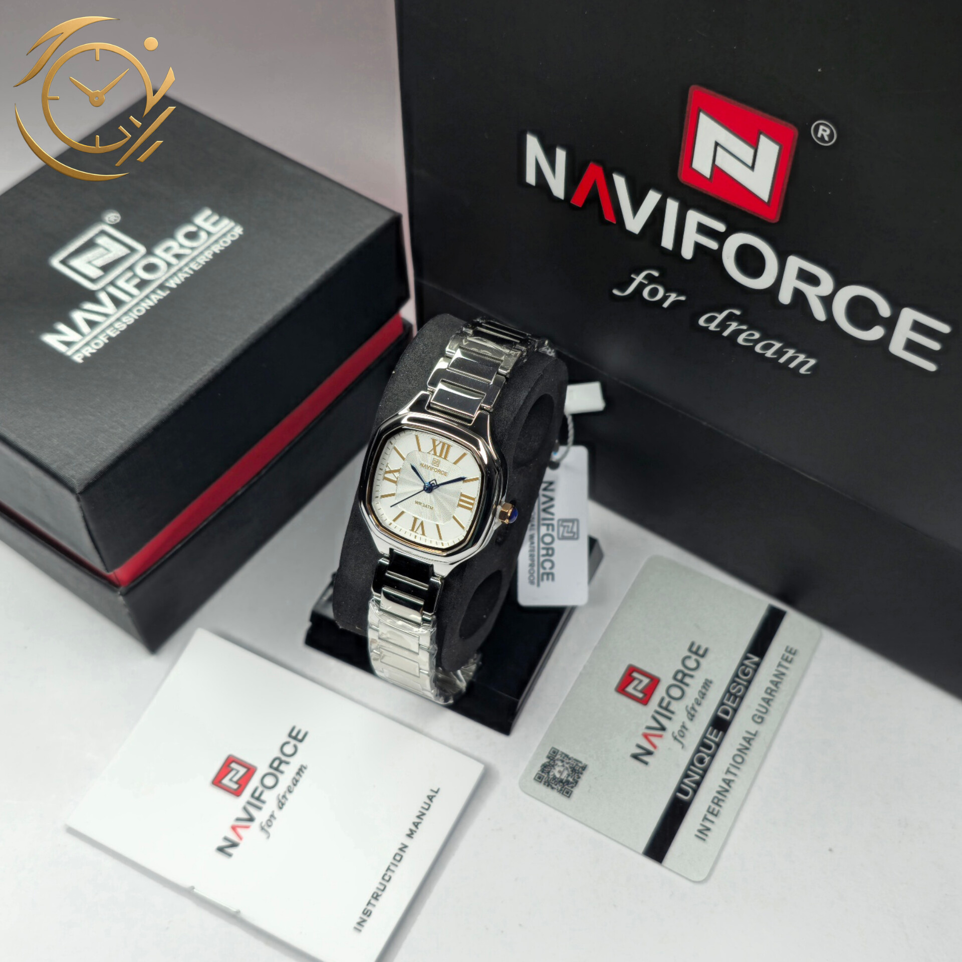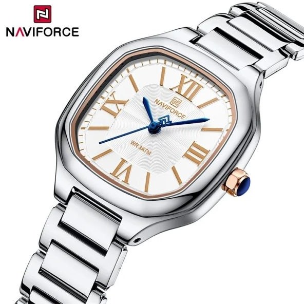 ساعت مچی زنانه Naviforce NF5042 انتخابی شیک و باوقار برای خانمهایی است که به استایل رسمی و باکلاس اهمیت میدهند. بند فلزی نقرهای در کنار صفحه سفید با جزئیات طلایی جلوهای لطیف و در عین حال باشکوه ایجاد میکند که بهراحتی با لباسهای رسمی، اداری و مهمانی ست میشود. ترکیب نقرهای و طلایی تعادلی زیبا بین ظرافت و تجمل برقرار میکند و نگاه هر بینندهای را به خود جلب مینماید.صفحهی روشن با نشانگرهای طلایی، علاوه بر خوانایی بالا، حس نظم و دقت را منتقل میکند و ساعت را به گزینهای ایدهآل برای موقعیتهای مهم تبدیل میسازد. Naviforce NF5042 با طراحی کلاسیک و کیفیت ساخت متناسب، نهتنها ظاهری برازنده به مچ شما میبخشد، بلکه شخصیت حرفهای و خوشسلیقه شما را نیز به بهترین شکل برجسته میکند — ساعتی که هر بار که به آن نگاه میکنید، نشانهای از سلیقهی بالای شما خواهد بود.