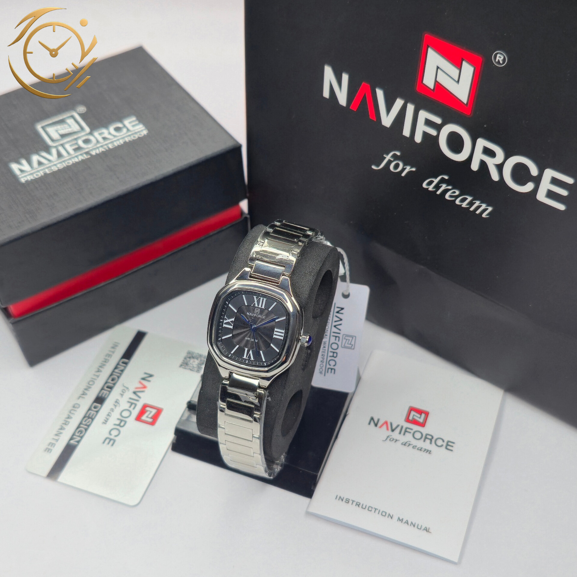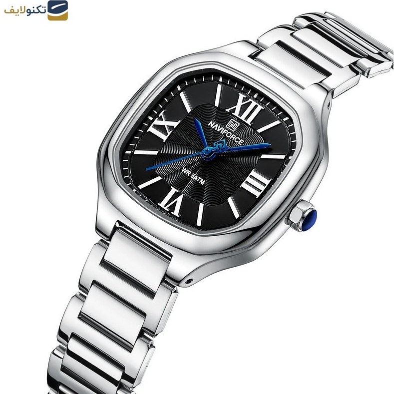 ساعت مچی زنانه Naviforce مدل NF5042 با طراحی رسمی و شیک، انتخابی ایدهآل برای استایلهای کلاسیک و خاصپسند است. این ساعت دارای بند فلزی نقرهای با کیفیت بالا و صفحه مشکی زیبا است که تضاد رنگی جذابی ایجاد میکند و میتواند بهراحتی با لباسهای رسمی و مجلسی ست شود.فرم بدنه و طراحی صفحه بهگونهای است که علاوه بر ظاهر چشمگیر، خوانایی دقیق زمان را نیز تضمین میکند. بند فلزی مقاوم، حس لوکس بودن را افزایش داده و دوام بالایی در استفاده روزمره دارد. این مدل مناسب خانمهایی است که به ساعتهای با استایل رسمی و جذاب علاقهمندند.اگر به دنبال یک ساعت زنانه رسمی، زیبا و باکیفیت از برند Naviforce هستید، NF5042 گزینهای خاص و قابل اعتماد است که هم در مهمانیها و هم در محیطهای حرفهای بدرخشید.