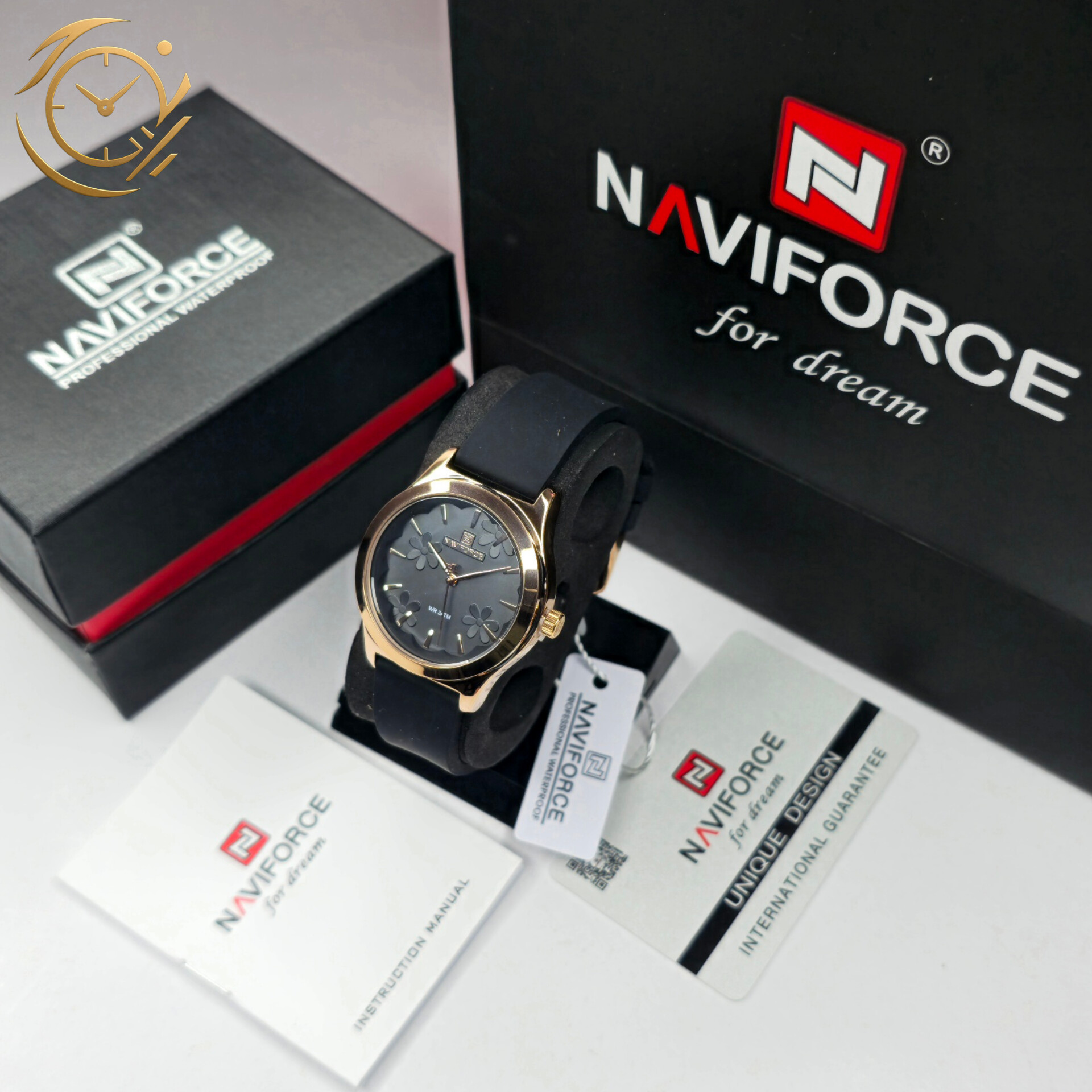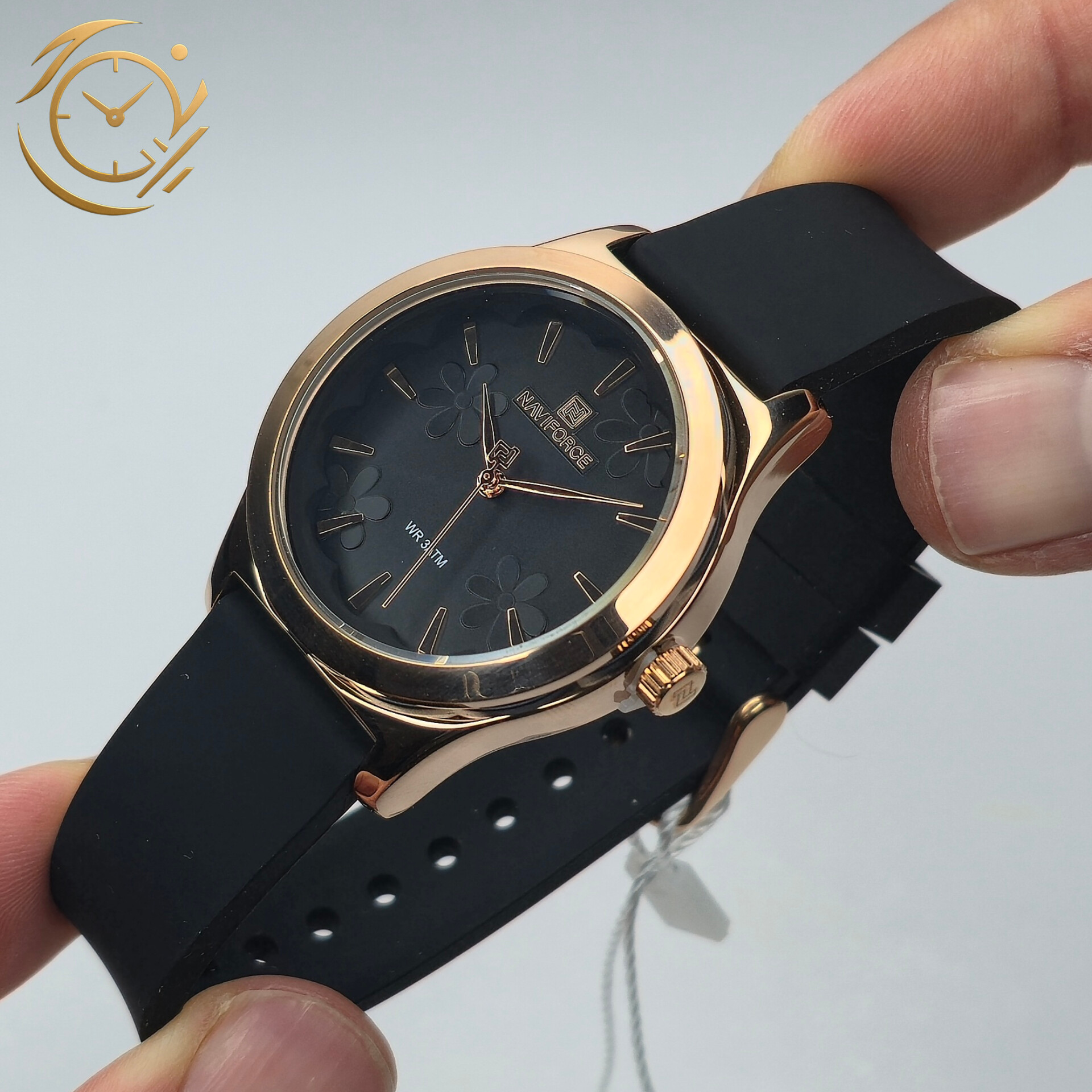 ساعت مچی زنانه Naviforce NF5051 ترکیبی چشمنواز از استایل مدرن، زیبایی مینیمال و انرژی بصری بالا است. بند سیلیکونی مشکی در کنار صفحهٔ مشکیِ همرنگ ظاهر یکدست، شیک و متناسب با سلیقههای متفاوت ایجاد میکند، در حالی که قاب رزگلد جلوهای لطیف و لوکس به طراحی بخشیده است. این تضاد کلاسیک بین مشکی و رزگلد باعث میشود ساعت در کنار لباسهای روزمره، رسمی یا کژوال بهخوبی بدرخشد و ظاهری منسجم و حرفهای بسازد.بند سیلیکونی نرم و سبک، راحتی فوقالعادهای برای استفادهی روزانه فراهم میکند و مناسب موقعیتهای مختلف از پیادهروی تا قرارهای دوستانه است. صفحهی واضح با نمایش دقیق زمان نیز حس اعتماد و کاربردی بودن را به همراه دارد.Naviforce NF5051 انتخابی عالی برای خانمهایی است که به دنبال ساعتی شیک، باوقار و انعطافپذیر در استایل هستند — ساعتی که شخصیتِ خوشسلیقه و پویا شما را به بهترین شکل تکمیل میکند.