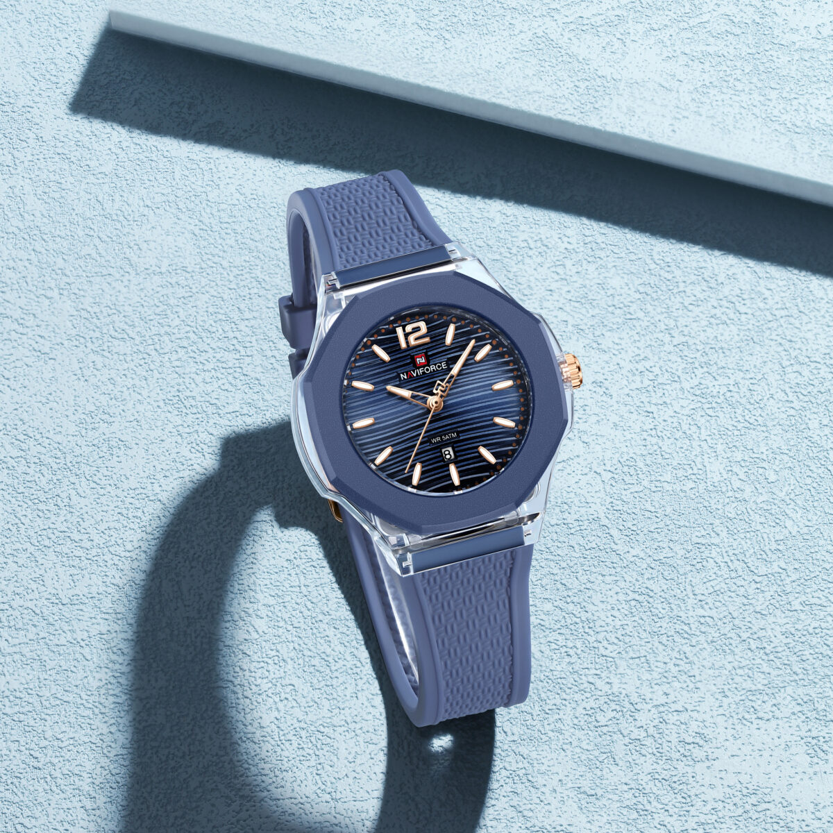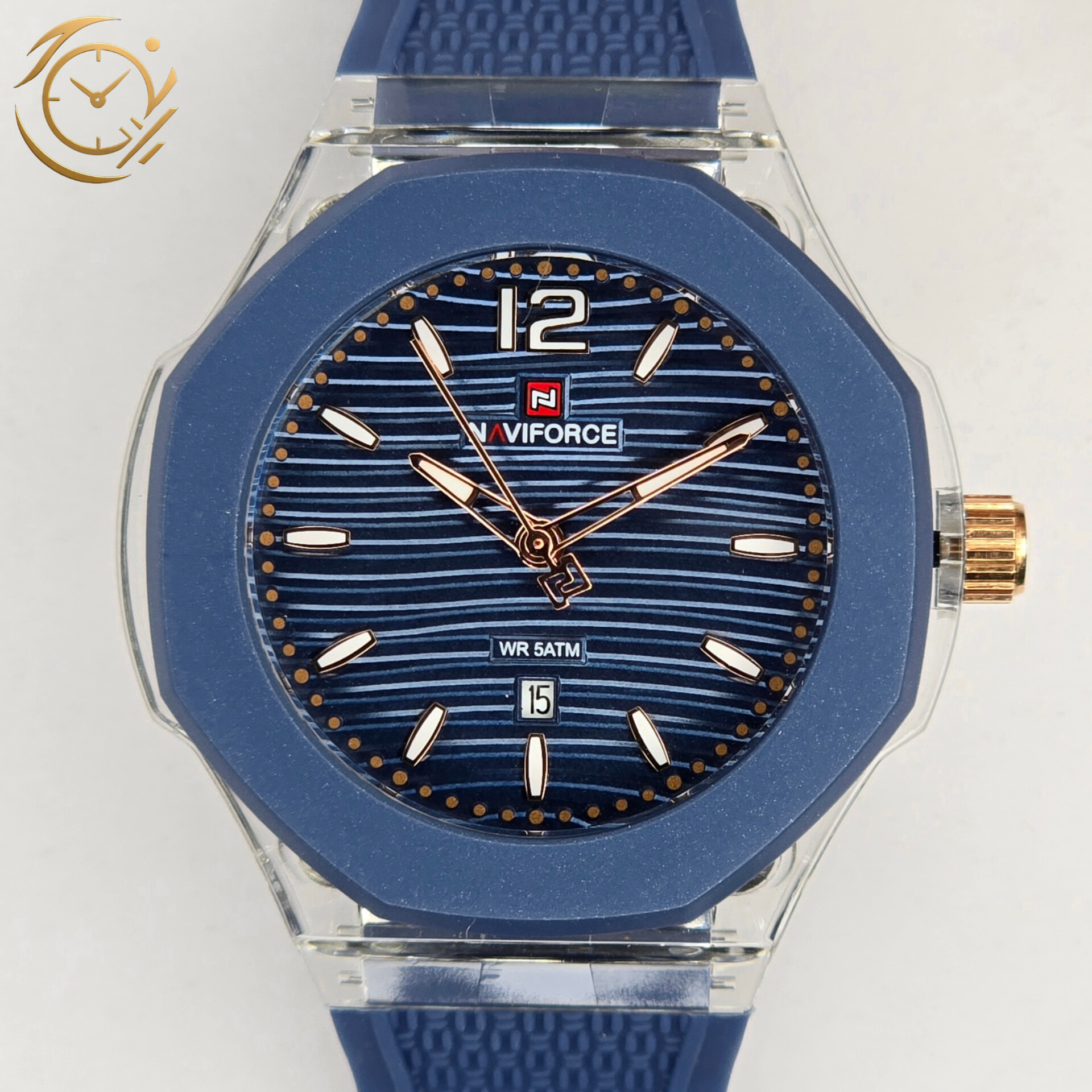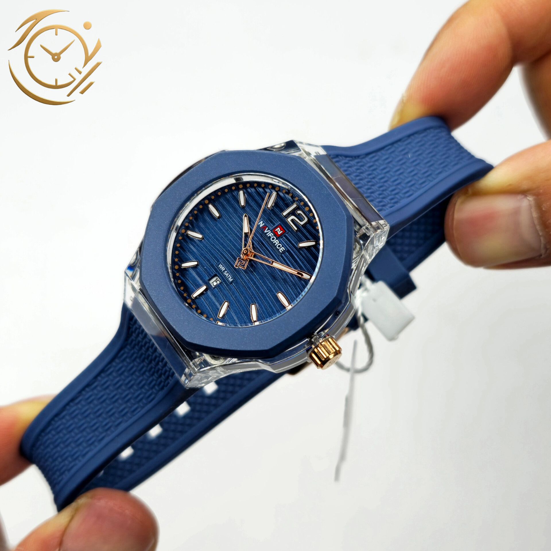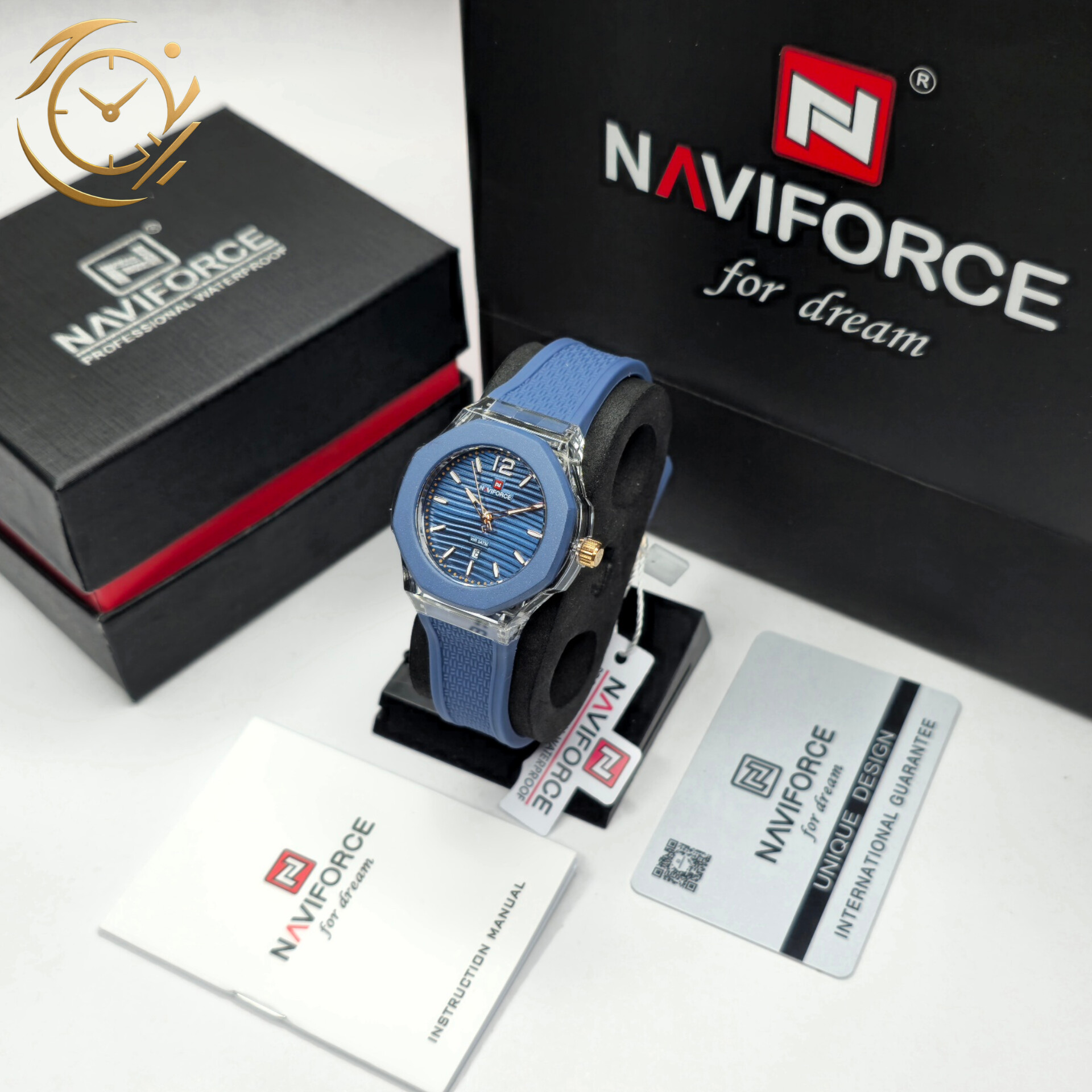 ساعت مچی زنانه Naviforce مدل NF6109 انتخابی جذاب برای خانمهایی است که به طراحی اسپرت، شاداب و رنگی اهمیت میدهند. ترکیب صفحه آبی در هماهنگی با بند سیلیکونی آبی ظاهری پویا، چشمگیر و جوانپسند ایجاد میکند که بهراحتی با استایلهای روزمره و ورزشی ست میشود.این مدل مجهز به موتور کوارتز دقیق Naviforce بوده و عملکردی قابلاعتماد برای استفادهی روزانه ارائه میدهد. بند سیلیکونی نرم و سبک حس راحتی و آزادی حرکت را فراهم میکند و برای فعالیتهای طولانی یا حتی ورزشهای سبک مناسب است. صفحهی آبی با نشانگرهای واضح، خوانایی بالایی در شرایط نوری مختلف دارد.اگر بهدنبال ساعتی زنانه، اسپرت و باکیفیت هستید که استایل روزمرهتان را تکمیل کند، Naviforce NF6109 انتخابی هوشمندانه، خوشظاهر و چشمنواز خواهد بود.