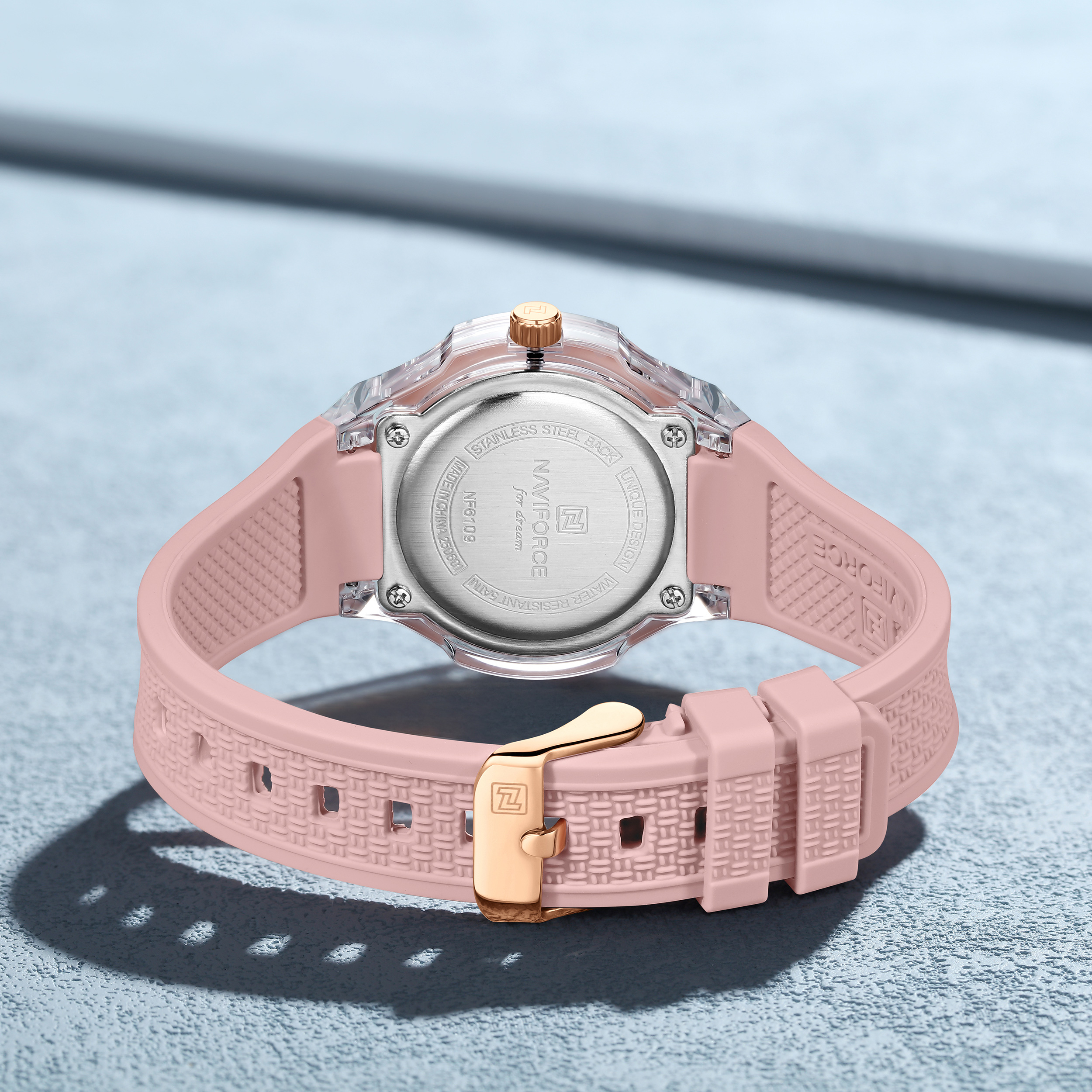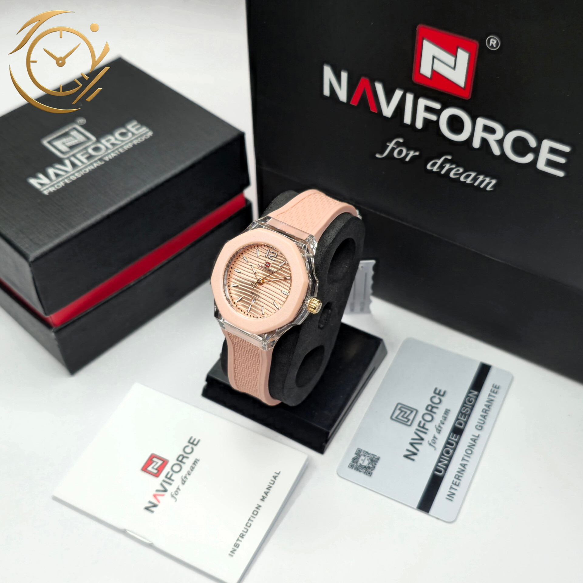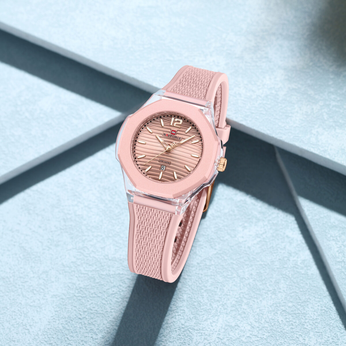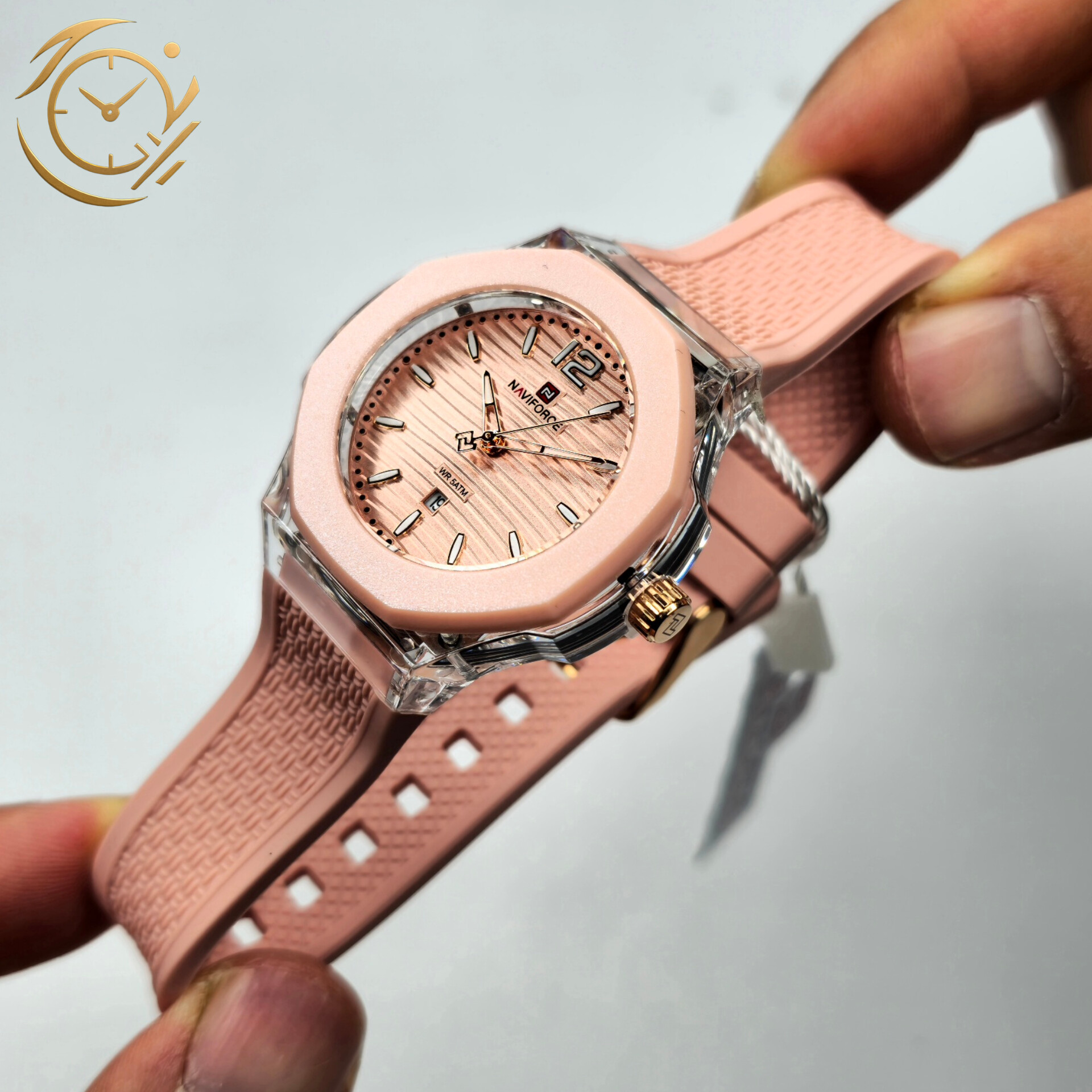 ساعت مچی زنانه Naviforce مدل NF6109 انتخابی جذاب و اسپرت برای خانمهایی است که به طراحی رنگی و شاداب علاقه دارند. صفحه صورتی در هماهنگی با بند سیلیکونی صورتی ظاهری جوانپسند، سرزنده و مناسب استایل روزمره و کژوال ایجاد میکند.این مدل به موتور کوارتز دقیق Naviforce مجهز شده و عملکردی قابلاعتماد برای استفادهی روزانه ارائه میدهد. بند سیلیکونی نرم و سبک، راحتی و آزادی حرکت بالایی فراهم میکند و برای فعالیتهای طولانی یا سبک ورزشی نیز مناسب است. صفحهی صورتی با نشانگرهای واضح، خوانایی خوبی در هر شرایط نوری دارد.اگر بهدنبال ساعتی زنانه، اسپرت و باکیفیت هستید که استایل روزمره شما را تکمیل کند، Naviforce NF6109 انتخابی هوشمندانه و چشمنواز خواهد بود.