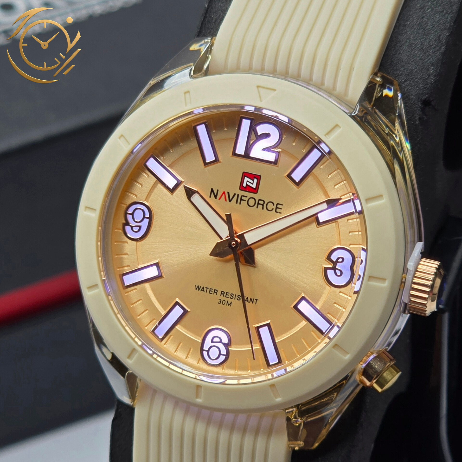 اگر به دنبال ساعتی هستید که هم اسپرت باشد و هم جلوهای شیک و زنانه داشته باشد، ساعت Naviforce NF7103 میتواند انتخابی ایدهآل برای شما باشد. این مدل با طراحی خاص و رنگبندی جذاب، به راحتی استایل روزمره شما را کامل میکند.طراحی و استایلاین ساعت با بند سیلیکونی کرمرنگ و صفحه کرم طراحی شده است؛ ترکیبی که ظاهری لطیف، مدرن و در عین حال پرانرژی به آن میدهد. رنگ کرم به راحتی با انواع استایلها، از لباسهای اسپرت گرفته تا تیپهای کژوال، ست میشود و جذابیت خاصی به ظاهر شما میبخشد.راحتی و دوامبند سیلیکونی نرم و سبک، استفاده طولانیمدت از این ساعت را بسیار راحت میکند. این طراحی مخصوص خانمهایی است که به دنبال ساعتی مقاوم و کاربردی برای فعالیتهای روزانه و ورزشی هستند.انتخابی برای خانمهای مدرنNaviforce NF7103 تنها یک ساعت نیست؛ بلکه اکسسوریای است که استایل شما را کاملتر و شخصیت شما را پرانرژیتر نشان میدهد. طراحی اسپرت و رنگ خاص آن، باعث شده تا این مدل در میان خانمهایی که به دنبال ساعت متفاوت هستند، محبوبیت زیادی پیدا کند.📌 اگر به دنبال یک ساعت زنانه با طراحی اسپرت، شیک و راحت هستید، NF7103 همان انتخابی است که استایل شما را خاص میکند.