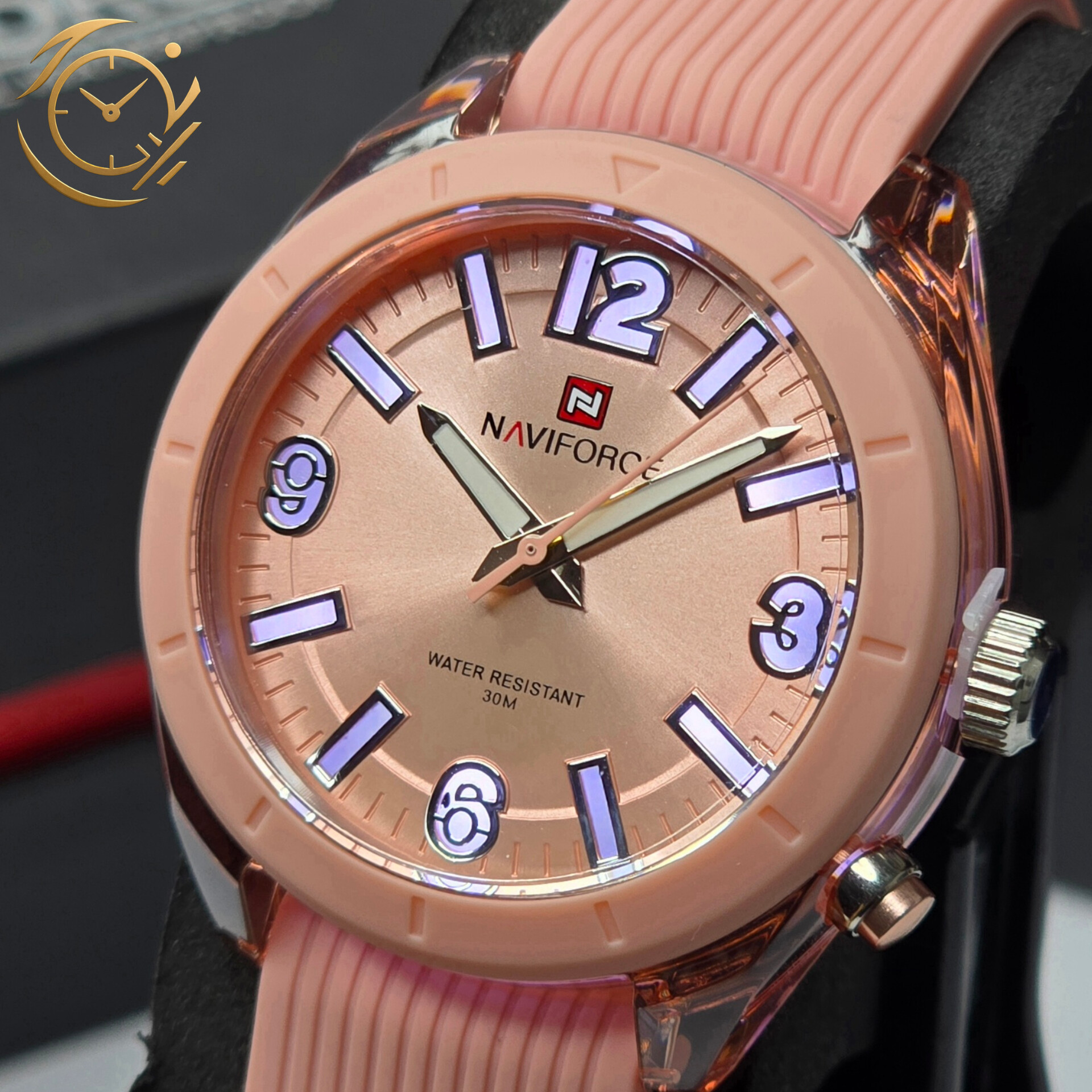 اگر به دنبال ساعتی هستید که هم اسپرت باشد و هم ظاهری زنانه و لطیف داشته باشد، ساعت مچی زنانه Naviforce NF7103 با رنگ صورتی جذاب، انتخابی عالی است.طراحی و استایلاین ساعت با بند سیلیکونی صورتی و صفحه صورتی طراحی شده است؛ ترکیبی دلنشین که به راحتی با استایلهای کژوال و ورزشی ست میشود. رنگ صورتی آن جلوهای دخترانه و پرانرژی به مچ دست شما میدهد و حس شادابی را در استایل روزانهتان تقویت میکند.راحتی و دوامبند سیلیکونی نرم و سبک باعث میشود این ساعت حتی در استفاده طولانیمدت هم راحت باشد. طراحی آن به گونهای است که علاوه بر زیبایی، برای فعالیتهای روزمره و سبک زندگی پرتحرک نیز کاملاً مناسب است.انتخابی برای دختران و بانوان شیکپوشNaviforce NF7103 (صورتی) تنها یک ساعت نیست؛ بلکه اکسسوریای است که استایل زنانه و اسپرت شما را کامل میکند. اگر به دنبال ساعتی متفاوت، جذاب و پرانرژی هستید، این مدل یکی از بهترین گزینههاست.📌 همین امروز میتوانید این ساعت خاص را از Miliwatch تهیه کنید و استایل روزمرهتان را خاصتر کنید.