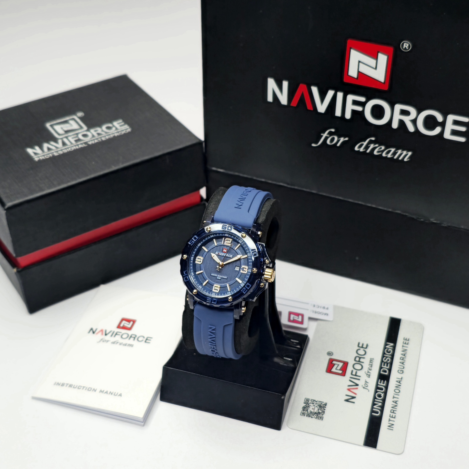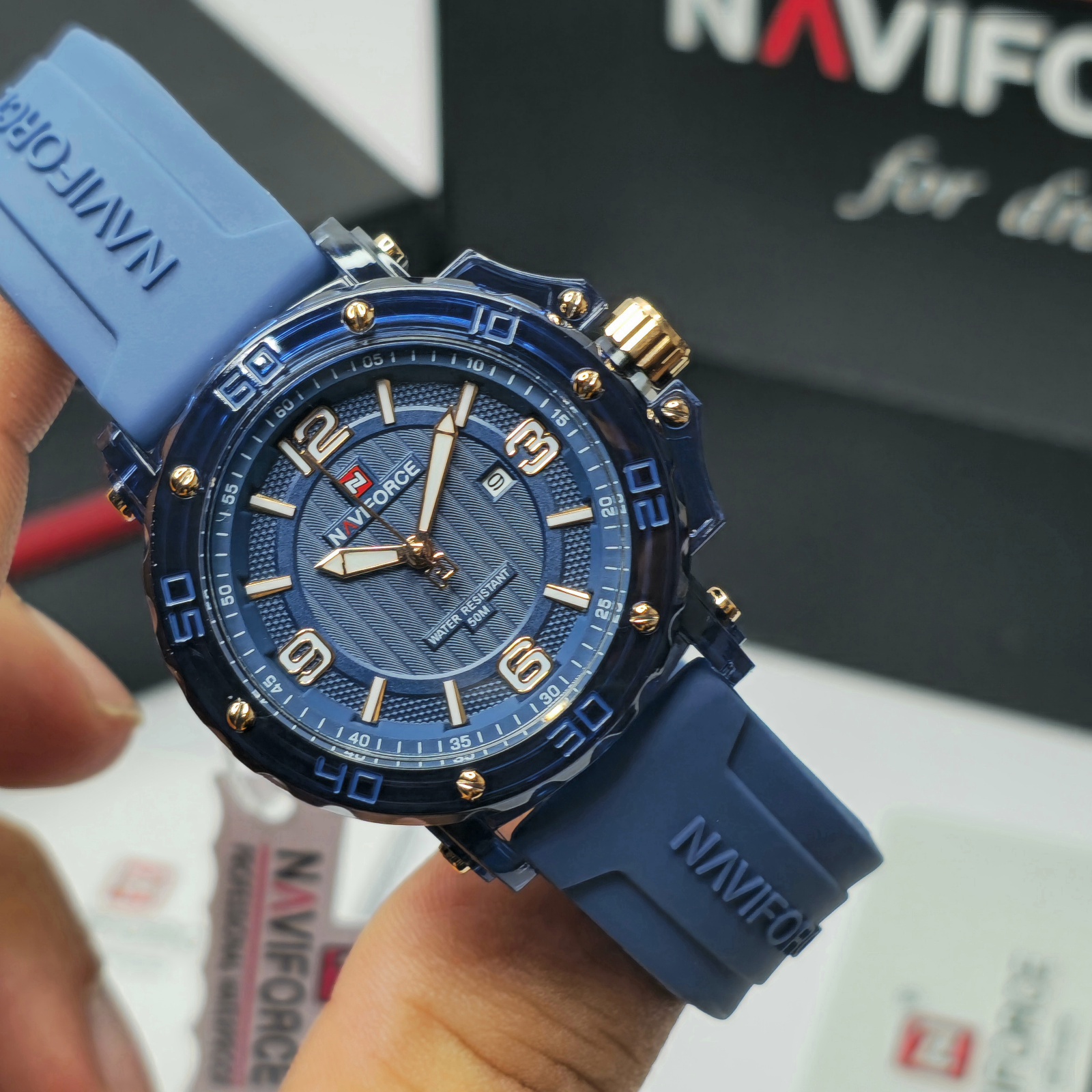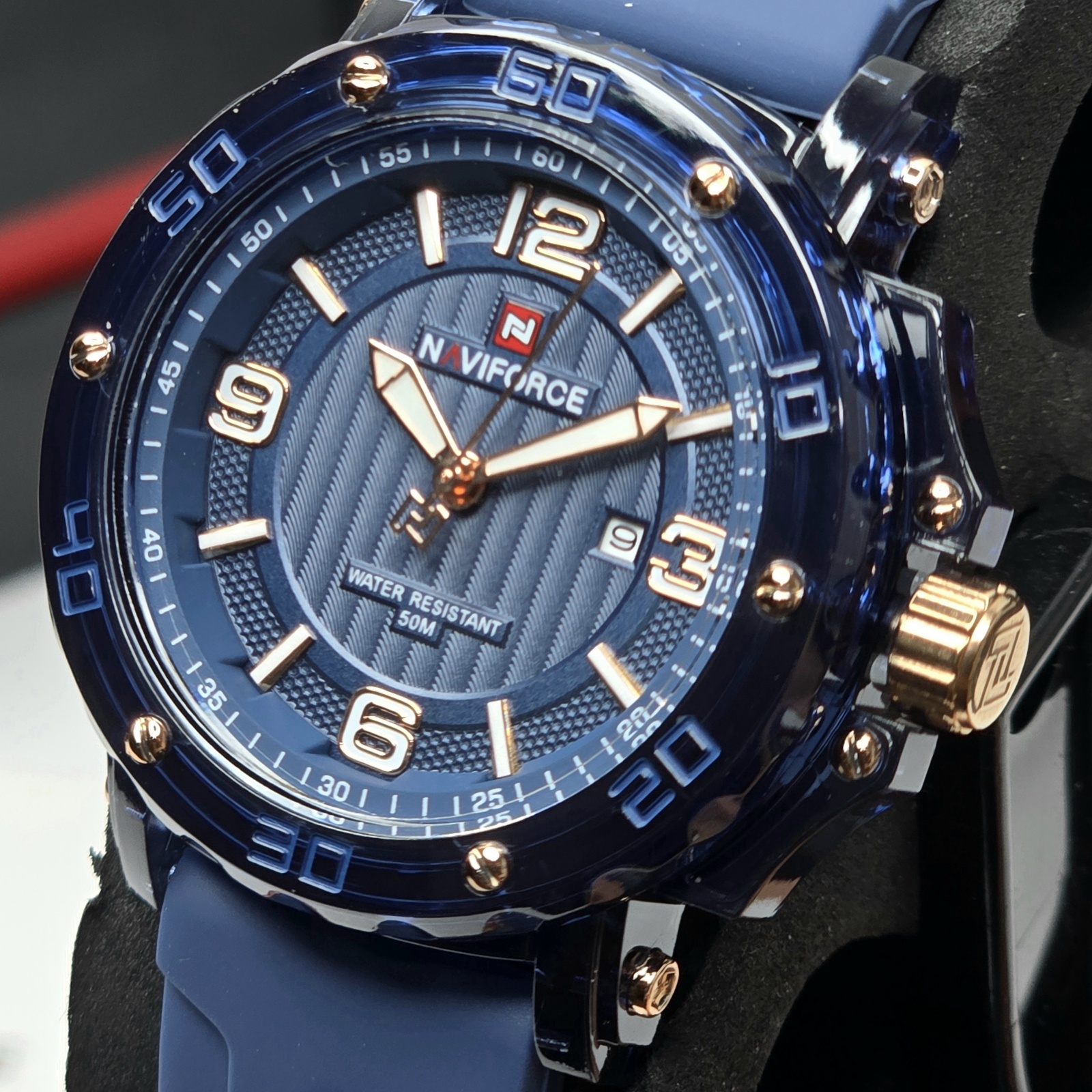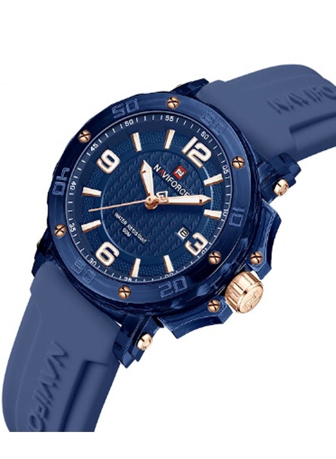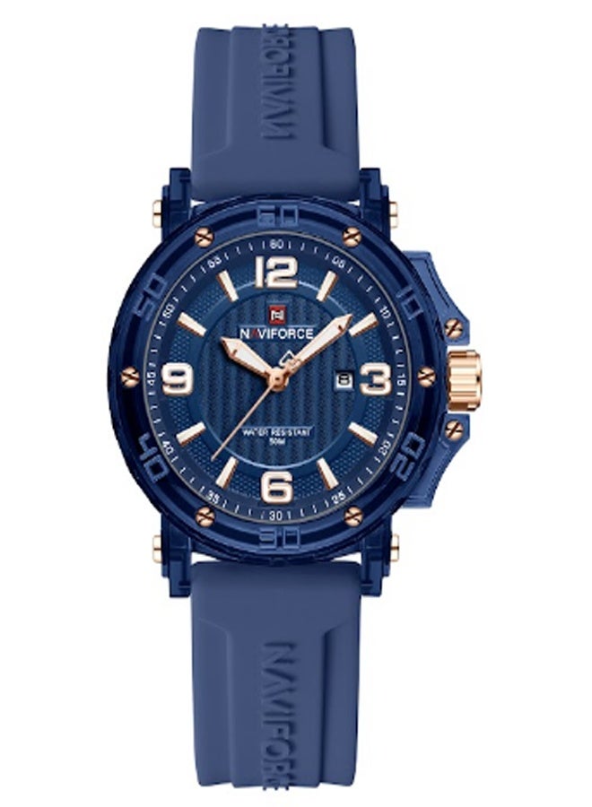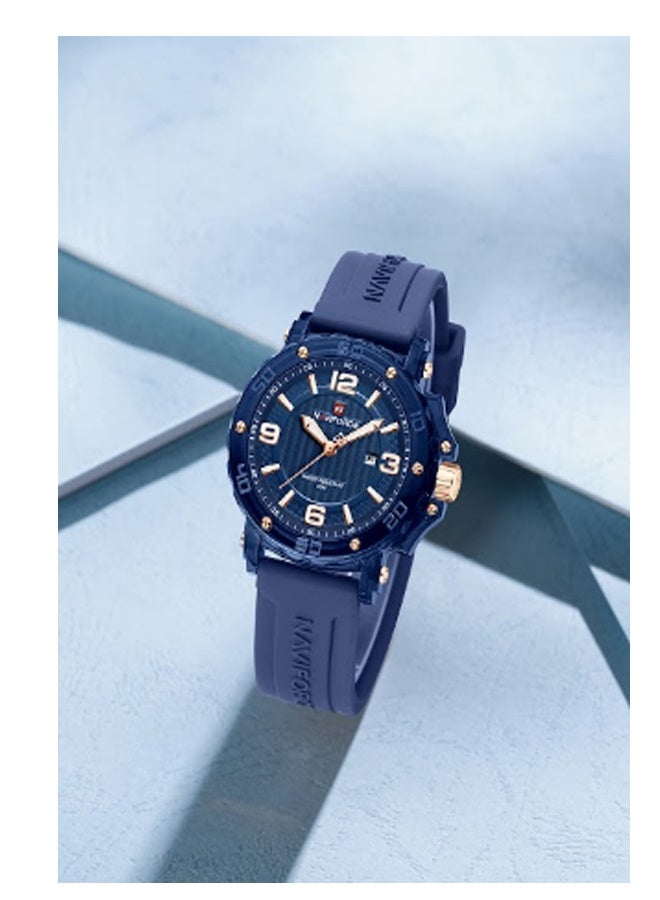 ساعت مچی زنانه Naviforce مدل NF7125 ترکیبی از طراحی اسپرت و ظرافت زنانه است که برای خانمهایی با سلیقه مدرن و فعال ساخته شده است. این مدل با بند سیلیکونی آبیرنگ و صفحه آبی براق جلوهای خاص و جوانپسند دارد و برای استفاده روزمره یا استایلهای اسپرت گزینهای ایدهآل محسوب میشود.قاب مقاوم و وزن سبک این ساعت، راحتی را در تمام طول روز تضمین میکند. موتور کوارتز دقیق زمان را بدون خطا نمایش میدهد و مقاومت در برابر آب تا عمق ۵۰ متر، آن را برای استفاده در شرایط مختلف مناسب کرده است. طراحی آنالوگ با جزئیات ظریف و عقربههای شبتاب، خوانایی و جذابیت ساعت را بیشتر کرده است.اگر به دنبال ساعتی هستید که در عین سادگی، درخشش خاصی روی مچتان داشته باشد، Naviforce NF7125 بهترین انتخاب است. این مدل نمادی از کیفیت، دوام و سبک زندگی پویا در میان ساعتهای زنانه Naviforce است.