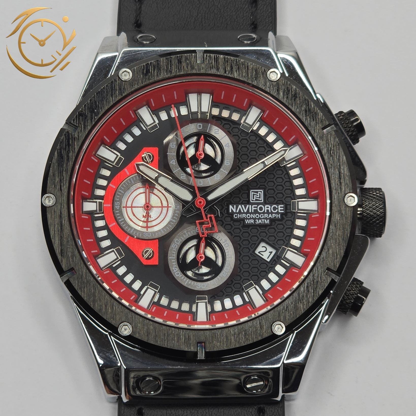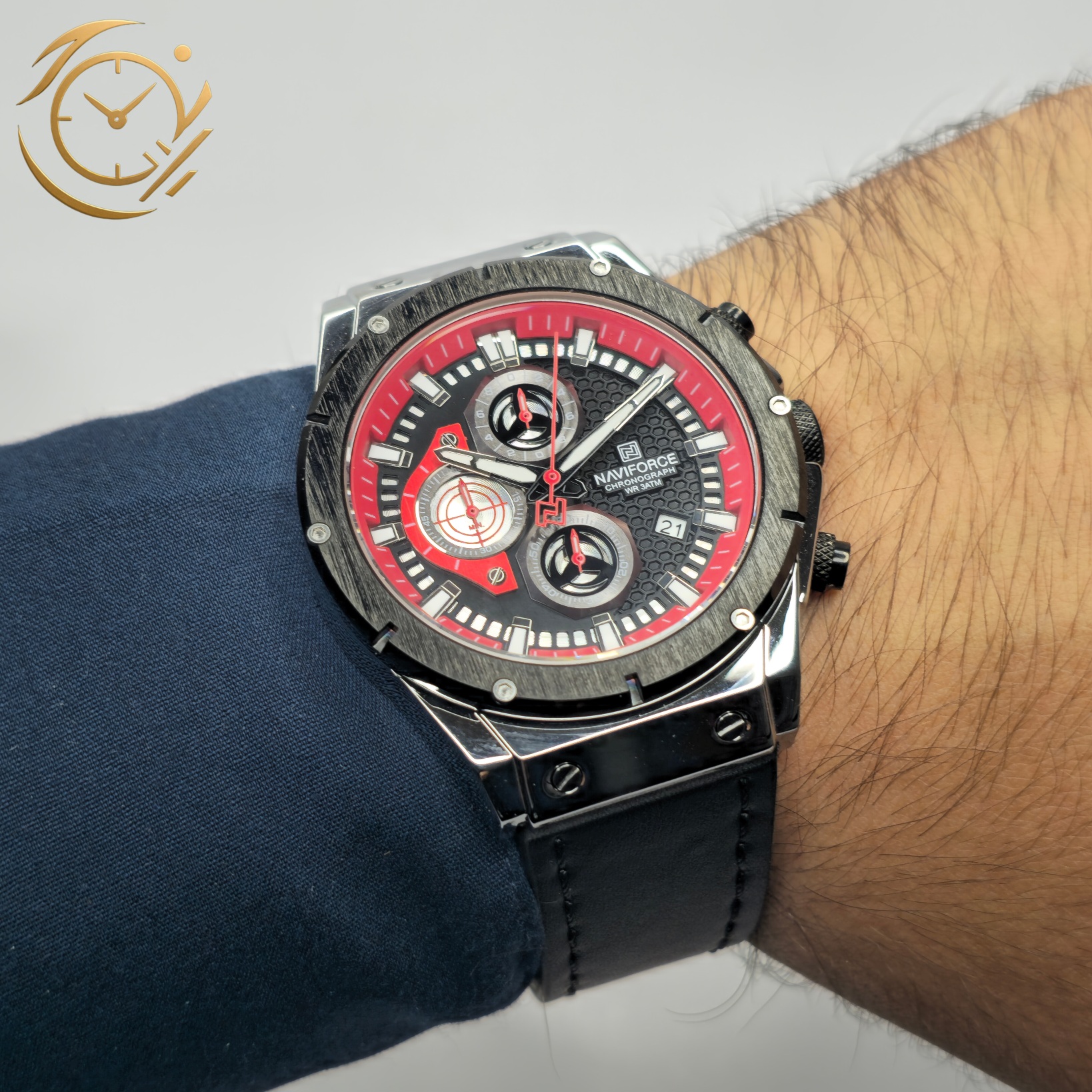 ساعت Naviforce NF8027 با طراحی قدرتمند و رنگبندی خاص، انتخابی عالی برای آقایانی است که به دنبال ترکیبی از استایل اسپرت و جذابیت مدرن هستند.بند چرمی مشکی با کیفیت بالا و دوخت محکم، راحتی و دوام را برای استفاده روزمره فراهم میکند. در کنار آن، صفحه مشکی با جزئیات آبی جلوهای چشمگیر و جوانپسند ایجاد میکند که نگاهها را به خود جذب میکند.وجود کرونوگراف حرفهای علاوه بر زیبایی، کارایی بیشتری به این مدل داده است. عقربهها و نشانگرهای آبیرنگ روی پسزمینه مشکی، جلوهای اسپرت و هیجانانگیز به ساعت بخشیده و خوانایی آن را در هر شرایطی تضمین میکند.قاب مقاوم، موتور دقیق و طراحی منحصربهفرد ناویفورس باعث شده این ساعت علاوه بر ظاهر شیک، عملکردی مطمئن و بادوام داشته باشد. ترکیب بند چرمی مشکی کلاسیک با صفحه اسپرت مشکیـآبی، ساعت NF8027 را به انتخابی عالی برای استایل روزانه، دورهمیهای دوستانه و حتی موقعیتهای نیمهرسمی تبدیل کرده است.