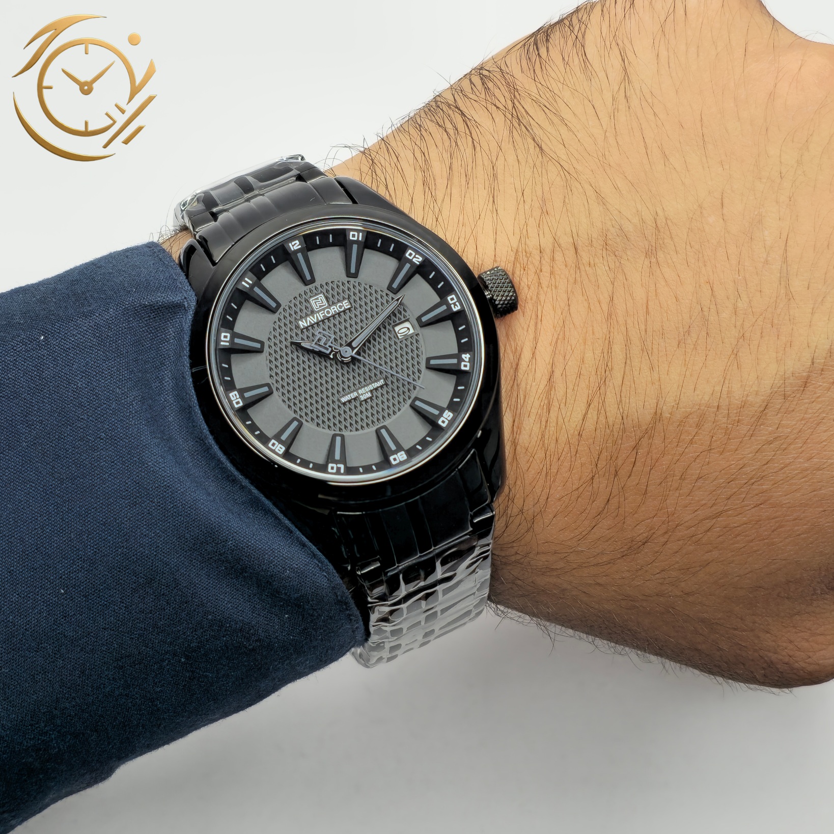ساعت Naviforce NF8032 با طراحی اسپرت و مدرن، انتخابی ایدهآل برای آقایانی است که به دنبال یک ساعت شیک، مقاوم و کاربردی هستند. بند استیل مشکی مات، جلوهای قدرتمند و کلاسیک به استایل شما میبخشد و ترکیب آن با صفحه مشکی خاکستری، ظاهری متعادل و مدرن ایجاد کرده که به راحتی با استایل روزمره یا اسپرت ست میشود.این مدل با نمایش تاریخ دقیق طراحی شده و موتور ناویفورس تضمین میکند که عملکردی مطمئن و دوام بالا در تمام شرایط داشته باشید. سادگی و خوانایی بالای صفحه، استفاده روزمره را آسان میکند و جزئیات خاکستری، جذابیت بصری و عمق بیشتری به ساعت بخشیده است.بدنه و بند فلزی ضدزنگ، ساعت را برای استفاده طولانیمدت و فعالیتهای اسپرت آماده میکند. NF8032 مشکی خاکستری برای کسانی که به دنبال ترکیبی از استایل اسپرت، دوام و ظاهری مدرن هستند، انتخابی عالی و چشمگیر خواهد بود.