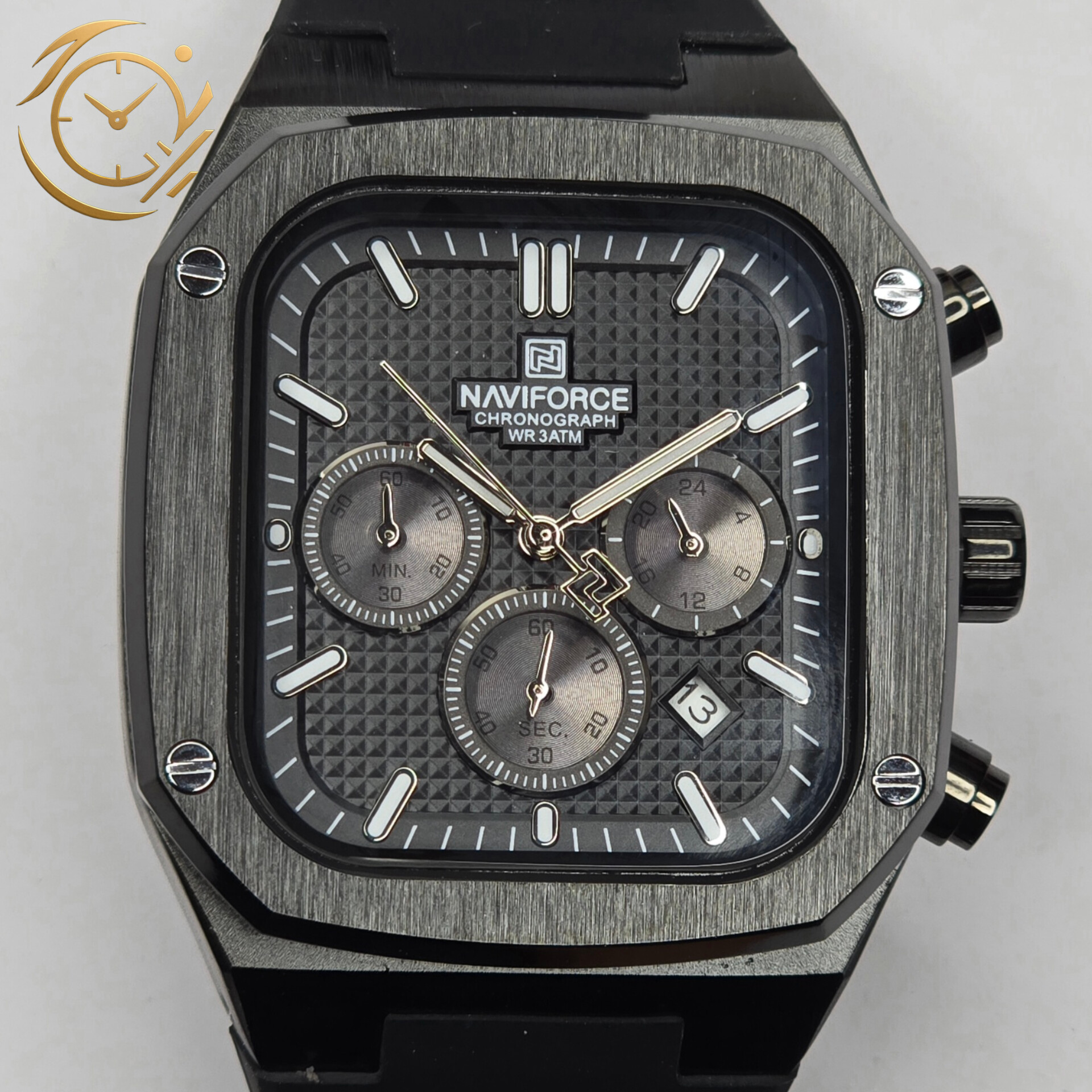 اگر به دنبال ساعتی هستید که هم استایل اسپرت شما را کامل کند و هم برای استفاده روزمره مناسب باشد، مدل NF8037 انتخابی عالی است. این ساعت با طراحی یکدست مشکی و ترکیب قاب فلزی با بند سیلیکونی مقاوم، جلوهای مدرن و قدرتمند روی مچ دستتان ایجاد میکند.ظاهر تمام مشکی این ساعت، جذابیت خاصی دارد و به راحتی با تیپهای ورزشی و کژوال ست میشود. بند سیلیکونی سبک و راحت آن باعث میشود در طول روز بدون هیچ خستگی بتوانید از ساعت استفاده کنید.کرنوگراف روی صفحه و طراحی اسپرت، حس پویایی و انرژی را به استایل شما اضافه میکند. چه در زمان تمرین و چه در موقعیتهای روزانه، این ساعت به شما ظاهری متفاوت و خاص میبخشد.📌 اگر به دنبال یک ساعت اسپرت و شیک هستید که هم کاربردی باشد و هم استایلتان را ارتقا دهد، Naviforce NF8037 دقیقاً همان چیزی است که لازم دارید.