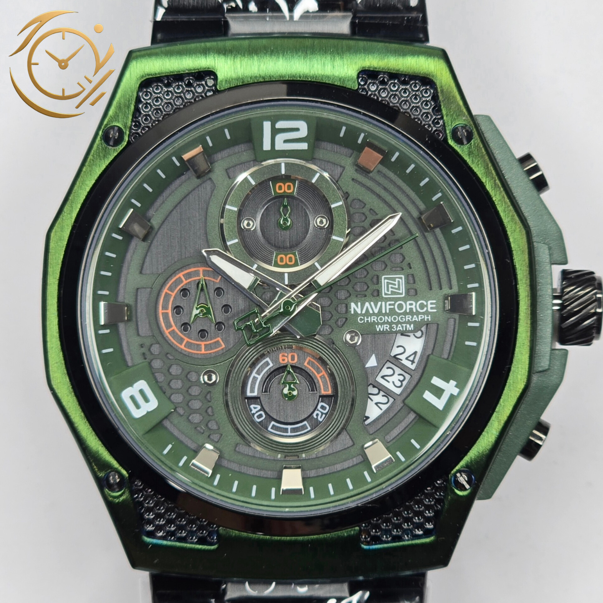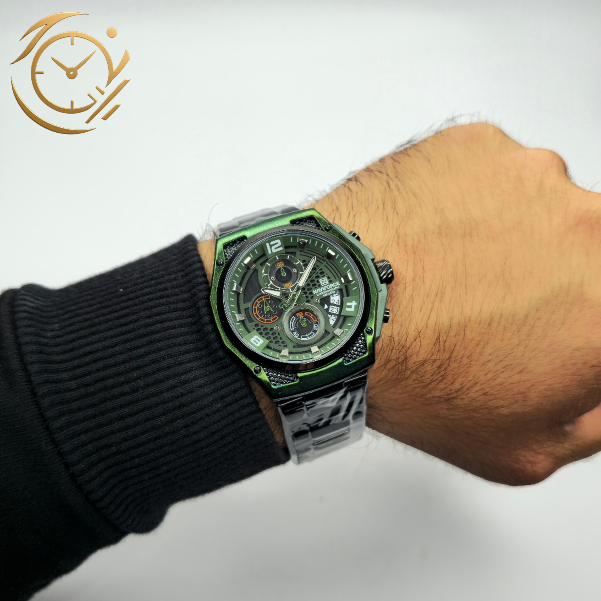 ساعت مچی Naviforce NF8051 با طراحی اسپرت-کلاسیک و امکانات کرنوگراف، ترکیبی از استایل مدرن و کارایی حرفهای را به شما ارائه میدهد. بند استیل مشکی این مدل نه تنها دوام و مقاومت بالایی دارد، بلکه جلوهای لوکس و پرقدرت به ساعت بخشیده و آن را برای استفاده روزمره و موقعیتهای نیمهرسمی مناسب میکند.صفحه مشکی-سبز چندلایه با جزئیات دقیق کرنوگراف، جلوهای پویا و مدرن به ساعت داده و خوانایی بالایی را در هر شرایط نوری فراهم میکند. ترکیب رنگ مشکی-سبز و طراحی استیل مشکی، تضادی جذاب ایجاد کرده که این ساعت را از دیگر مدلها متمایز میکند.موتور دقیق ناویفورس تضمین میکند که NF8051 علاوه بر ظاهر جذاب، عملکردی پایدار و قابل اعتماد داشته باشد. این ساعت برای آقایانی طراحی شده که به دنبال یک اکسسوری اسپرت، کرنوگراف و متمایز هستند.ساعت NF8051 بند استیل مشکی صفحه مشکی-سبز بهراحتی با استایلهای اسپرت، روزمره و نیمهرسمی ست میشود و میتواند تکمیلکنندهای قدرتمند برای استایل شما باشد. اگر به دنبال خرید یک ساعت مردانه با طراحی مدرن، کیفیت بالا و رنگبندی خاص هستید، این مدل انتخابی بینقص است.
