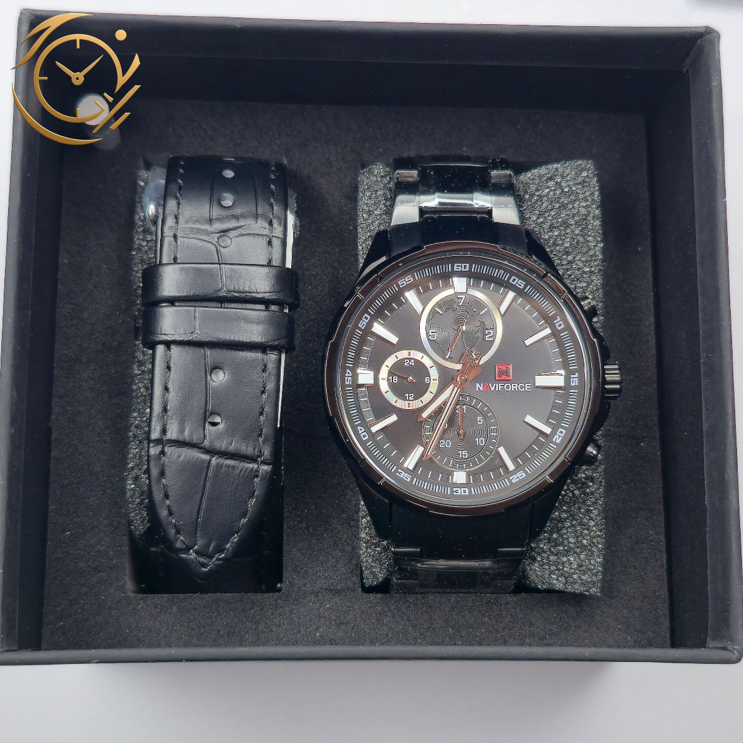 ساعت Naviforce NF9089 با طراحی تمام مشکی، انتخابی جسورانه و مدرن برای آقایانی است که به دنبال یک اکسسوری متفاوت و خاص هستند. بند استیل مشکی مات در کنار صفحه مشکی اسپرت و پرجزئیات، ظاهری قدرتمند و چشمگیر ایجاد کرده که به راحتی استایل شما را کامل میکند.این ساعت مجهز به سه موتور دقیق است که علاوه بر نمایش زمان، عملکرد حرفهای و کاربردی در اختیار شما قرار میدهد. سابدایلهای طراحیشده روی صفحه، جذابیت و پویایی بیشتری به ظاهر ساعت بخشیده و حس یک ساعت مدرن و اسپرت واقعی را منتقل میکند.بدنه و بند فلزی ضدزنگ، دوام و مقاومت بالایی دارند و باعث میشوند این ساعت همراهی مطمئن برای استفاده روزمره و حتی شرایط سخت باشد. ترکیب تمام مشکی آن به گونهای است که میتواند هم در استایلهای کژوال و اسپرت و هم در پوششهای نیمهرسمی، جلوهای شیک و متفاوت به شما ببخشد.اگر به دنبال یک ساعت اسپرت، مستحکم و در عین حال شیک هستید، مدل NF9089 مشکی میتواند بهترین انتخاب شما باشد.