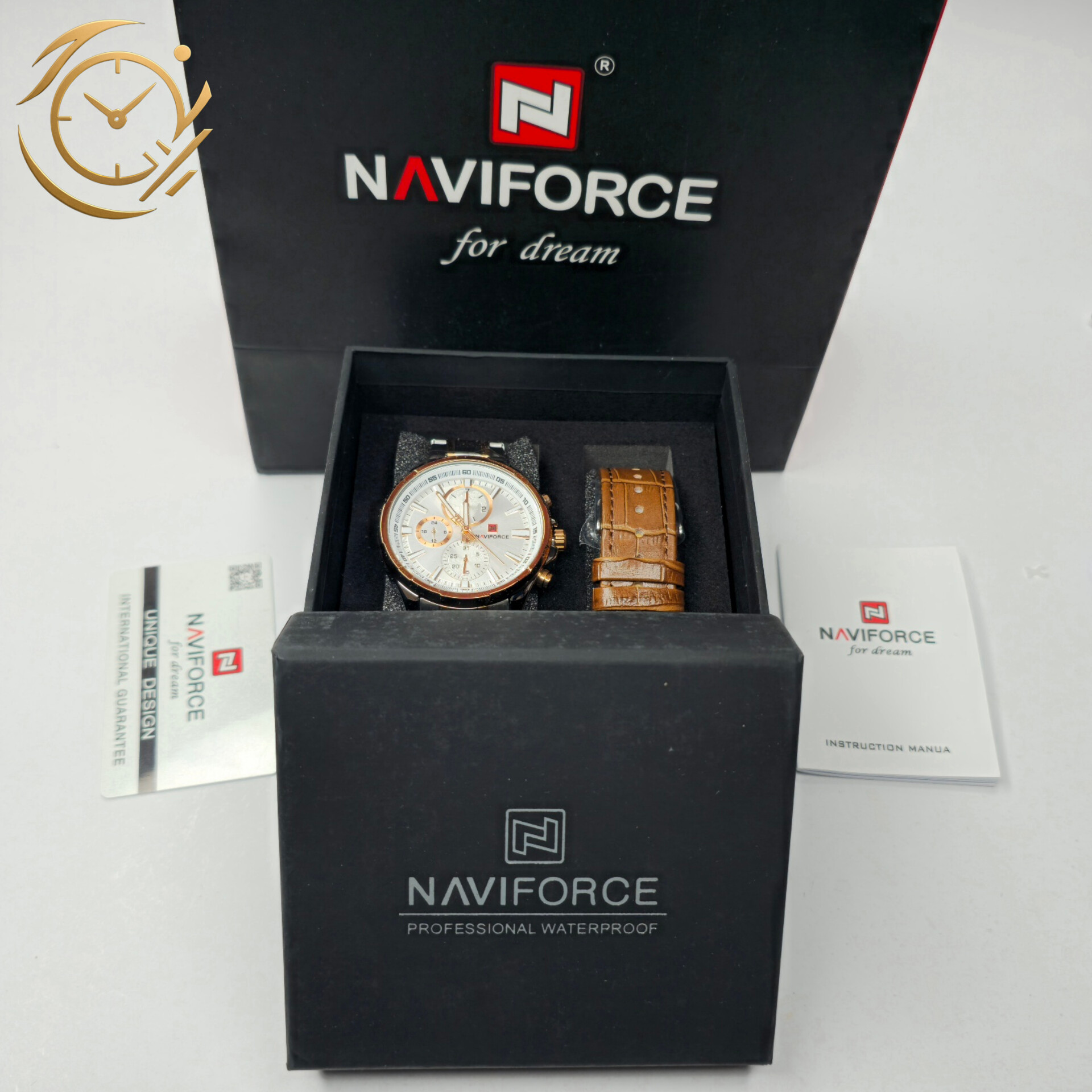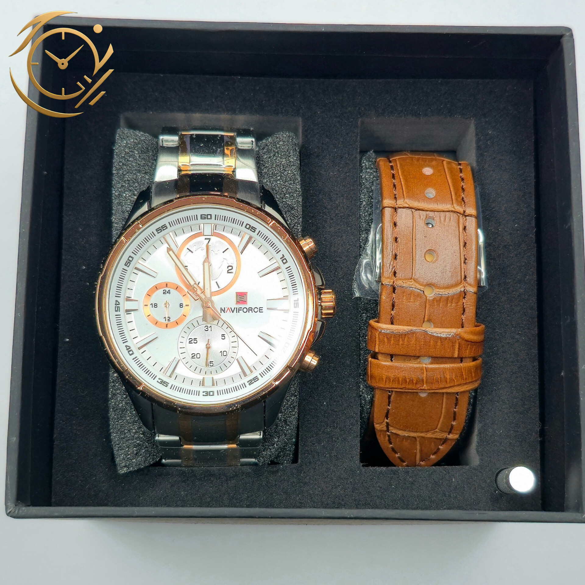 ساعت مچی Naviforce NF9089 با طراحی اسپرت و فول تایم، انتخابی شیک و کاربردی برای آقایان خوشاستایل است. بند فلزی نقرهای-طلایی این مدل ترکیبی از دوام بالا و جلوه لوکس ارائه میدهد و به راحتی با انواع استایلهای اسپرت و نیمهرسمی ست میشود.صفحه سفید با طراحی مینیمال و جزئیات دقیق، جلوهای روشن و مدرن به ساعت داده و خوانایی بسیار خوبی در هر شرایط نوری فراهم میکند. این مدل فول تایم است و امکانات کاملی برای مدیریت زمان به شما ارائه میدهد، در کنار موتور قدرتمند ناویفورس که عملکردی دقیق و پایدار را تضمین میکند.ساعت NF9089 ناویفورس مناسب آقایانی است که به دنبال یک اکسسوری اسپرت-لوکس و کاربردی هستند. این مدل به راحتی با استایلهای روزمره، اسپرت و نیمهرسمی ست میشود و میتواند تکمیلکننده ظاهر شما باشد.اگر به دنبال خرید یک ساعت مچی مردانه با طراحی جذاب، کیفیت بالا و امکانات فول تایم هستید، ساعت Naviforce NF9089 بند فلزی نقرهای-طلایی صفحه سفید انتخابی ایدهآل برای شما خواهد بود.