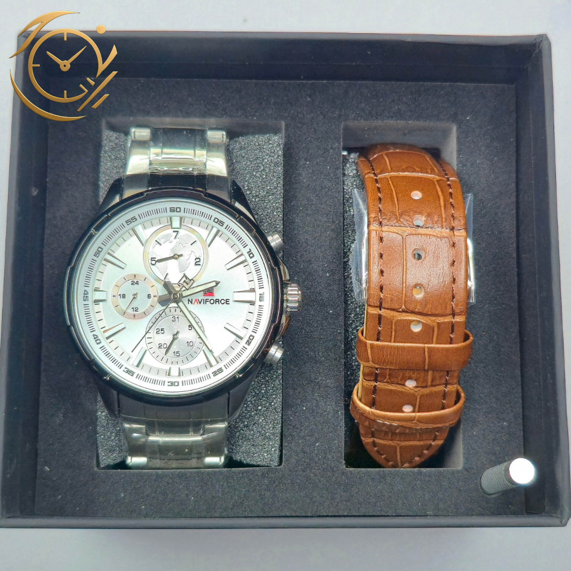 ساعت مچی Naviforce NF9089 با طراحی اسپرت و فول تایم، انتخابی شیک و کاربردی برای آقایان خوشاستایل است. بند فلزی نقرهای این مدل ترکیبی از دوام بالا و ظاهری مدرن و جذاب ارائه میدهد و به راحتی با انواع استایلهای اسپرت و نیمهرسمی ست میشود.صفحه سفید با طراحی مینیمال و جزئیات دقیق، جلوهای روشن و مدرن به ساعت داده و خوانایی بسیار خوبی در هر شرایط نوری فراهم میکند. این مدل فول تایم است و امکانات کاملی برای مدیریت زمان به شما ارائه میدهد، در کنار موتور قدرتمند ناویفورس که عملکردی دقیق و پایدار را تضمین میکند.ساعت NF9089 ناویفورس مناسب آقایانی است که به دنبال یک اکسسوری اسپرت-کلاسیک و کاربردی هستند. این مدل به راحتی با استایلهای روزمره، اسپرت و نیمهرسمی ست میشود و میتواند تکمیلکننده ظاهر شما باشد.اگر به دنبال خرید یک ساعت مچی مردانه با طراحی جذاب، کیفیت بالا و امکانات فول تایم هستید، ساعت Naviforce NF9089 بند فلزی نقرهای صفحه سفید انتخابی ایدهآل برای شما خواهد بود.