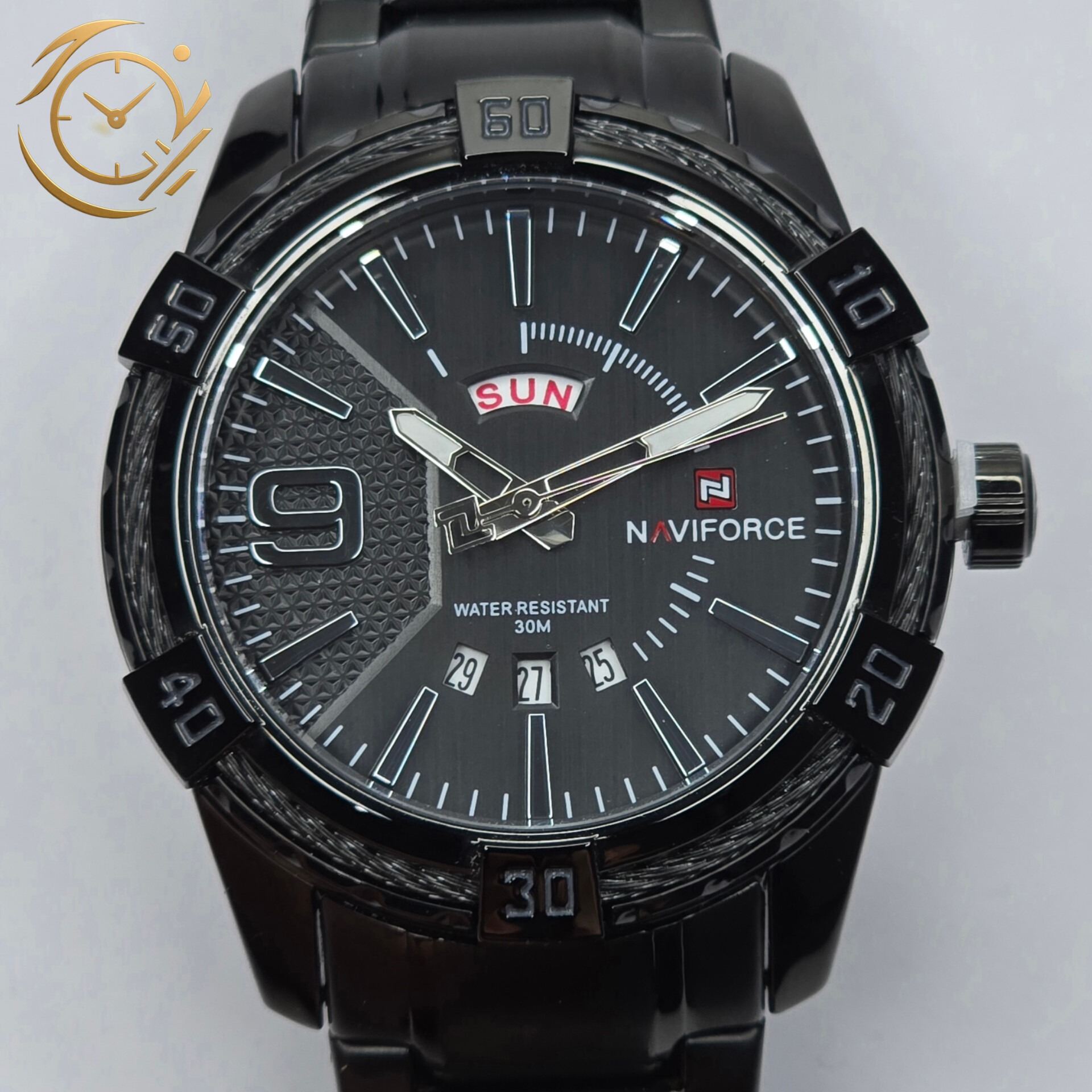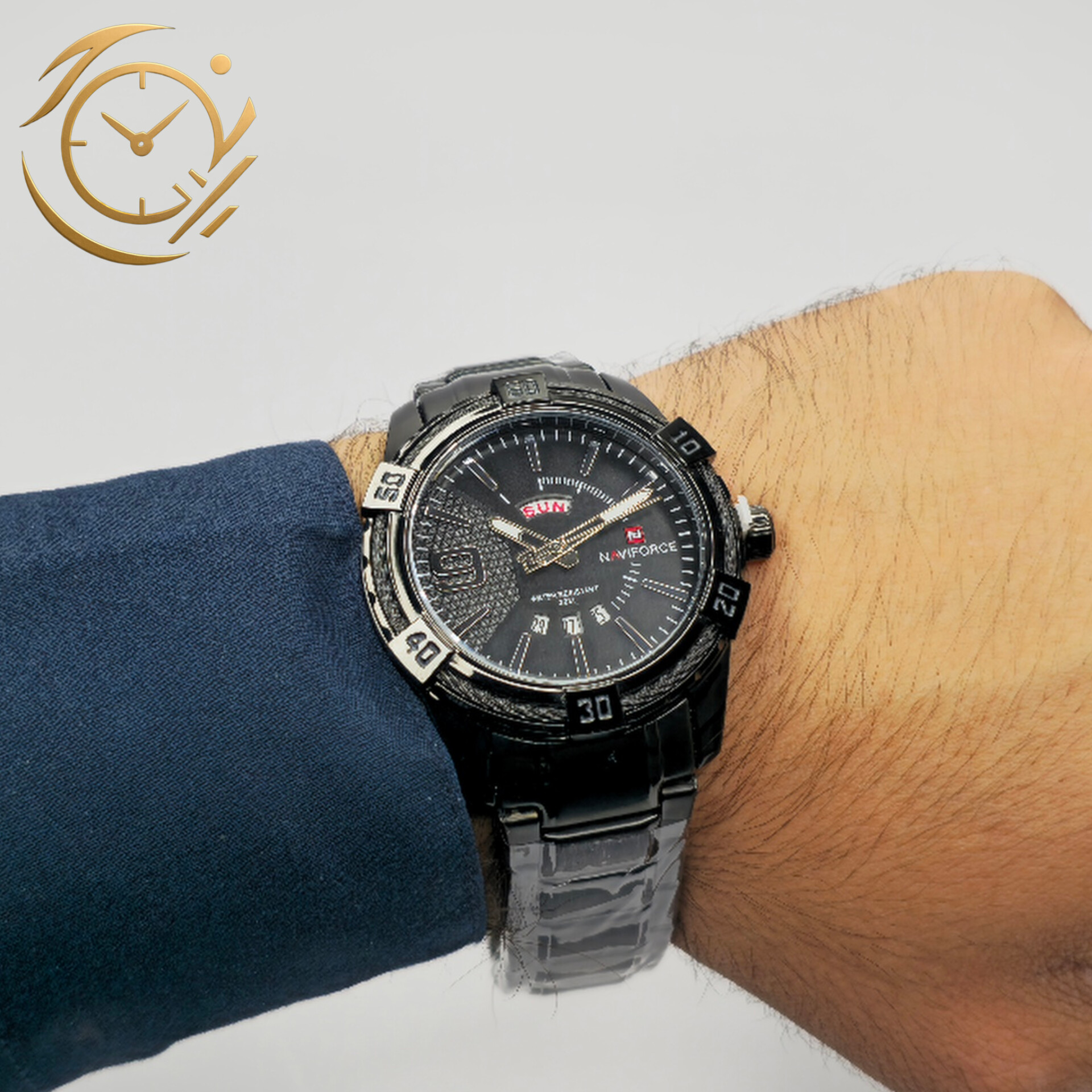 ساعت مچی مردانه Naviforce مدل NF8044 | بند فلزی مشکی، صفحه مشکی | ترکیب اسپرت و کلاسیک