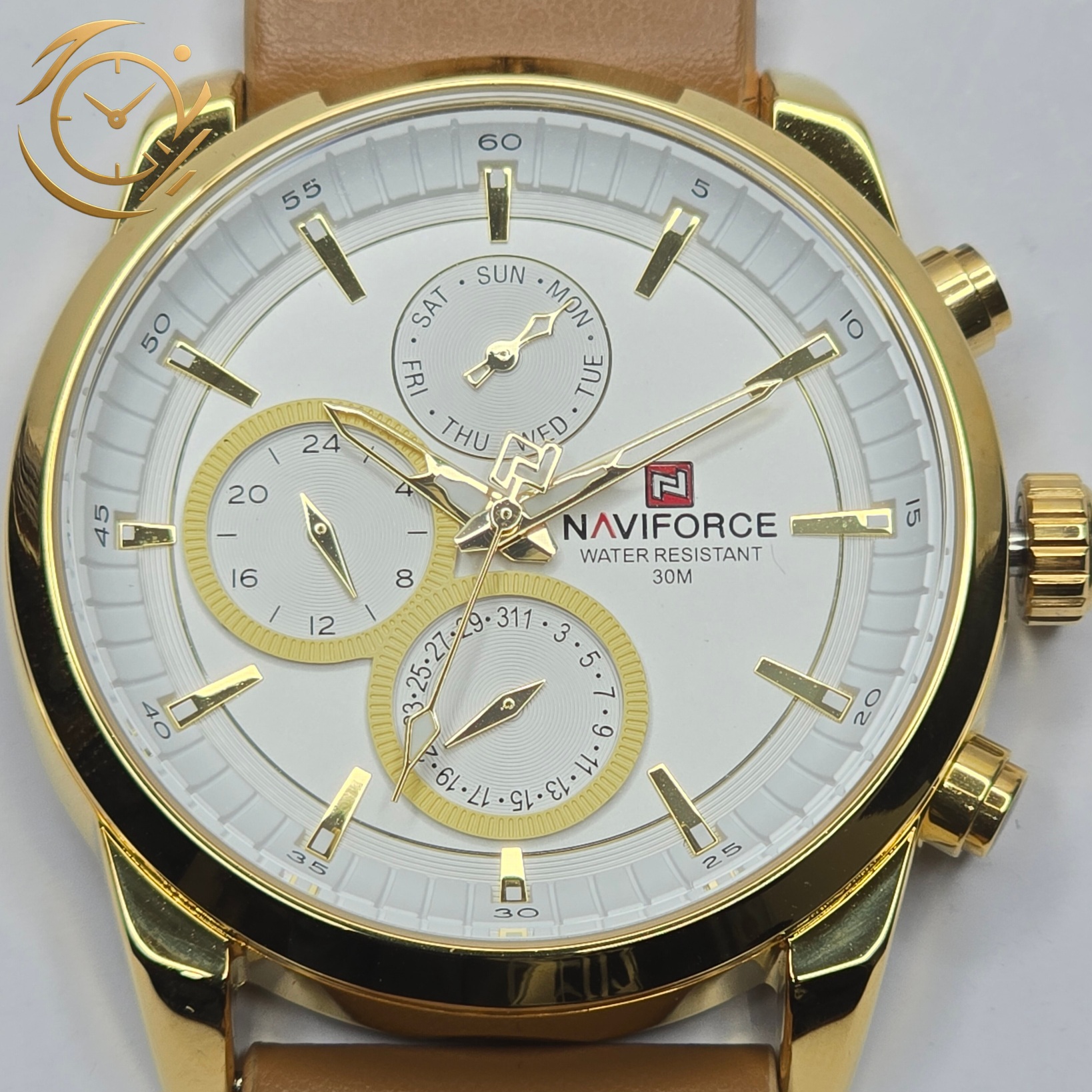 ساعت مچی مردانه Naviforce مدل NF9248 | بند چرمی قهوه ای تیره، صفحه مشکی | اسپرت و مقاوم