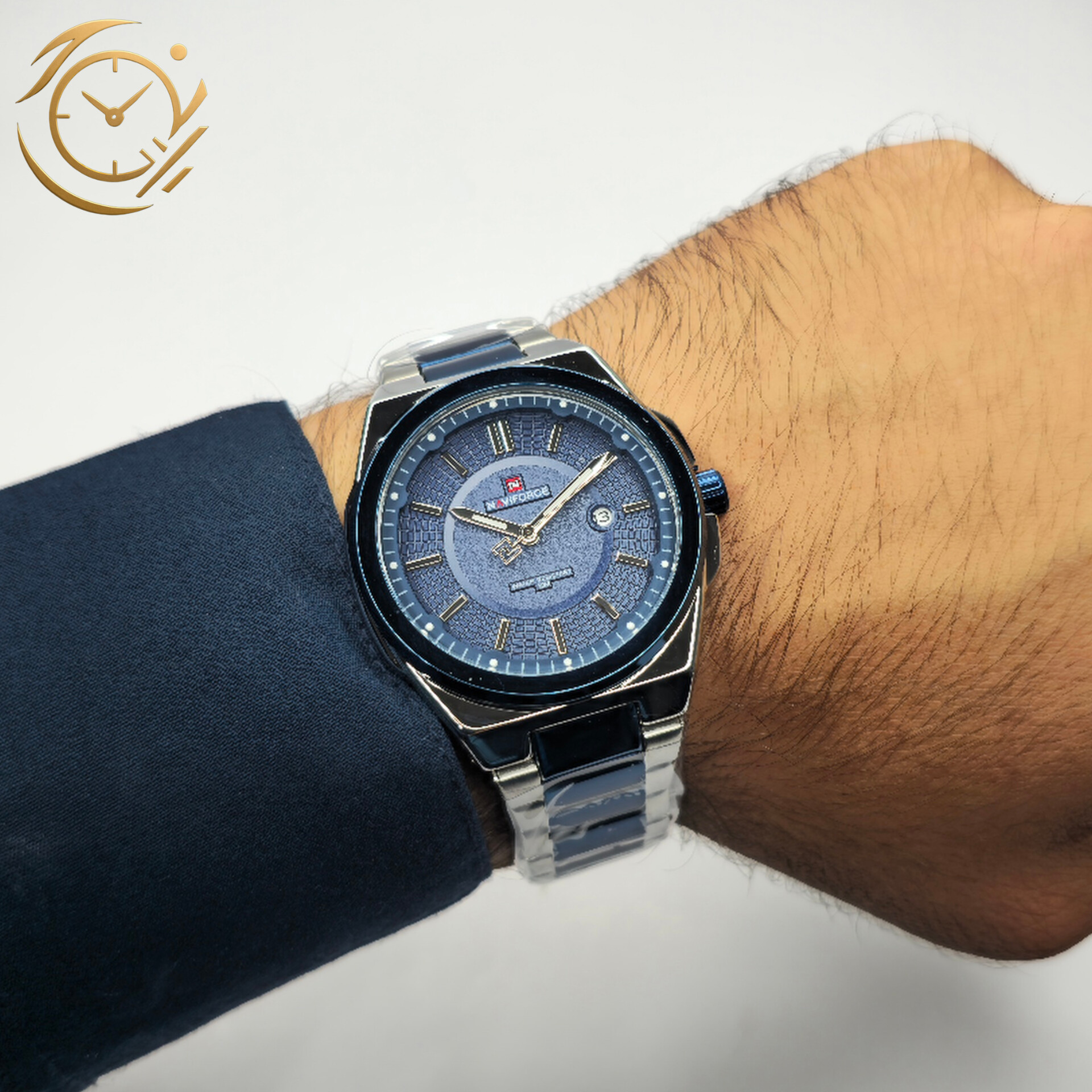 ساعت مچی Naviforce NF9212 انتخابی ایدهآل برای آقایانی است که به دنبال ترکیب کلاسیک، رسمی و کیفیت بالا هستند. بند استیل ضد زنگ این مدل، جلوهای لوکس و حرفهای ایجاد کرده و در عین حال دوام و مقاومت بالایی برای استفاده روزمره و رسمی دارد.صفحه آبی کلاسیک با طراحی ساده و شیک، ظاهری متمایز و چشمنواز ایجاد میکند که به راحتی با کت و شلوار، استایل رسمی یا حتی پوشش نیمهرسمی ست میشود. تضاد رنگ آبی صفحه و نقرهای بند، جلوهای مدرن و جذاب به ساعت بخشیده است.موتور باکیفیت و ساختار مقاوم ناویفورس، تضمین میکند که این ساعت عملکرد دقیق و طولانیمدت داشته باشد. طراحی مینیمال صفحه و قاب استیل، حس وقار و اعتماد به نفس را به شما منتقل میکند و این ساعت را به گزینهای مناسب برای جلسات کاری، قرارهای مهم و استفاده روزمره رسمی تبدیل کرده است.اگر به دنبال ساعتی هستید که شیک، کلاسیک و با دوام بالا باشد، ساعت Naviforce NF9212 بند استیل ضد زنگ صفحه آبی بهترین انتخاب برای یک استایل رسمی و جذاب خواهد بود.