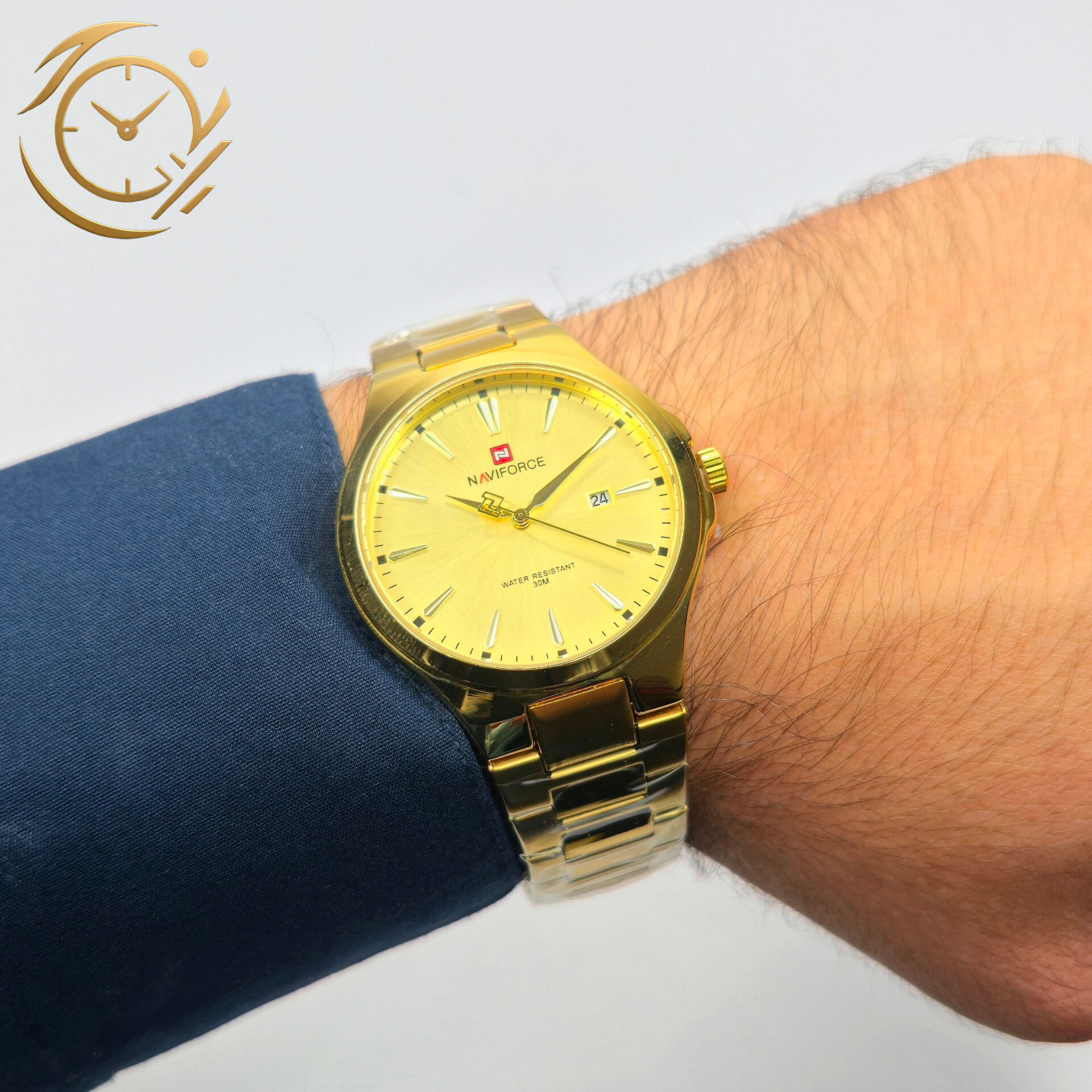 ساعت Naviforce NF9214 یکی از خاصترین و لوکسترین طراحیهای برند ناویفورس است که برای آقایان شیکپوش و مشکلپسند ساخته شده است.ترکیب بند فلزی طلایی براق با صفحه طلایی هماهنگ، جلوهای یکپارچه، درخشان و فاخر به این ساعت بخشیده و آن را به گزینهای عالی برای استایلهای رسمی و مجلسی تبدیل کرده است. این طراحی جذاب باعث میشود ساعت روی مچ دست همچون یک اکسسوری لوکس و چشمگیر بدرخشد.موتور دقیق و قاب مقاوم، تضمینکننده عملکرد بینقص و ماندگاری طولانی این ساعت هستند. به علاوه، کیفیت بالای استیل ضدزنگ استفادهشده در بند و قاب، خیال شما را از بابت دوام و ثبات رنگ راحت میکند.اگر به دنبال ساعتی هستید که هم کلاسیک و رسمی باشد و هم استایل شما را لوکستر و خاصتر نشان دهد، ساعت مچی مردانه Naviforce NF9214 طلایی انتخابی بیرقیب برای شما خواهد بود.