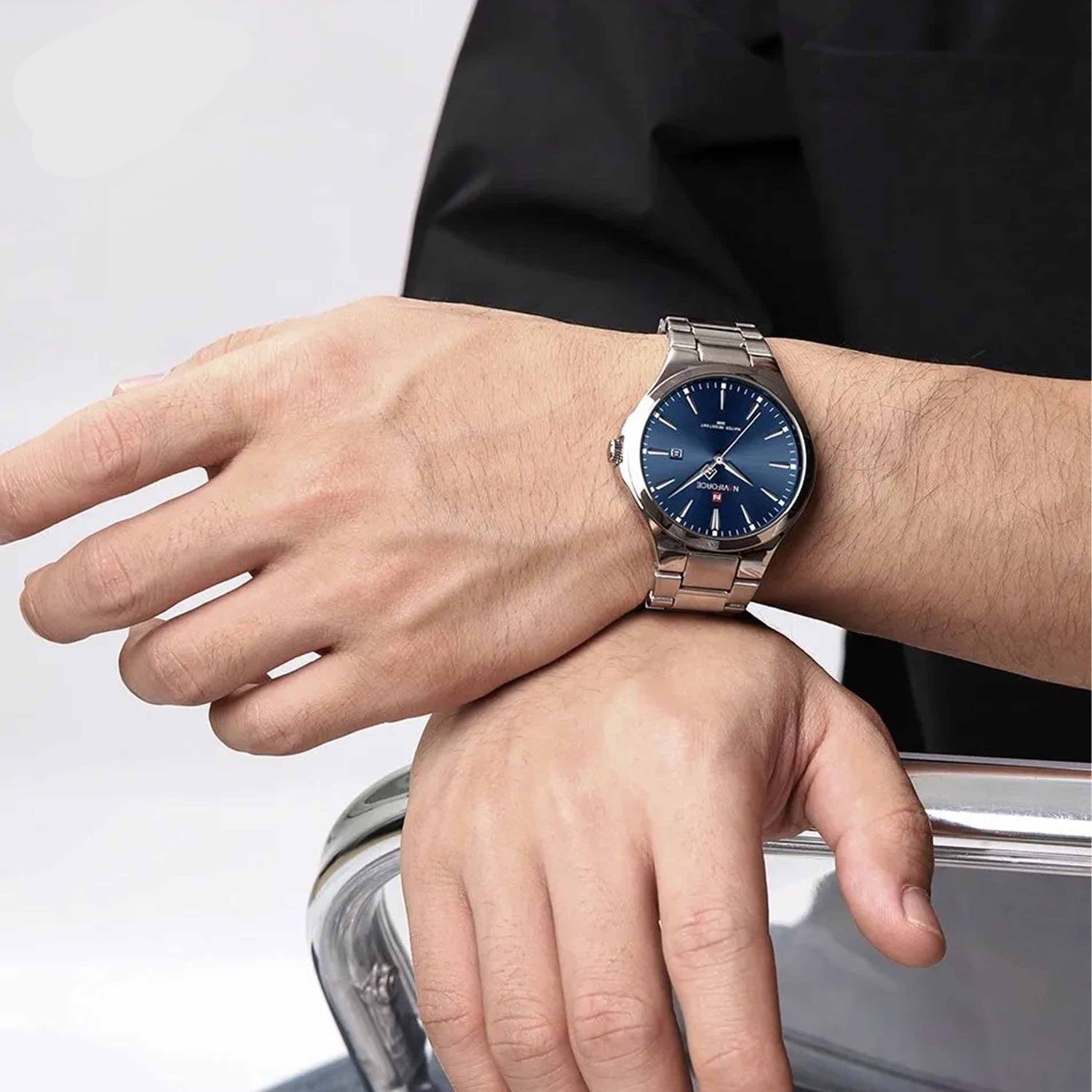 ساعت Naviforce NF9214 در طراحی نقرهای و آبی، ترکیبی از سادگی، کلاسیک بودن و وقار مردانه را ارائه میدهد.بند فلزی استیل ضدزنگ نقرهای با صفحه آبی مینیمال و خوانا، جلوهای شیک و رسمی ایجاد میکند که برای جلسات کاری، مراسم رسمی و حتی استفاده روزمره، کاملاً مناسب است.این ساعت با طراحی یکدست و کلاسیک، به راحتی با کتوشلوار و استایلهای رسمی ست میشود و ظاهری خاص و حرفهای به شما میبخشد. موتور دقیق و قاب مقاوم ناویفورس نیز تضمین میکند که علاوه بر زیبایی، عملکردی دقیق و ماندگار داشته باشد.اگر به دنبال ساعتی هستید که شخصیت آرام، رسمی و متین شما را بازتاب دهد، ساعت مچی مردانه Naviforce NF9214 نقرهای با صفحه آبی انتخابی هوشمندانه و بینقص خواهد بود.