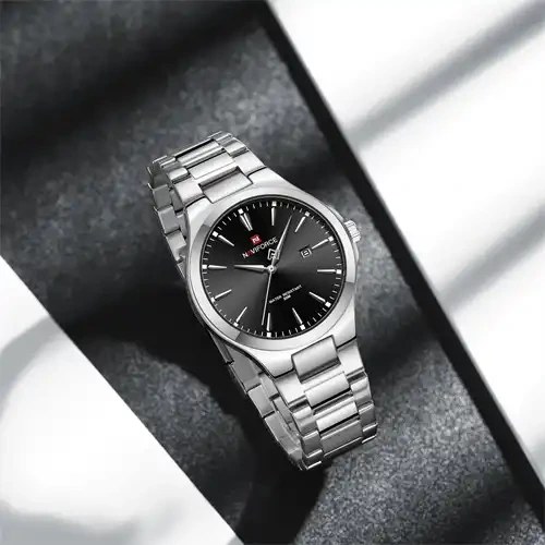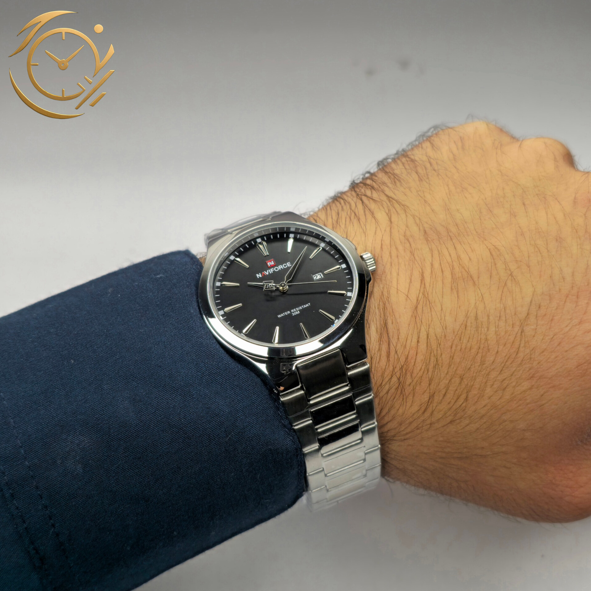 ساعت Naviforce NF9214 در طراحی نقرهای و مشکی، ترکیبی از سادگی، کلاسیک بودن و وقار مردانه را ارائه میدهد.بند فلزی استیل ضدزنگ نقرهای با صفحه مشکی مینیمال و خوانا، جلوهای شیک و رسمی ایجاد میکند که برای جلسات کاری، مراسم رسمی و حتی استفاده روزمره، کاملاً مناسب است.این ساعت با طراحی یکدست و کلاسیک، به راحتی با کتوشلوار و استایلهای رسمی ست میشود و ظاهری خاص و حرفهای به شما میبخشد. موتور دقیق و قاب مقاوم ناویفورس نیز تضمین میکند که علاوه بر زیبایی، عملکردی دقیق و ماندگار داشته باشد.اگر به دنبال ساعتی هستید که شخصیت آرام، رسمی و متین شما را بازتاب دهد، ساعت مچی مردانه Naviforce NF9214 نقرهای با صفحه مشکی انتخابی هوشمندانه و بینقص خواهد بود.