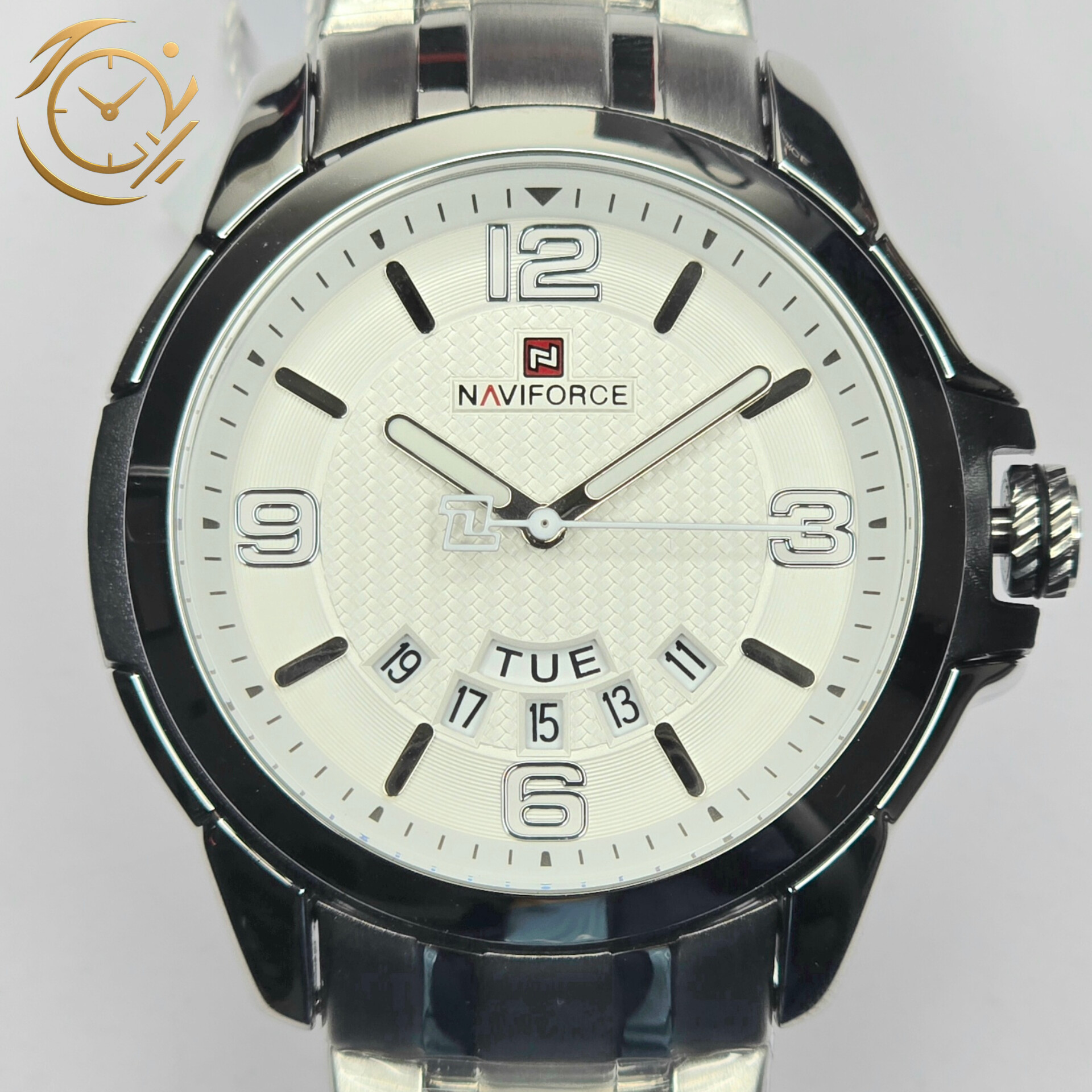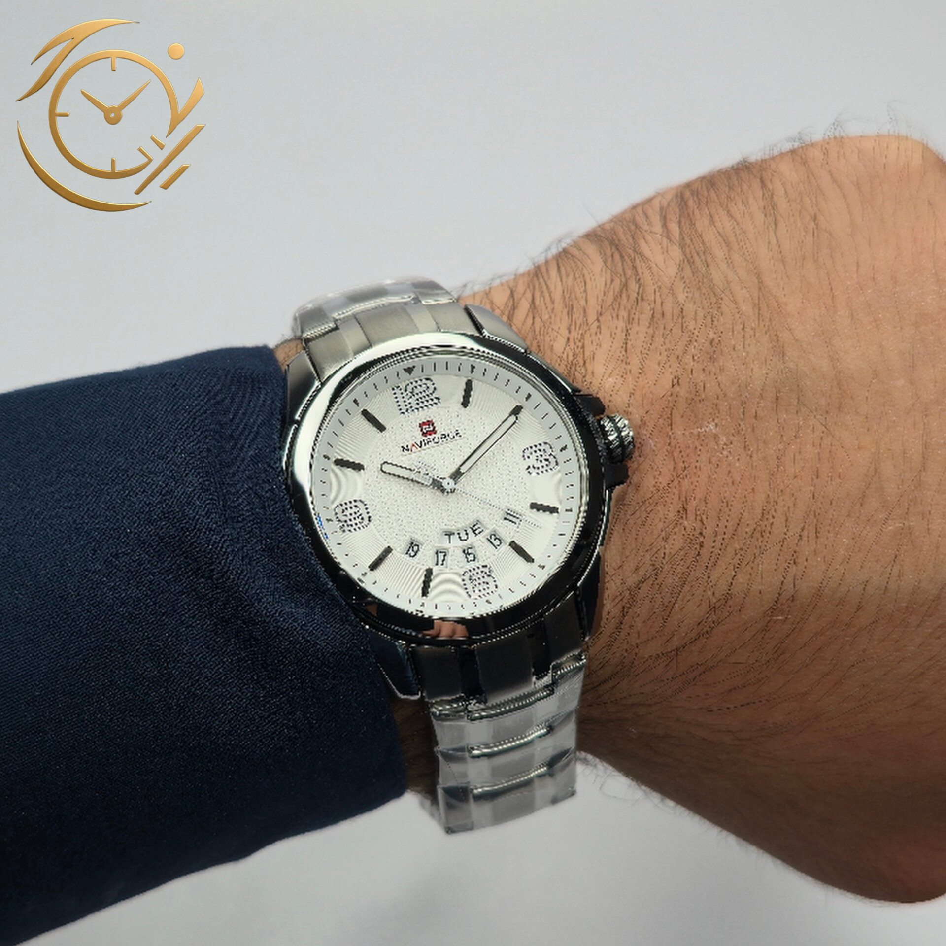 ساعت Naviforce NF9215 با طراحی کلاسیک و مینیمال، انتخابی ایدهآل برای آقایانی است که به دنبال استایل شیک، باوقار و کاربردی هستند.بند استیل نقرهای با کیفیت بالا و دوام فوقالعاده، جلوهای لوکس و حرفهای به مچ دست شما میبخشد و باعث میشود این ساعت هم برای جلسات کاری و محیطهای رسمی و هم برای استایلهای روزمره مناسب باشد.صفحه سفید با نمایش دقیق روز هفته و تاریخ، علاوه بر خوانایی بالا، کارایی عملی و راحتی استفاده را افزایش میدهد و مدیریت زمان را برای شما آسان میکند.این ترکیب نقرهای و سفید، جلوهای کلاسیک و باوقار به ساعت بخشیده و آن را به انتخابی مناسب برای استایل رسمی، نیمهرسمی و حتی استایل روزمره شیک تبدیل کرده است. موتور دقیق و قاب مقاوم ناویفورس تضمین میکند که این ساعت علاوه بر زیبایی، دوام و عملکرد بینقص داشته باشد.اگر به دنبال یک ساعت مردانه هستید که کلاسیک، شیک و کاربردی باشد و در عین حال جلوهای حرفهای و متفاوت به استایل شما بدهد، Naviforce NF9215 بند استیل نقرهای صفحه سفید با نمایش روز هفته و تاریخ انتخابی بینظیر و مطمئن خواهد بود.