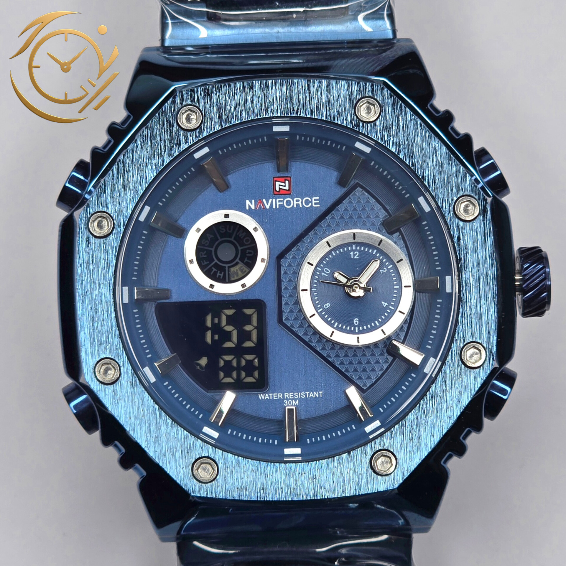 ساعت Naviforce NF9216 با طراحی آنالوگ و دیجیتال و رنگبندی جذاب آبی یکدست، انتخابی فوقالعاده برای آقایانی است که به دنبال استایل اسپرت، مدرن و متفاوت هستند.بند استیل آبی با کیفیت بالا و مقاومت عالی، جلوهای شیک و متمایز به مچ دست میبخشد و ترکیب آن با صفحه آبی دوگانه آنالوگ و دیجیتال، نمایی هماهنگ و جذاب ایجاد میکند. نمایش دیجیتال، کرنومتر، آلارم و سایر عملکردهای جانبی، این ساعت را به یک ابزار کاربردی و حرفهای برای استفاده روزمره و فعالیتهای اسپرت تبدیل کرده است.صفحه آنالوگ و دیجیتال با جزئیات دقیق و طراحی مینیمال، علاوه بر زیبایی، خوانایی بالا و عملکرد مطمئن را تضمین میکند. قاب مقاوم و موتور دقیق ناویفورس، دوام و کارایی بینقص ساعت را تضمین میکند.اگر به دنبال یک ساعت مردانه هستید که جوانپسند، اسپرت و لوکس باشد و استایل شما را برجسته کند، Naviforce NF9216 بند استیل آبی صفحه آبی آنالوگ و دیجیتال گزینهای ایدهآل و چشمگیر است.
