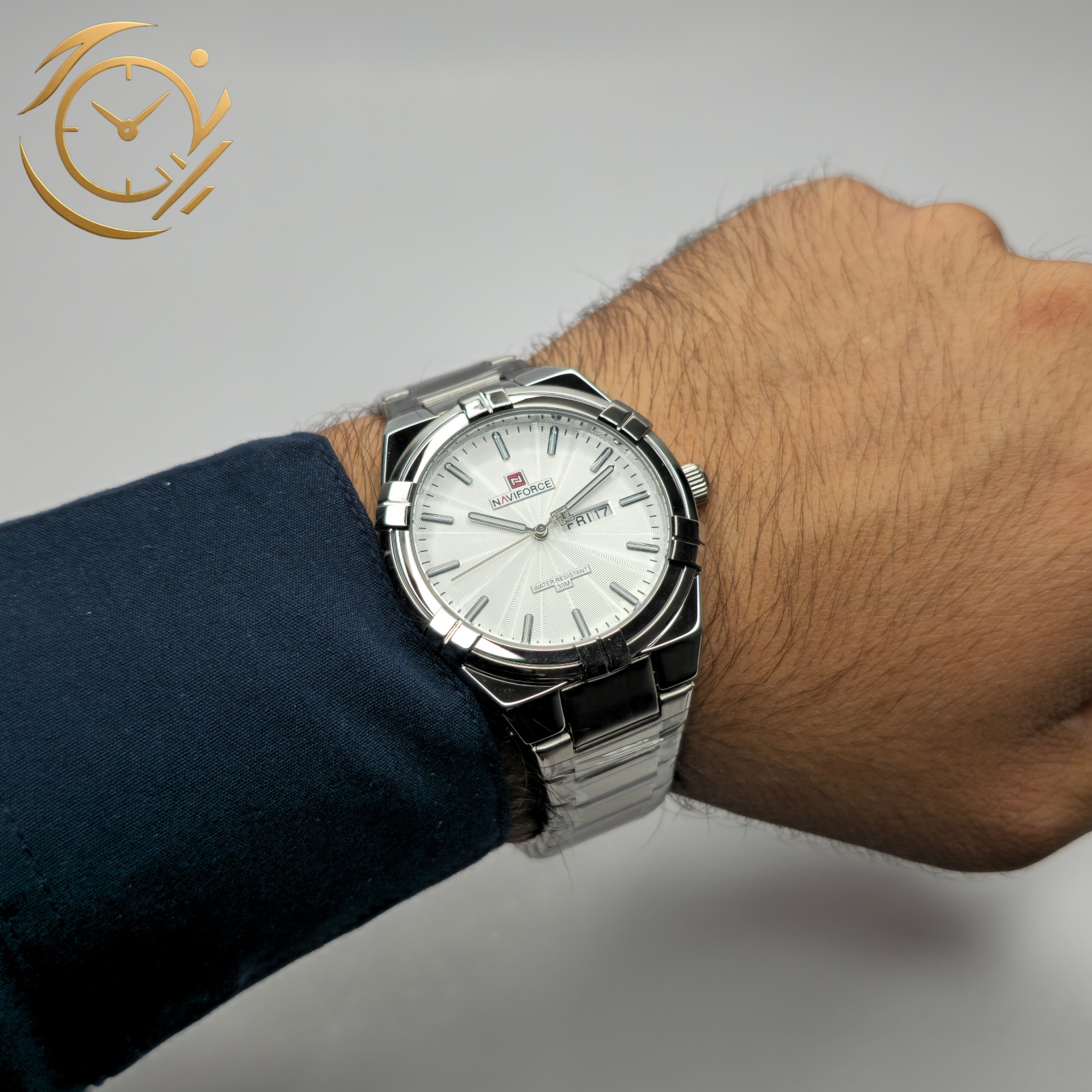 ساعت مچی Naviforce NF9218 یکی از مدلهای رسمی و کلاسیک این برند محبوب است که با طراحی خاص خود، مناسب آقایان خوشسلیقه و شیکپوش ساخته شده است. ترکیب بند فلزی استیل نقرهای با صفحه نقرهای براق، جلوهای یکدست، مینیمال و در عین حال لوکس ایجاد کرده که آن را به انتخابی ایدهآل برای موقعیتهای رسمی و روزمره تبدیل میکند.بند استیل نقرهای این ساعت علاوه بر مقاومت بالا، در برابر خط و خش و تغییر رنگ نیز بسیار بادوام است. صفحه نقرهای آن با طراحی ساده و شیک، همراه با عقربهها و نشانگرهای خوانا، جلوهای خاص و کلاسیک به ساعت میبخشد. همچنین موتور دقیق ناویفورس، تضمینکنندهی عملکردی پایدار و قابل اعتماد است.ساعت NF9218 ناویفورس مناسب آقایانی است که به دنبال یک اکسسوری رسمی، لوکس و در عین حال کاربردی هستند. این مدل بهراحتی با کتوشلوار و استایلهای رسمی ست میشود و میتواند در جلسات کاری، مهمانیها و موقعیتهای مهم، تکمیلکنندهی ظاهر شما باشد.اگر قصد خرید یک ساعت مچی کلاسیک و رسمی با طراحی خاص و کیفیت ساخت بالا را دارید، ساعت Naviforce NF9218 بند فلزی نقرهای صفحه نقرهای بدون شک یکی از بهترین انتخابها برای شما خواهد بود.