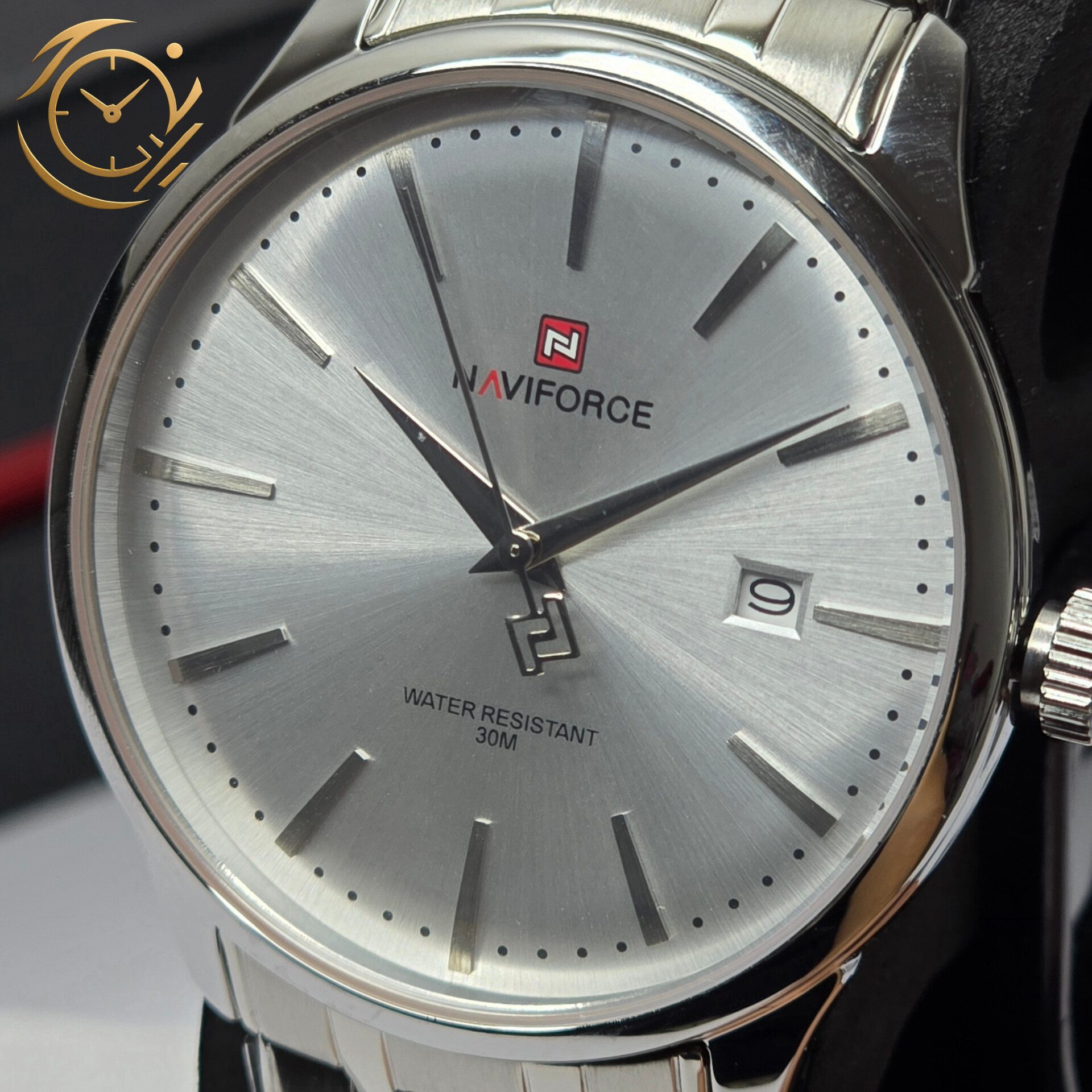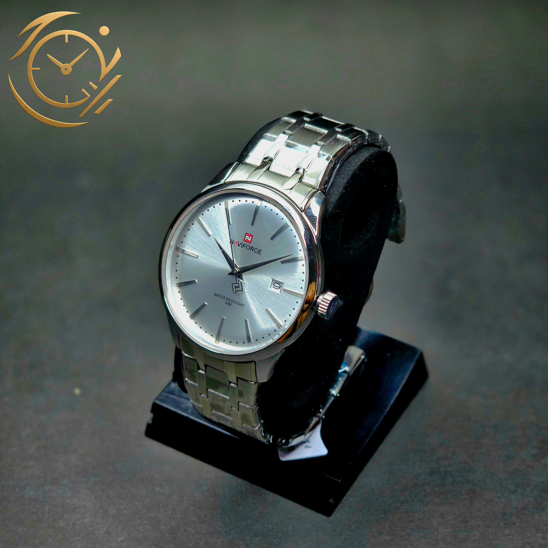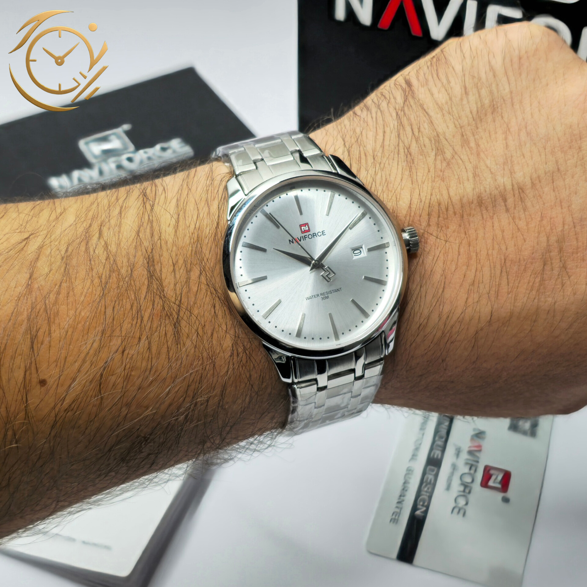 ساعت مچی مردانه Naviforce مدل NF9254 | بند استیل ضدزنگ نقره ای، صفحه سفید | رسمی و کلاسیک